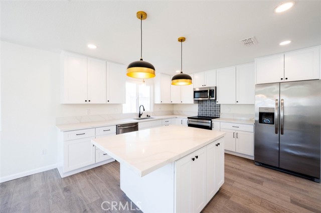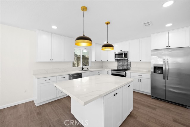 Stunning Fully Remodeled Home on a Corner Lot with RV Parking! Gorgeous 3 bedroom, 2 bath, home with 2057 sq. ft., lot size 7405 sq. ft., and built in 1984. Everything BRAND NEW-Kitchen, Baths, Flooring, Appliances, Paint, Lighting, Tile, Plumbing, Electrical, Water Heater, AC, Hardware, Fixtures, Landscaping, & a Roof Certificate. This beautiful home has been completely transformed with modern finishes throughout. Step into the bright and airy living room featuring soaring 2-story ceilings and a cozy wood-burning brick fireplace, creating a welcoming atmosphere. The brand-new kitchen offers solid countertops, stainless steel appliances, and an island with bar seating for 2 that opens seamlessly into the dining room perfect for entertaining. The main level offers two spacious bedrooms and a beautifully remodeled bathroom. Upstairs, you ll find the expansive primary bedroom with a gorgeous, completely updated bath, featuring a luxurious marble walk-in shower, double sink vanity, and a walk-in closet. Enjoy the outdoors from your private upstairs balcony, easily accessed from the stairs. This home also boasts a large laundry room with a brand-new sink and ample storage, plus built-in closet space throughout. The attached 2-car garage provides convenience with additional RV parking on the other side of the house. Recent upgrades include a new AC, new water heater, updated plumbing, and electrical, along with a roof that has been repaired and certified. The entire home has been updated with new wood vinyl flooring, custom tile in the baths and laundry, and new landscaping, making it move-in ready. Don t miss out on this meticulously renovated gem schedule your showing today!Interested in this Listing?