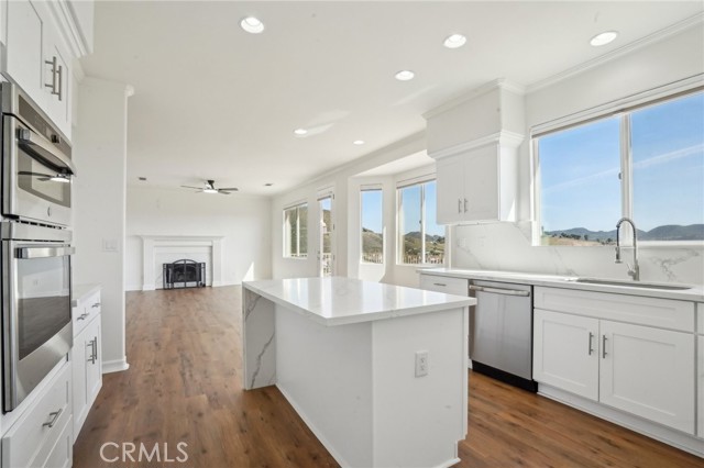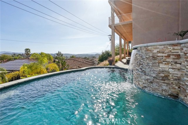 Welcome to 28846 Yosemite Place in the highly desirable gated community of Canyon Lake. This stunning 5-bedroom, 3-bathroom home offers incredible lake/mountain views and a Pebble Tec saltwater pool and spa, all powered by paid-off solar. As you step through the elegant glass double front doors, you ll find brand-new interior paint, new wood laminate flooring, and recessed lighting throughout. The formal living and dining rooms are seamlessly connected, creating an inviting space for entertaining. The remodeled kitchen is a chef s dream with new white cabinets, quartz countertops and backsplash, high-end stainless steel appliances, a spacious island with a quartz waterfall edge, and it opens beautifully into the cozy family room featuring a quartz fireplace and access to a deck with breathtaking views. One bedroom and a fully remodeled bathroom are conveniently located on the main floor. Downstairs, the master suite offers its own private deck with amazing views, an en-suite bathroom with quartz countertops, dual sinks, a new tiled shower with glass enclosure, a jacuzzi bathtub and a walk-in closet. Three additional generously sized bedrooms are also located on the lower level. Outside, the backyard is a private oasis with mature landscaping, including orange and avocado trees. Enjoy the sparkling pool with a spa that waterfalls into it, a fire pit area, and a charming covered wooden deck complete with a convenient half bathroom. There s even an unfinished 600-square-foot space under the home, perfect for extra storage. Don t miss the opportunity to own this beautiful home with luxury finishes, stunning views, a 3 car garage and boat parking! Canyon Lake Living offers a one-of-a-kind private 400-acre lake. Residents enjoy year-round fishing, waterskiing, wakeboarding, swimming, and breathtaking views. In this golf cart-friendly community, there are 16 parks, most with beaches and playsets, basketball, baseball, tennis, pickleball, equestrian center, 18-hole golf course, pools, dog park, BMX pump track, slalom course, ski jump, restaurants, community events, and so much more!Interested in this Listing?