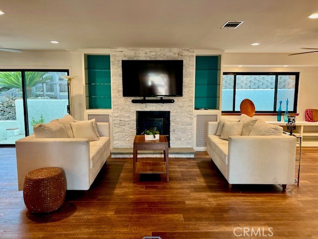 Honey, stop the car! This house is a show stopper and has all the bells and whistles.House has a new ADU which gives a few choices and options on how to use it. Owner is an interior designer and has turned this ordinary house into a modern model home. Both upstairs and downstairs laundry, remodeled both bathrooms, a primary suite with a balcony, wood laminate flooring, and lots of modern features throughout. As you walk into the stylish foyer, you'll see the beautiful stacked white stone fireplace and the two scenic windows to the backyard flanking it. ALL the WINDOWS are insulated and cut the cost of electricity over 30%. The whole house fan upstairs helps to keep the house cool in the summer and warm in the winter. Enjoy the outdoor lanai to relax with a good book or to cheer for your favorite team. There is adventure to be had in the backyard so bring the kids to explore it. There is a hill with a landing and a patio and a secret stoned pathway that circles the hill. Why not build a pool on the top and feel like king of the hill! What a view from the top point of this hilltop. Put this house on the top of your list if you like to live first class.Interested in this Listing?