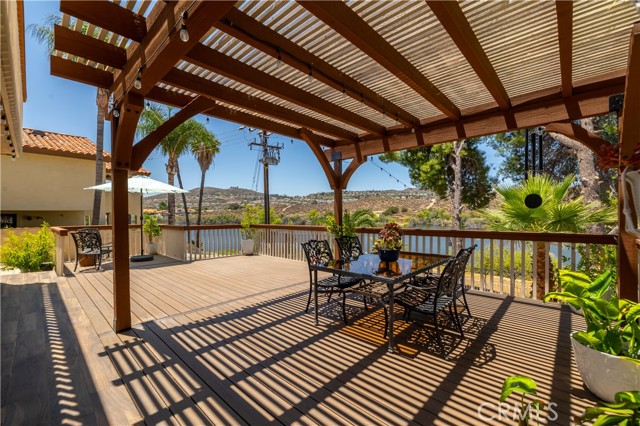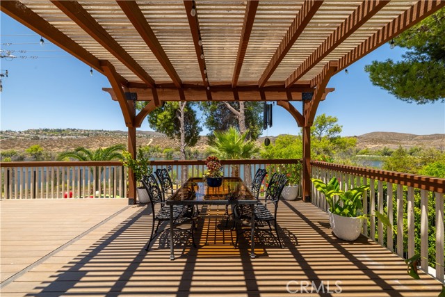 Rare Find! Waterfront Location with plans to expand & exclusive access to the Canyon Lake Jump Lagoon. This home is ready for "Lake Life" Living at its finest, is located on the North gate side of the lake & offers flat, 3 Car garage with pull through ability to backyard, paved boat ramp down to the water to launch your boat for secluded fishing, paddleboarding or canoeing. A Formal Entry welcomes you into the open concept living area with bright, energy efficient vinyl windows & wood-look tile flooring throughout the dining room with built in buffet hutch, kitchen with granite countertops with 2 breakfast bars, stainless steel appliances & plenty of storage are adjoined together by a cozy stone fireplace as the centerpiece of the family room. Enjoy California Indoor/outdoor living on the durable Trex decking patio slatted covered pergola to provide shade for perfect sunset views. Upstairs you will find shared bathroom with shower & tub, two ample guest rooms, one offering a slider leading to an East facing rooftop deck for Mountain views & Fourth of July Fireworks. The primary suite will not disappoint, with walk in closet, bathroom with dual sinks in vanity, en suite with recently remodeled luxurious shower. Along with a slider leading out to your private West facing deck of the Ski Jump Lagoon. Canyon Lake " A Little Bit of Paradise" is in Riverside County situated on a 400 acre lake with amenities in the community for all ages Boating & water sports of all kinds, Slalom/Jump Lagoons, Paddleboarding, Basketball, Pickleball, Tennis, Baseball Diamonds,Pump Track,Equestrian facility,Lake is Stocked with Catfish & Bass for Fishing, Marina,Sailing,Pontooning, Golf Course & Country Club Bar & Grill, Hiking, Dog Parks, Birdwatching, Biking, Newly renovated lakefront Happy Camp/RV park, Indoor/Outdoor concerts at the amphitheater & Sunset Lounge at the Lodge overlooking a Jr Olympic heated saltwater pool, Holiday celebrations, parades & activities year round for kids & adults,Parades for all occasions,Dozens of Parks & Beaches,Senior Center,Holiday boutiques,Bingo,Car Shows, Clubs, Community Garden, Canyon Lake Fire Department, Spectacular 4th of July Fireworks over the Lake & so much more for you to explore!Canyon Lake has three guarded gates for entrance/exit and is conveniently located between the 15 & 215 Fwy which makes for an easy commute to Nearby beaches, airports Ontario & San Diego. Come & see what the Lake Life has instore for you!Interested in this Listing?