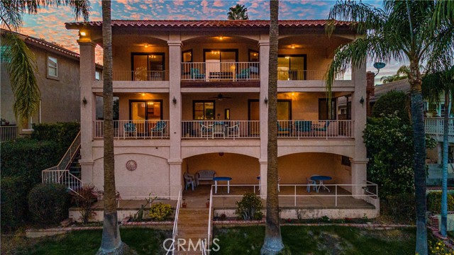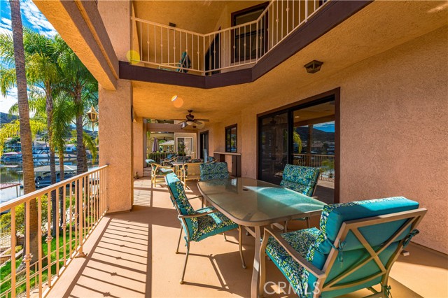 Here is your Golden Opportunity to buy this gem, buyer cancelled at no fault of seller. Nestled just off the main channel, this stunning waterfront property offers a serene and picturesque setting, complete with sweeping panoramic views. Featuring a U-shaped dock with a ramp, Trex decking, a seawall, and an entertainer's deck with approximately 60 feet of water frontage, this home provides the ultimate lakeside living experience. Enjoy additional outdoor amenities including a covered Arizona-style patio and a separate storage space for all your boating equipment.Upon arrival, you are welcomed by a stately entrance, a flat driveway, and a 3-car garage with a low-maintenance front yard. The grand double-door entry opens into a tiled foyer, setting the tone for the elegance found throughout the home. The step-down living and formal dining areas feature built-in cabinetry, providing both style and function.The expansive family room is centered around a brick wood-burning fireplace and hearth, offering an ideal space for relaxation. Open sliders lead to the deck, where you can immerse yourself in the stunning views. The gourmet kitchen boasts tiled countertops, oak cabinetry, and newer appliances including double built-in ovens, a microwave, dishwasher, trash compactor, and refrigerator. A pass-through window from the kitchen sink to the outdoor bar area ensures effortless entertaining.Two large sliders open to the deck, inviting you to enjoy the outdoor space and views. A block wall encloses the property on each side, and an outdoor shower provides convenience after enjoying the lake. The main level also features a spacious bedroom and a full bath, as well as an indoor laundry room with a utility sink and ample cabinetry for added storage.Upstairs, a vaulted ceiling and spiral staircase lead to the private primary suite, which offers stunning water views, two closets (including a walk-in), separate vanities, a step-in shower, and a sunken soaker tub. 3 additional bedrooms, each with access to the upper deck, offer their own scenic vistas. A front deck provides an ideal vantage point for the annual fireworks display.The home also features a welcoming loft area with built-in seating, a fridge, and a wet bar, offering an ideal setting for a cozy coffee bar or simply relaxing. This custom-built home, meticulously cared for by the original owners, is being offered for the 1st time on the market. Don't miss the chance to make this lakeside retreat your dream home.Interested in this Listing?