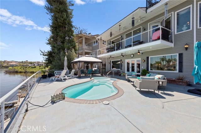 Welcome to waterfront living at its finest! This custom built home sits on the main lake offering stunning, unobstructed views of Skipper s Island. Original Owner beautifully crafted this home for comfort and style featuring lots of architectural details like iron railings, archways, recessed ceilings, & crown molding. One-level living with 3 bedrooms & office on the main floor, including a spacious primary suite. The downstairs quarters is perfect for a large family room that leads out to the pool. The heart of the home is a large, open kitchen boasting solid granite counters, a walk-in pantry, unique breakfast bar, double oven, raised dishwasher & a generous island perfect for entertaining. The kitchen seamlessly flows into the dining area & living room, both offering breathtaking lake views & warm ambiance from the wood-burning fireplace. Step out onto the balcony that overlooks the sparkling pool, spa, and tranquil waters beyond. The primary suite offers an attached bath with jetted tub, walk-in shower, 2 separate sinks & vanity with granite counters + walk-in closet. 2 additional bedrooms, 1.5 baths, & den/office complete the main level. Up the spiral staircase is the perfect retreat w/ private balcony, additional 1/2 bath, storage, & access to rooftop deck. The large laundry room offers ample storage with direct access to the main garage & access through the kitchen or hallway. Downstairs could be an ADU with it's own entrance. There's a large finished bonus room w/ direct access to backyard & pool, 1/2 bath w/ room to add shower + walk-in closet. An additional 2,500 sf of unfinished space ready to complete offering direct access to the 1-car garage. Enjoy your private outdoor oasis with beautiful landscaping, patio, pool, spa & access to covered boat dock. Car enthusiasts & outdoor lovers will appreciate the 4-car garage setup: a spacious 3-car garage with roll-up door that is long & tall enough to be used for an RV or boat storage + an additional car or 3 cars (2 tandem style) & a separate extra-long 1-car garage on a downslope with storage. The home offers a solar system that will need to be assumed at $269 a month. HVAC system is 2 years old, ceiling fans throughout, central vacuum, & many upgrades. This exceptional lakefront home combines timeless architectural charm with modern functionality and an unbeatable location. Whether you're hosting friends for July 4ht or soaking in the serene views, this property is perfect for waterfront living.Interested in this Listing?