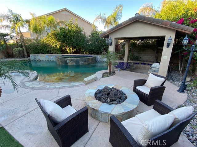 Incredible 6 bedroom 3 bath house in the sought after La Paloma Estates neighborhood has a breathtaking large pool, spa, waterfall, walk in beach entrance and a swim up pool bar with attached sunken BBQ/Cabana area. 3 hole putting green with beautiful landscaped yard, large oversized covered patio with an eating area and separate couch TV area, firepit, artificial grass area and outdoor lighting. 3 car garage has new epoxy floor and is used as a game room with portable air conditioner. This home has been a lucratic rental property with 4.9 star Airbnb rating the past 3 years with no HOA fees and very short term rental friendly city of Coachella walking distance to the festivals. This home is turn-key for the next lucky investor or homeowner. Kitchen is upgraded with stainless steel appliances, granite counter tops and large walk in pantry. All 6 bedrooms are fully furnished and ready to entertain up to 14 guests. Family room and dining room downstairs and a separate large Family/TV room upstairs. No expense spared with technology, you can control your pool/spa from your phone, as well as watch the 3 video cameras, control the door locks, thermostats, smoke detectors, powerful wifi throughout the house with 2 smart TV's in the backyard and 4 in the house. There are too many upgrades to list them all. You or your guests would never have to leave this 5 star resort!Interested in this Listing?