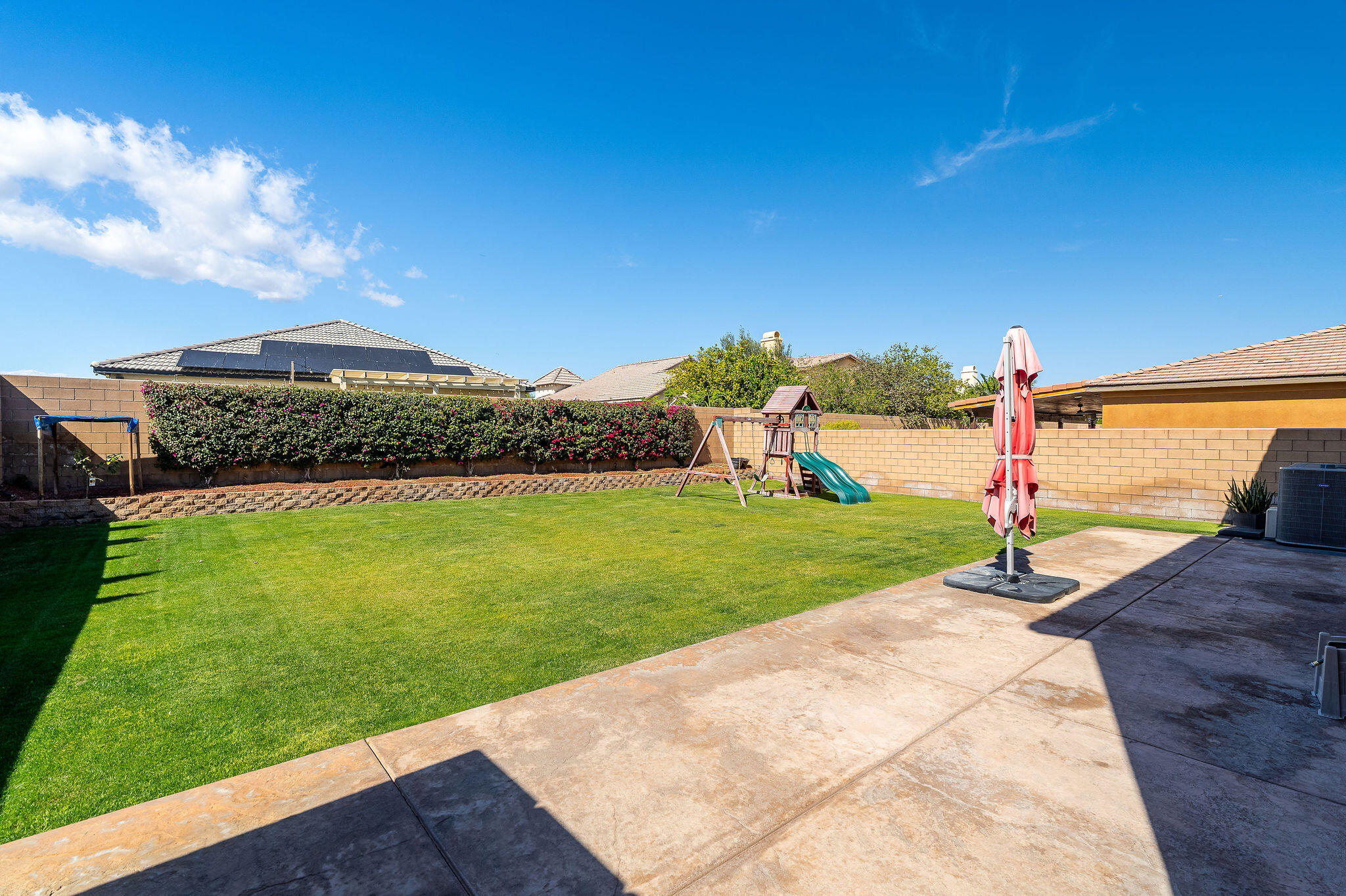 Located in the vibrant city of Coachella, this beautifully maintained newer construction home offers 4 bedrooms and 3 baths, perfect for a growing family. The spacious floor plan provides comfort and functionality, while the meticulously kept interiors reflect true pride of ownership. Step outside to a generously sized backyard with lush grass, ideal for outdoor gatherings and play. The home also features leased solar panels, helping to keep energy costs low. This home offers a prime location with easy access to local amenities, schools, and parks. Don't miss this opportunity to own a beautiful home in a secure, thriving gated community!Interested in this Listing?