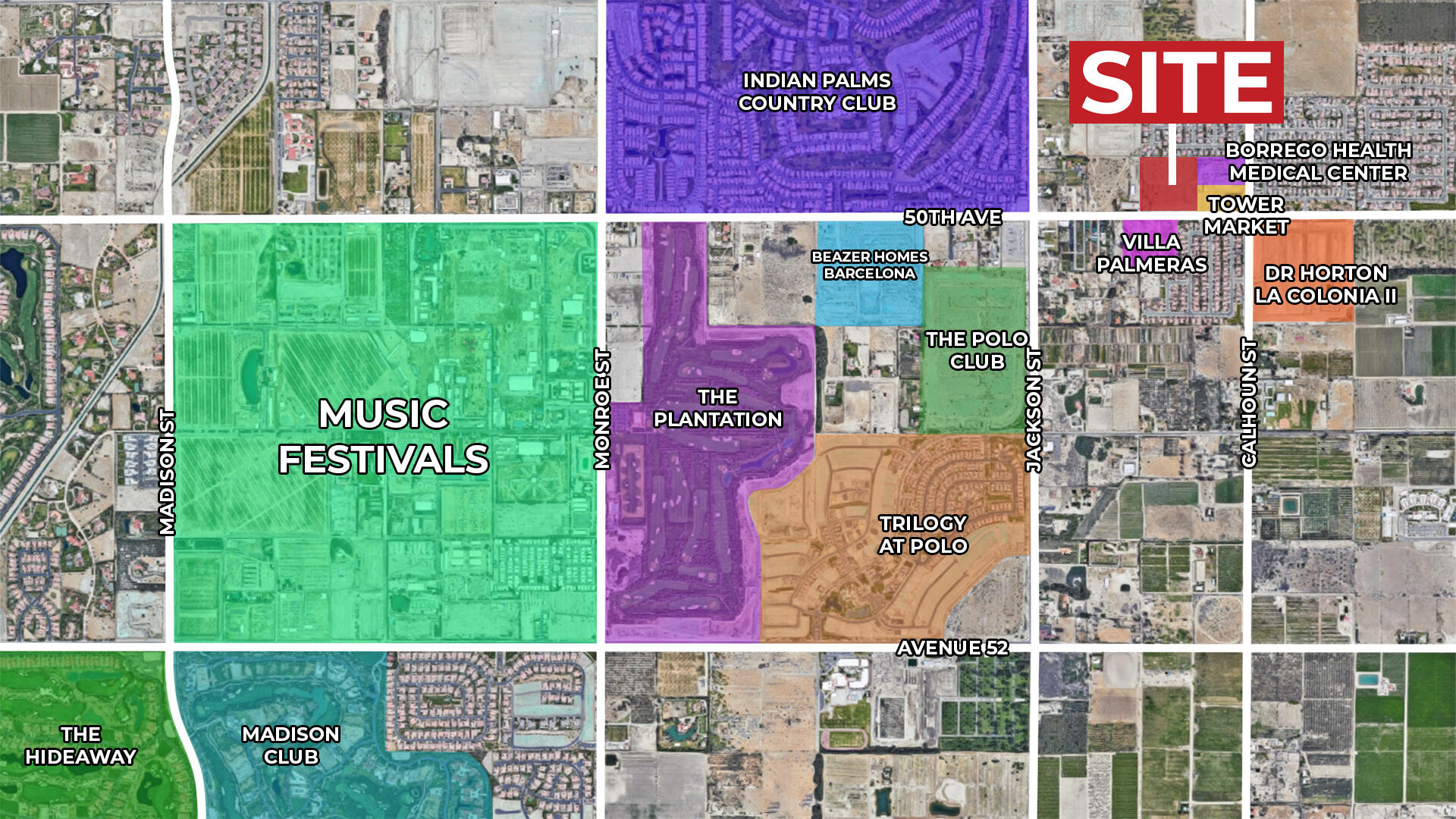 Approved Tentative Tract Mao for 103 Lots (TTM #36680). Key Location. Minutes away from many high-end residential developments, including the exclusive Madison Club, Griffin Ranch, & The Hideaway. Just one mile from El Dorado & Empire Polo fields, home of the famous Coachella Music Festival. Across from D.R. Horton's new housing tract, La Colonia II. The City of Coachella is business friendly and welcoming to new developments.Interested in this Listing?