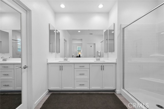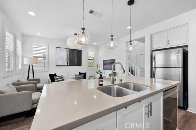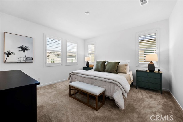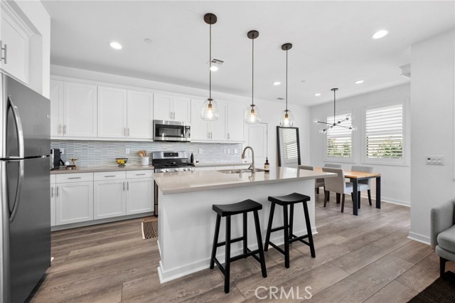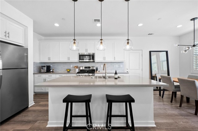 Experience Modern luxury living in the prestigious gated South Bedford Community of Corona! Built in 2019 by Woodside Homes Nova Plan 2 this stunning 4-bedroom, 3-bathroom home offers approximately 2,181 sq. ft. of beautifully upgraded living space, with a flexible floor plan and sophisticated designer finishes throughout. The open-concept layout features luxury vinyl plank flooring, soaring ceilings, recessed lighting, and dual-pane windows that flood the home with natural light. The gourmet kitchen is completed with quartz countertops, custom cabinetry, custom designer tile backsplash, stainless steel appliances, a walk-in pantry, and a stunning oversized island. Step outside to a meticulously maintained backyard featuring vibrant bougainvillea, a spacious patio for BBQs, and low-maintenance landscaping perfect for relaxing. Downstairs, a private bedroom and full bath offer ideal accommodations for guests, in-laws, or a home office. Upstairs, enjoy a versatile loft, spacious balcony, a well-appointed laundry room, and a luxurious primary suite with a walk-in closet and spa-inspired ensuite boasting dual vanities and a sleek walk-in shower. Two additional upstairs bedrooms share a spacious bathroom with dual sinks and a private tub/shower combo. Additional upgrades include a 2-car garage, a Tesla charger, solar panels, tankless water heater, and central HVAC for comfort and energy efficiency. Residents of Bedford enjoy resort-style amenities including private sparkling pools, a spa, clubhouse, parks, scenic walking trails, fire pits, sports courts, and more all within a secure, beautifully maintained gated community. Move-in ready and impeccably upgraded this home exemplifies the best of Southern California luxury living.Interested in this Listing?
