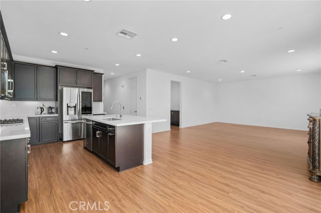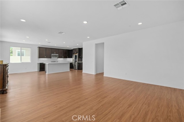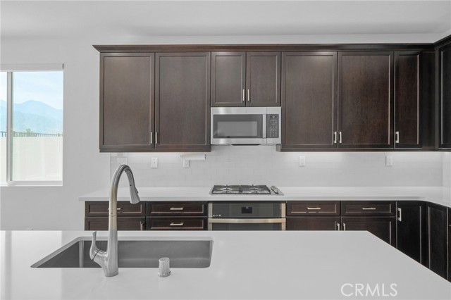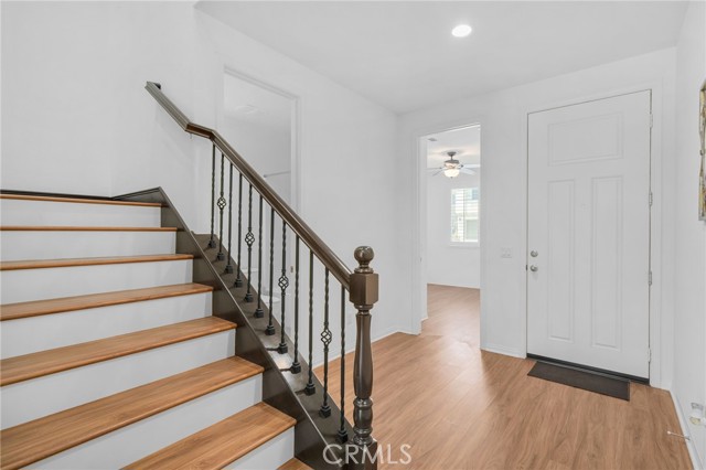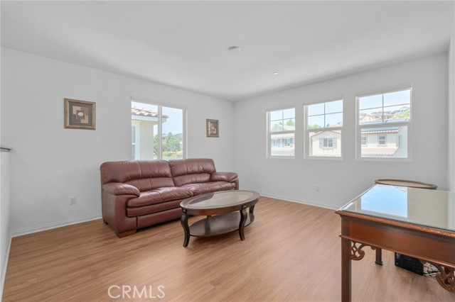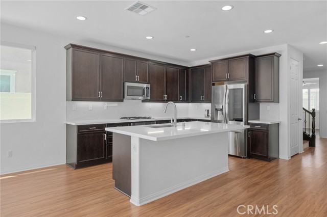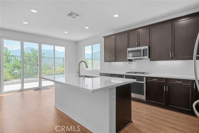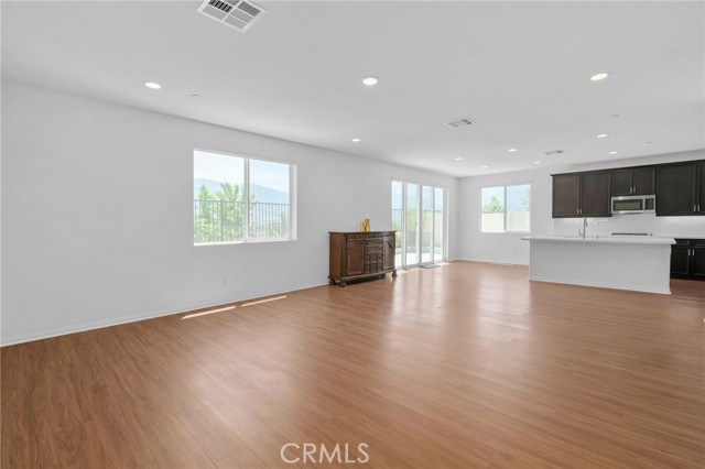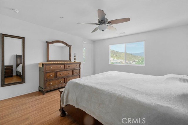 Welcome to your dream home in the sought-after Terramor community where style, comfort, and scenic beauty meet. Step into a picture-perfect front yard, meticulously landscaped and beautifully maintained, setting the stage for the elegance that awaits inside. This thoughtfully designed home features an open floor plan highlighted by rich laminate flooring throughout and a stunning open rail staircase that adds a modern touch. The heart of the home is the expansive kitchen, complete with a large island perfect for entertaining, and breathtaking views that flow seamlessly from the kitchen into the dining and family rooms. Oversized sliding glass doors invite natural light and create a smooth indoor-outdoor living experience. A conveniently located downstairs bedroom and full bathroom is perfect for convenience, guests or multi-generational living. Upstairs, a versatile loft area offers space for work or relaxation, while the spacious primary suite boasts panoramic views, an oversized walk-in closet, and a serene atmosphere that feels like a private retreat. Two additional bedrooms and a well-appointed laundry room complete the upper level. Enjoy the ease of a low-maintenance backyard, with an extra storage area tucked away at the back side of the house ideal for your outdoor gear or gardening tools. This Terramor gem blends modern living with peaceful surroundings, offering the perfect backdrop for your next chapter.Interested in this Listing?