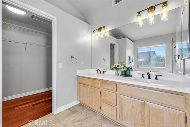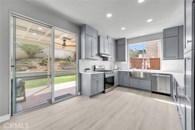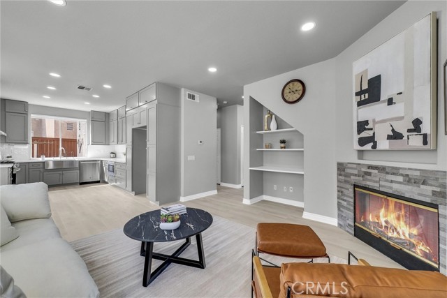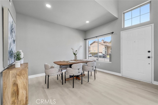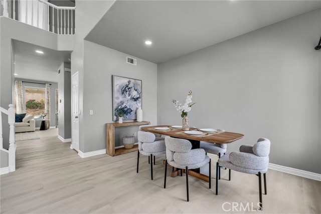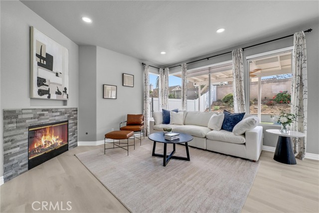 Welcome to this beautifully upgraded 3-bedroom, 3-bathroom home with a spacious loft that could be used as a home office or converted into a 4th bedroom in the highly sought-after Corona Ranch Terrace community of Corona Hills! With soaring ceilings and expansive windows, this home is filled with natural light, creating a bright and inviting atmosphere from the moment you step inside. The main level features brand-new luxury vinyl flooring, a spacious living room with a cozy fireplace, and an open-concept living/dining area perfect for entertaining. Sliding doors lead to a covered patio overlooking a lush backyard with natural grass and terraced landscaping, ideal for gardening or relaxing outdoors. The modern, upgraded kitchen boasts sleek cabinetry, a stylish backsplash, and stainless steel appliances, combining elegance with functionality. Also on the first floor, you'll find a convenient powder room, a dedicated laundry room, and a 2-car garage with a wide driveway for extra parking. Upstairs, a bright and spacious loft with built-in cabinetry provides additional versatility ideal for a home office, play area, or easily converted into a fourth bedroom. The primary suite is a true retreat, offering multiple sunlit windows, a generous closet, and a luxurious ensuite bath featuring dual sinks, granite countertops, a walk-in shower, and a separate oval soaking tub. Two additional bedrooms share a well-appointed bathroom with a shower/tub combo. With low HOA fees and taxes, this home is as affordable as it is beautiful. The prime commuter-friendly location is just minutes from the 15 and 91 freeways and within walking distance of top-rated schools and city's main shopping and dining location including Costco, Home Depot, Walmart and more. Families will appreciate the address within the highly acclaimed Corona-Norco Unified School District, ensuring access to award-winning education. This is a great family home come quick, this one won t last! Schedule your private showing today!Interested in this Listing?