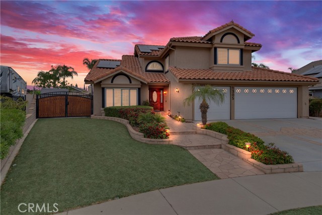 Exceptional 4-bedroom, 3-bathroom residence located in the heart of South Corona s most sought-after neighborhood. Spanning approximately 2,558 square feet, this beautifully maintained two-story home offers the perfect blend of elegance, comfort, and convenience. Step inside to find custom tile flooring throughout and a grand sweeping staircase, complete with a built-in Acorn brand chairlift ideal for those needing extra accessibility. The first floor features a full bedroom and bathroom, offering flexibility for guests or multigenerational living. Upstairs, the expansive primary suite provides a peaceful retreat with room to unwind.Gorgious Primary Bathroom. The home s exterior is equally impressive, boasting a tile roof, an oversized 3-car attached garage, and gated Huge RV parking. Energy-saving solar panels help reduce monthly utility bills, while the low-maintenance landscaping ensures more time to enjoy the stunning backyard. Relax or entertain under the huge covered patio, ideal for Southern California s indoor-outdoor lifestyle. Nestled on a quiet cul-de-sac, this property offers both privacy and a family-friendly atmosphere, all within close proximity to parks, top-rated schools, and shopping. Don t miss your chance to live in one of South Corona s finest neighborhoods this one checks all the boxes!Interested in this Listing?
