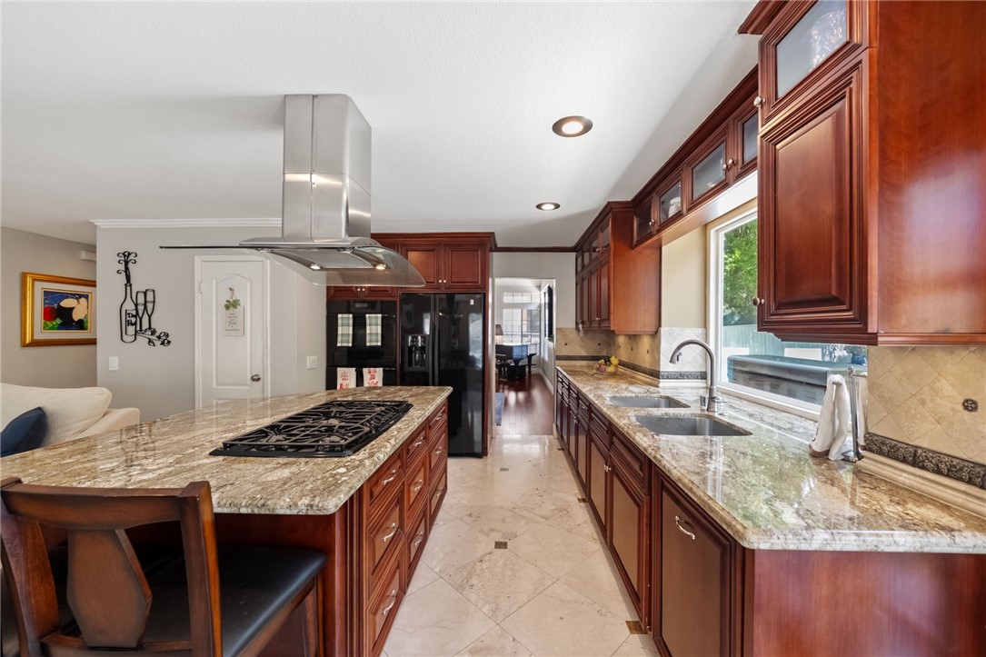 If you ve been dreaming of a move-in-ready home where you can simply relax and unwind, this stunning Sierra Del Oro residence is for you. Located just 5 miles east of Anaheim Hills and Yorba Linda, this upgraded gem offers a rare blend of modern luxury and serene living in a highly coveted neighborhood. Step inside to soaring vaulted ceilings that crown the connected living and dining areas, where 3/4-inch Brazilian hardwood floors and elegant diamond-shaped Italian marble span across the space. Natural light floods the home through oversized windows, creating a warm and inviting atmosphere. Perfect for hosting gatherings or enjoying quiet moments, the expansive family room has crown moldings and a beautiful Travertine fireplace as its focal point. A dream for any home chef, the custom kitchen is equipped with top-of-the-line appliances, including a Miele double oven, a refrigerator, a built-in warmer, and a Thermador range hood. Bespoke Alderwood cabinetry and Brazilian granite countertops enhance the space, which extends to a large island and a Credenza with a beverage chiller. Downstairs, a flexible bedroom offers direct access to a fully remodeled bathroom that seamlessly mirrors the kitchen s design. With no houses visible behind, the primary suite is a private sanctuary featuring vaulted ceilings, a cozy lounge area, and a generous walk-in closet. The ensuite bathroom has Carrera marble flooring, a soaking tub, a walk-in shower, and a bidet with a warming seat. Outdoors, the backyard is an oasis of privacy, with a lush green belt and mature trees behind, providing a tranquil setting. The expansive yard offers endless possibilities add a swimming pool, create a playground, or simply let your pets roam freely. After a long day, unwind in the bubbling spa and soak in the peace. The home is equipped with ePIPE plumbing (epoxy coating technology) and Energy-saving Tesla Solar Panels, which can be canceled at closing if buyers choose. Smart-home features allow you to control lighting, HVAC, the spa, garage doors, and irrigation with ease. Additional upgrades include a remodeled upstairs bathroom, a 200-amp electrical panel, a tankless water heater, insulated garage doors, and several new windows. Cradled between Chino Hills State Park and the Santa Ana Mountains, this Green River neighborhood is conveniently located at the crossroads of two major highways within LA and the Anaheim suburb of Corona.Interested in this Listing?