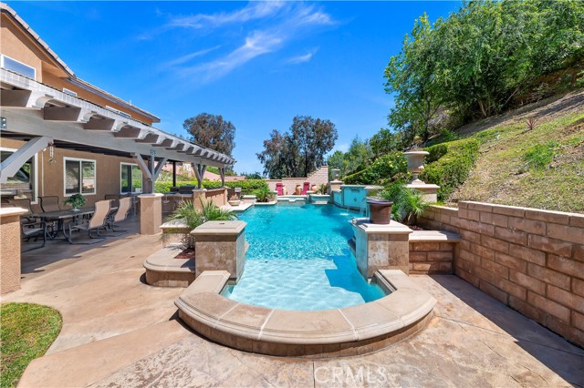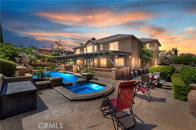 Experience the best of California living blended with timeless Mediterranean style in the prestigious Eagle Glen community of Corona. Nestled at the foot of the mountains, this exquisite two-story residence offers nearly 3,829 sq/ft of refined living space. From the moment you step through the front doors, you're welcomed into a world of spectacular luxury, with open, airy living areas designed for comfortable elegance. This home offers a sitting area, a great room adjacent to the patio and pool area, & an open loft area, ensuring plenty of space to gather with friends or curl up with your latest book. The Mediterranean-influenced pool and spa area is ready to become your private resort. It boasts a saltwater pool, spa, spillovers, Baja shelf, & an outdoor kitchen. A spacious 13.000 Sq/Ft lot gives you plenty of room to compete in family-friendly games. The soft white-on-white kitchen is a culinary masterpiece, featuring contemporary design, high-end stainless steel appliances, & quartz counters. A large center island and walk-in pantry add convenience and functionality to the space, making it a dream come true for any culinary enthusiast. Upstairs, 3 well-appointed guest rooms & an expansive loft provide flexible space for both relaxation & entertainment. The crown jewel of the second level is the elegant primary suite a serene retreat designed with comfort and luxury in mind. Step into the sunlit lounge area, where panoramic mountain views create a breathtaking backdrop for morning coffee or evening unwinding. The spa-inspired ensuite bath offers a spacious walk-in shower, a Roman soaking tub, rich granite finishes, & gleaming hardwood floors. Completing this dreamy suite is a professionally designed walk-in closet, outfitted with custom built-ins and mirrored doors every detail thoughtfully curated for effortless living. This exceptional estate is located in the elevated Highpointe neighborhood and is the epitope of a discerning lifestyle with features such as tall double door entry, volume ceilings, polished Walnut Travertine flooring throughout the lower level, seven-inch crown moldings, Plantation shutters, custom chandeliers, & custom window treatments. It s location has very low taxes and low HOA, making this a wise investment for the discerning buyer who demands luxury. Make an appointment today to see this jewel, & your family can be within walking distance to the golf course, clubhouse & elementary school. See 3D Virtual Tour @ Homes.ComInterested in this Listing?