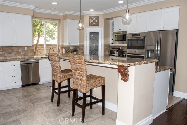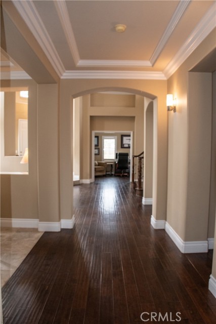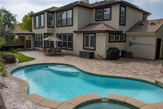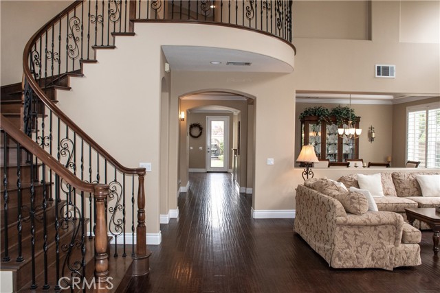 Stunning curb appeal is just the beginning. The desirable community of Eagle Glen is the location for this beauty. The formal entry and elegant staircase welcomes your guests before the living room, which is open to the formal dining room and features high ceilings (imagine the holiday decorations!), invites you to continue your viewing. The spacious kitchen boasts a large eating counter, as well as a bright and airy breakfast nook, and opens to the light soaked family room. Rear yard access provides for ample entertainment opportunities. On the other side of the family room is a space that is perfect for a gym, library, playroom, or whatever you choose. All of the spacious bedrooms are located upstairs, as is the study niche and oversized extra room (perfect for a game room or second living space for kids or teens). Two of the bedrooms share a Jack & Jill bathroom with double sinks. The master suite features a split closet entry which enables one to configure it to their needs, a separate shower and tub combination, and ample counter space. This home has an abundance of natural light, plantation shutters, hardwood floors, PAID SOLAR, and a stunning backyard which features a beautiful pool, covered patio with fireplace, and a tranquil fountain. You'll instantly want to start planning the get togethers or imagine the relaxation you'll experience in your own private retreat. If all of this doesn't already pique your interest, add the in home office with separate entry, the location, the 3 car garage, and the wide driveway to the mix. The seller has updated several areas of this fabulous home, including turf lawn and drought friendly landscaping, (to insure lower water consumption on those hot summer days), decorative outdoor pavers, retractable shades, refaced kitchen cabinets, interior and exterior painting, and so much more. Enjoy your tour and be prepared to want to stay.Interested in this Listing?