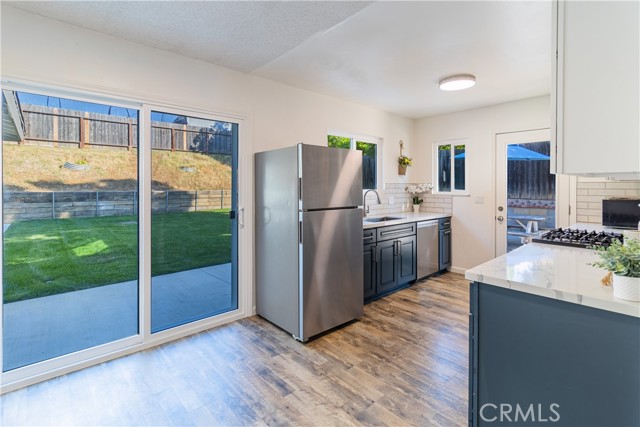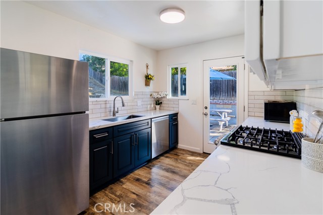 Great home in a Great Location! Fully Remodeled Single Level Home with big backyard RV parking and Additional Concrete Slab that allows 2 additional car parking spots, Gazebo or add a shed or Two (15x18). New paint on exterior and interior. New Oversized Metal and Wood RV gate. Newer Laminate Flooring, New energy efficient HVAC and New Energy Efficient Double Pane Windows and Slider with Solar protection. The kitchen is absolutely beautiful with New Shaker Cabinets, Quartz counter tops with undermount Stainless Steel Single Basin Tub sink with Stainless steel faucet. New Samsung Stove and Ultra Quiet Samsung Dishwasher in the Kitchen. Beautiful custom backsplash accents the counters and go all the way to the ceiling at stove area. Above the stove is a stainless steel and glass proper hood vent with led lights and multiple fan speeds. The guest/hall bathroom is conveniently located between two bedrooms and easily accessed by guests, and features a newly refinished vanity with quartz counter, stainless steel faucet, wood look ceramic tile flooring and new deep style bath tub with tile all the way up to the ceiling. The Primary Bedroom is located at the back of the house for the ultimate peace and privacy and has a great view of the big backyard. The Primary Bedroom features double closets and additional linen closet and private bathroom with ceramic wood look tile that goes from the floor and leads up the walls and walk in shower stall is Brand New. The property features a 2 car garage with Laundry and plenty of parking on the property and street. There is and RV parking at the side of the home that measures 11x30 and big Patio that wraps around for entertaining. Brand new Sod/Lawn and a Firepit area that is finished in DG for low maintenance and safety. Close to OC, schools, shopping and freeways. NO HOA, Low Tax Rate. Come make this one yours!Interested in this Listing?