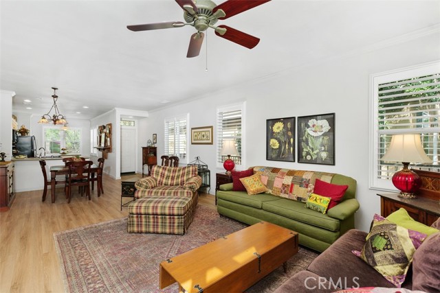 Welcome to Trilogy at Glen Ivy ! The Inland Empire's Premiere active adult community. It is private, exclusive and gated. Nestled at the base of the Cleveland National Forest and surrounded by the Glen Ivy Golf Course. This community has it all, life begins at 55 ! This Pummelo floorplan has the appeal of an English cottage. An open design makes entertaining friends and family easy in the casual great room and kitchen with dining nook. Or if you prefer there is a large dining area. The Primary suite is well proportioned for comfort with a large walk in closet, dual sinks and a walk in shower. The guest suite is situated at the front of the home for privacy. There is a feeling of spaciousness and openness with the 9 foot volume ceilings and high windows. Some of the many upgrades include :Crown molding, Plantation Shutters, Beautiful and easy care engineered hardwood flooring throughout with plush carpeting in the bedrooms. The interior recently painted a soft neutral color. Newer Air conditioner and thermostat. Newer GDO as well. Inside laundry room and attached 2 car garage. This home sits pretty on the lot with a quiet location on a flat walkable street. Fabulous community amenities include: 2 pools (one indoor), 4 tennis courts, a pickle ball court, large spa, fireplace, BBQ's, fitness center with walking track, lots of exercise classes to choose from. Recently refurbished Lodge and ballroom which is the hub of activities. Large amphitheater for summer concerts under the stars, bocce ball, cards, billiards room, dances, dinners, ceramics, painting, glass fusion, over 40 chartered clubs including a Travel Club, complimentary WI-FI, gated community and much more!Interested in this Listing?