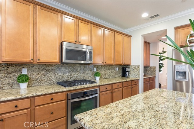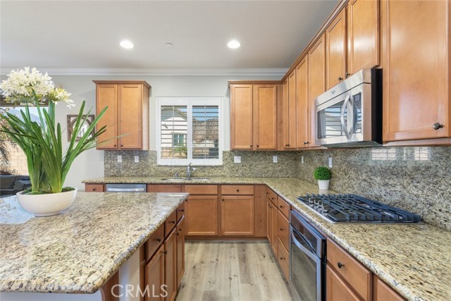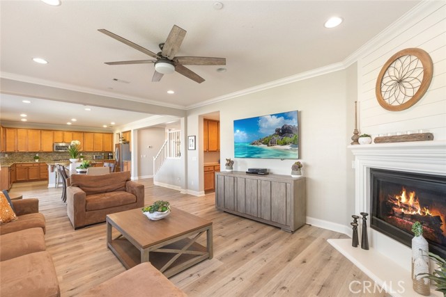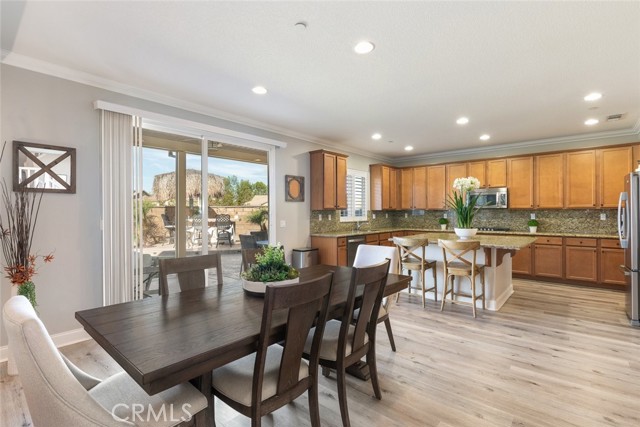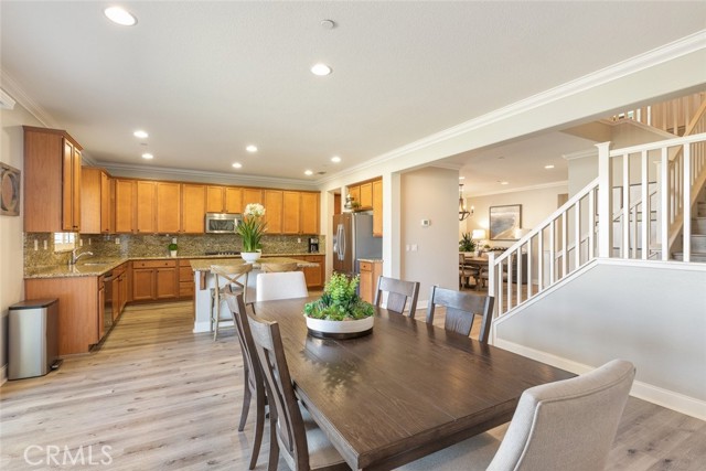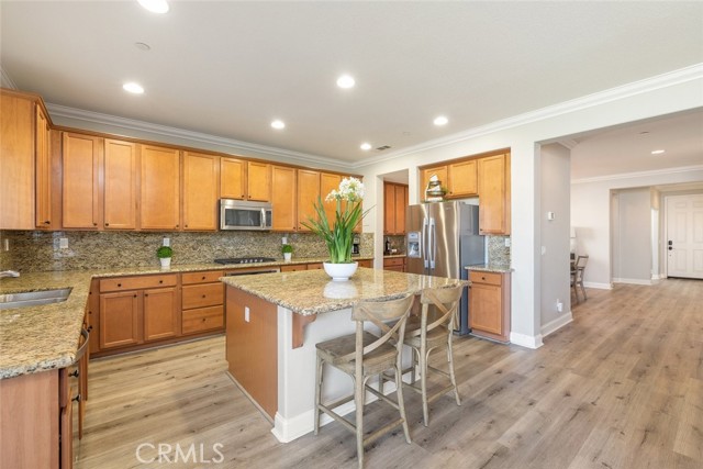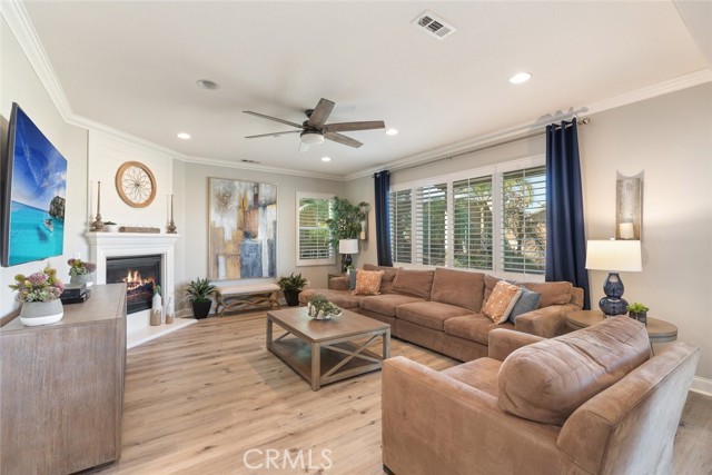 Location is the name of the game here! Situated within the much desired gated neighborhood of Sycamore Hills and within the Santiago High School boundaries. This beautiful two story home is open and full of natural light and has much to offer over the competition. The luxury vinyl plank flooring throughout the downstairs and upstairs den is an attention getter. The ample sized kitchen offers stainless steel appliances, center island with breakfast counter, granite countertops, elegant cabinetry a butler's pantry and a walk-in-pantry. The kitchen is open to the large family room with fireplace which is perfect for entertaining. The downstairs bedroom acts as a junior master suite with it's own bathroom and is ideal for overnight or extended stay guests. Upstairs you'll find 3 bedrooms including the master bedroom suite, a large open loft and the laundry room. The master bedroom suite is fit for royalty and boasts his and hers walk in closets. Other interior features include window shutters throughout, upgraded baseboards, crown molding, recessed lighting, ceiling fans, and gorgeous accent shiplap walls. The backyard is perfect for entertaining and has plenty to offer such as the palapa covered barbecue island, beautiful colored stamped concrete, and massive patio patio cover with built in lighting, ceiling fans and drainage gutters. This home is truly move-in ready, see you in escrow!Interested in this Listing?