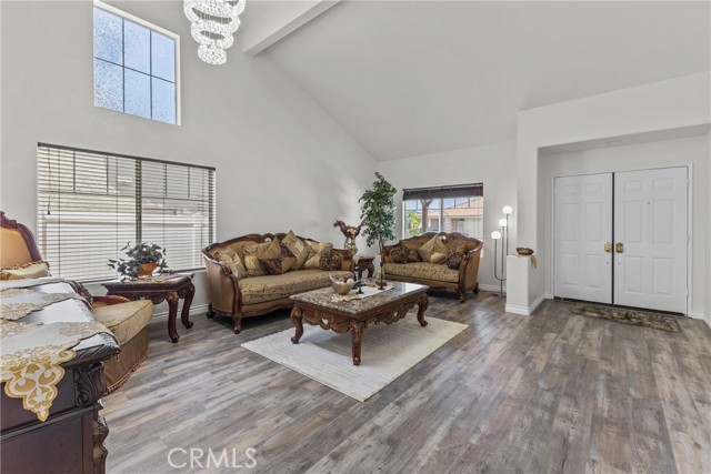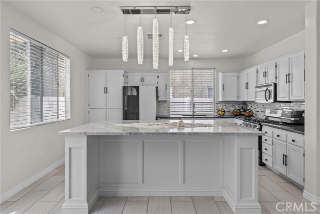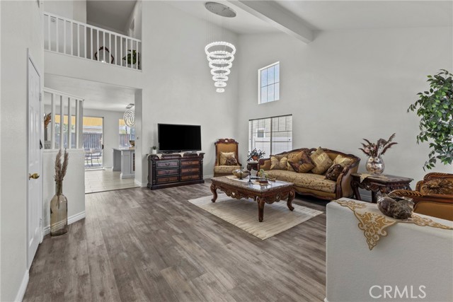 4 Beds | 3 Baths | Large Bonus Room | 2,794 Sq Ft | 4-Car Garage | Solar-Powered Welcome to luxury living in the heart of Horsethief Canyon Ranch. This stunning 4-bedroom, 3-bathroom home with a large bonus room offers 2,794 sq ft of refined living space on a 6,969 sq ft lot, blending timeless elegance with modern upgrades. Step through the freshly painted front door into a grand living area with soaring ceilings, a striking clerestory window, and a dazzling chandelier that fills the space with light and elegance. The formal dining room features an upgraded fireplace with split-face tile, a color-changing electric insert, and an elegant marble base a true statement piece. The open-concept kitchen is both functional and beautiful, boasting marble countertops, a cabinet-style island, and a stunning designer chandelier. The adjacent living and dining spaces make entertaining a dream. The fully remodeled downstairs bathroom showcases a floating vanity, LED mirror, marble walls, and a sleek glass walk-in shower. The primary suite upstairs offers a walk-in closet, luxurious chandelier, and a full bath featuring a double-sink vanity, glass shower, and bathtub. The layout offers a one bedroom and bath downstairs, and three bedrooms plus a bonus room upstairs. A dedicated laundry room connects to a spacious 4-car garage with additional storage space for all your tools, gear, and seasonal essentials. Outdoor highlights include a remodeled front yard with artificial turf, concrete steps, two front pillars, and a rock garden. In the backyard, relax under the covered patio with sun shade sail or enjoy the orange and avocado trees. Smart features include leased solar panels and a smart thermostat, ensuring energy efficiency. Enjoy access to amenities: gym, pools, tennis courts, basketball court, dog park, sports fields, and scenic hiking trails. This residence blends design, functionality, and lifestyle refined, radiant, and move-in ready. All chandeliers included with the purchase.Interested in this Listing?