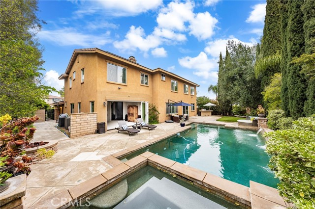 *Pool Home**No HOA**Low Taxes**Owned Solar**Custom Wine Cellar**Clear Termite* This stunning home in the prestigious Chase Ranch community offers peekaboo mountain views, custom upgrades, and a spacious layout designed for both relaxation and entertaining. Step inside to high ceilings and an open floor plan. The UPGRADED KITCHEN is a chef s dream, featuring quartz countertops, built-in microwave, subway tile backsplash, shiplap accent walls, and a large walk-in pantry. The Thor 6-burner double oven with griddle, paired with a jumbo hood, triple-filter osmosis water system, two trash cabinets, farmhouse sink, and matte black fixtures, add to a sleek and organized look. A built-in wine fridge holds 50 bottles, nestled in the bar area. This home features HIGHLY SOUGHT-AFTER WinDor folding doors, known for their premium quality and superior craftsmanship, as well as a new oversized sliding door that creates a seamless indoor/outdoor experience. The home boasts plantation shutters, crown molding, and matte black fixtures throughout. The spacious living area includes a custom-built entertainment unit, creating a cozy atmosphere around the fireplace. The downstairs game room completely opens to the pool deck through custom WinDor folding doors. A custom 500-bottle climate-controlled wine cellar is perfect for collectors. A main-floor bedroom offers flexibility, with an adjacent bathroom for convenience. The home is equipped with a Google thermostat system for both HVAC units. A newer HVAC system and newer oversized water heater. Upstairs, the spacious primary suite offers luxury and comfort, featuring an upgraded en-suite bathroom with new glass shower doors. Double entry walk-in closets, dual sinks, and a vanity provide plenty of space. In addition, there are 4 more bedrooms, one with a walk-in closet, and two guest bathrooms. The upstairs laundry room features upgraded vinyl floors. Step outside into your private oasis with a Pebble Tec pool and spa, featuring a Baja shelf and saltwater capabilities. Newer pool equipment ensures optimal performance. Relax by the gas fire pit or entertain in the built-in BBQ area with a fridge. Mature Olive trees, artificial turf and stamped concrete offer low-maintenance beauty, while the Italian Cypress trees provide natural privacy. Conveniently located near Santiago High School, Orange Elementary, parks, shopping, and freeways, this home is a perfect blend of luxury and practicality.Interested in this Listing?