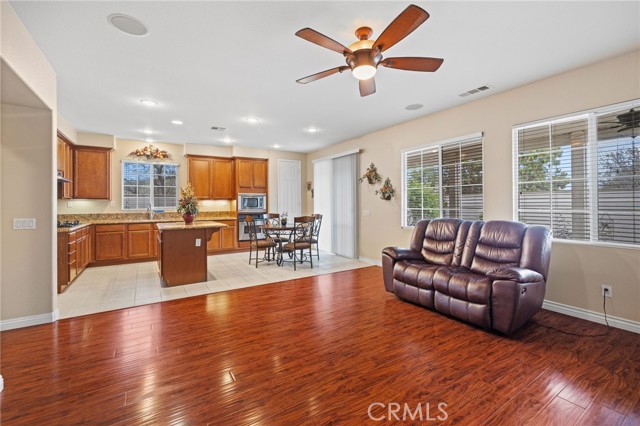 One of the Best Priced homes in Silverhawk Estates Community Built by KB Homes, this Charming Single-Story Residence Offers is Situated on a Corner Spacious 9,147 Sq. Ft. Lot. The Home Features a Covered Backyard Patio with Two Ceiling Fans Perfect for Outdoor Gatherings. Operational Sprinklers in the Front Yard Help Keep the Landscape Green, While Sensor-Controlled Exterior Lights Offer Added Convenience and Security. This Home Offers 1,978 Sq. Ft. of Comfortable Living Space and Includes 3 Bedrooms, 2 Bathrooms, and a 2 Car Attached Garage. Built in 2005, It Has Been Well-Maintained and is in Move-In Condition. Located in a Prime Area of Corona, You ll Appreciate the Easy Access to the 15 and 91 Freeways, and Proximity to Markets, Restaurants, Shopping Centers, Banks, and Schools All Just Moments Away. The Property Also Features a Low HOA Fee, Making It an Even More Attractive Option. Step Inside to Discover a Functional Layout with Distinct Living Spaces Including a Living Room, Formal Dining Room, Family Room with a Gas-Burning Fireplace and Built-In Surround Sound System, as well as a Flex Room Conveniently Located Near the Entrance. The Home is Equipped with Central A/C and Heating, Dual Pane Windows and Screens Throughout, and a Separate Laundry Room that Leads Directly to the Garage for Everyday Convenience. The Main Living Areas Feature a Mix of LVP Flooring and Tile, Offering Both Style and Durability. The Living Room, Formal Dining Room, and Family Room are Finished with LVP Floors, While the Kitchen, Entryway, Hallways, Bathrooms, and Laundry Room Are Tiled. All Bedrooms are Carpeted for Added Comfort. The Kitchen is the Heart of the Home and Includes a Center Island with Granite Countertops, a Pantry, and a Suite of Appliances: a 5-Burner Black Whirlpool Cooktop, Built-In Microwave, Single Oven, Stainless Steel Maytag Dishwasher, and a Stainless Steel Whirlpool Range Hood. The Primary Bedroom is Spacious and Features High Ceilings and a Ceiling Fan, Creating a Peaceful Retreat. The Primary Bathroom Offers Dual Sinks with Tile Counters, a Private Toilet Room, a Separate Shower and Soaking Tub, and a Generous Walk-In Closet. Whether You re Enjoying Time Indoors or Hosting Guests in the Backyard Under the Covered Patio, This Home is Designed to Offer Comfort, Functionality, and Convenience. Enjoy Being Just Minutes from Everyday Essentials, Great Schools, and Easy Commuter Access.Interested in this Listing?