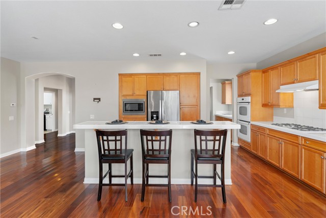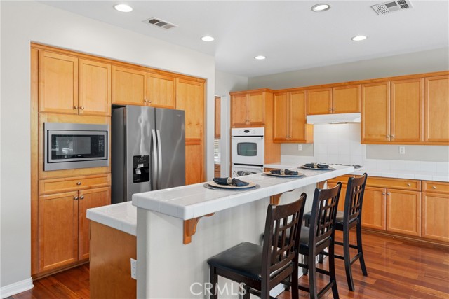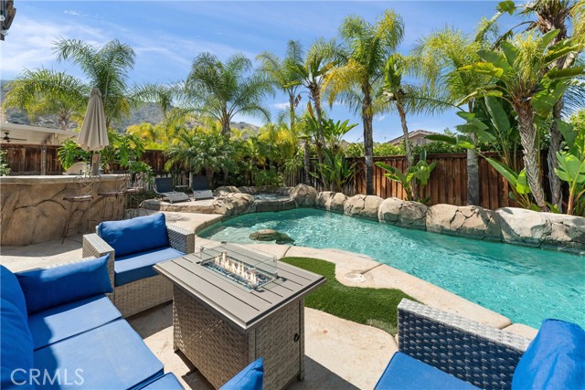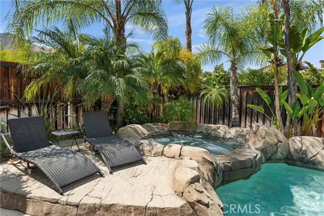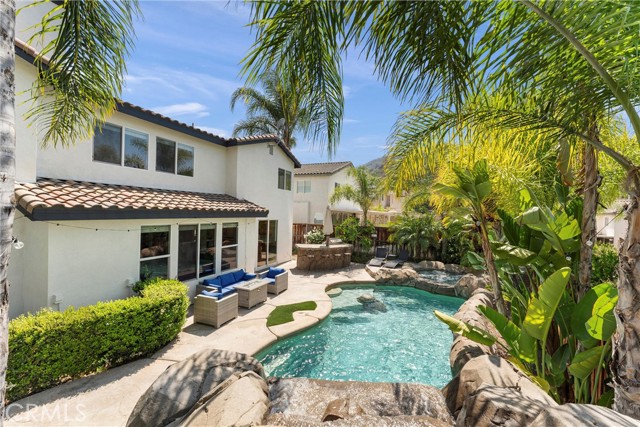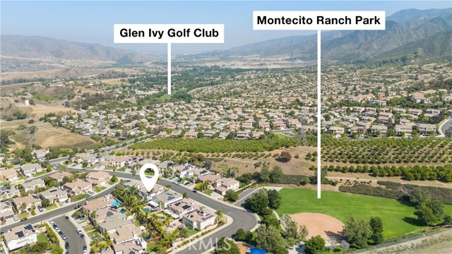 POOL, SPA & BBQ ISLAND | 5-BEDROOMS | 1ST FLOOR JUNIOR SUITE | 3-CAR GARAGE | LOW HOA | NO MELLO ROOS | Welcome to this stunning pool home nestled in the highly sought-after Montecito Ranch Community. From the moment you arrive, the curb appeal and pride of ownership are undeniable. Enter through grand double doors and be greeted by soaring ceilings, abundant natural light, and luxury wood flooring that flows throughout the main living spaces. The formal Living Room with its beautiful fireplace is an inviting space for relaxing or entertaining. Just beyond, the formal Dining Room impresses with dazzling chandelier and double-sided fireplace that adds warmth and elegance to both spaces. The heart of the home is the chef s Kitchen with extended cabinetry, breakfast bar seating, dual ovens, gas cooktop, Walk-In Pantry, and convenient Butler s Pantry connecting to the Dining Room. The open-concept layout leads to a spacious Family Room, ideal for everyday living. Upstairs find your luxurious Primary Suite, a true haven with its own oversized private sitting room. The spa-inspired Ensuite Bathroom features dual vanities, makeup station, walk-in shower, deep soaking tub with mountain views, and a massive walk-in closet. Upstairs, Bedroom #2 is a Junior Suite with private bathroom. Bedroom #3 is well-sized while Bedroom #4, located on the main floor, is an additional Junior Suite with adjoining bathroom and walk-in shower, perfect for multigenerational living. An oversized 5th Bedroom is perfect as a versatile space - perhaps your new Media Room or Home Office! You'll also find a charming additional "mini loft" at the 2nd floor landing for a reading nook or study area. The oversized Laundry Room includes a deep sink, folding counters, and ample cabinetry. Step into your resort-style backyard featuring a heated pool and spa, waterfall with grotto bench, Baja-deck, raised spa deck, built-in BBQ island with bar-top seating, and a mini fridge all surrounded by mountain views, gorgeous palm trees and custom hardscaping. Fresh exterior paint completes this exceptional home! ENERGY EFFICIENCY: Whole-house fan, ceiling fans, drought-tolerant landscaping, backyard artificial turf, sprinkler timers, dual-pane windows. LOCATION: Easy access to the 15/91 Expressway entrance makes commuting to OC a breeze. Nearby golf courses, Amazon Fresh, Trader Joe's, Tom's Farm, shopping, restaurants, cinemas, and more! Embrace an elevated lifestyle in a home that truly has it all!