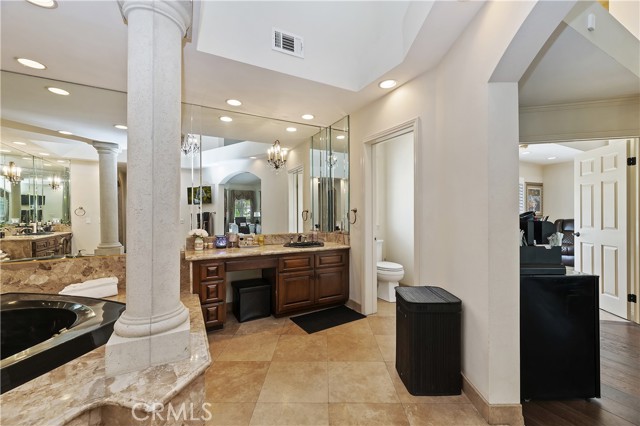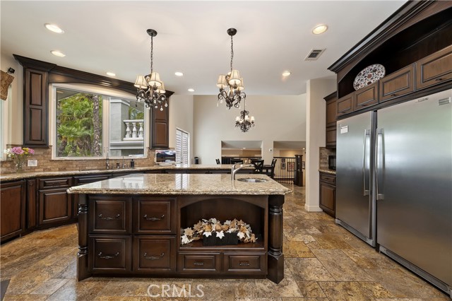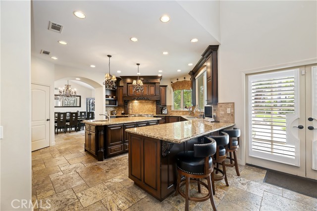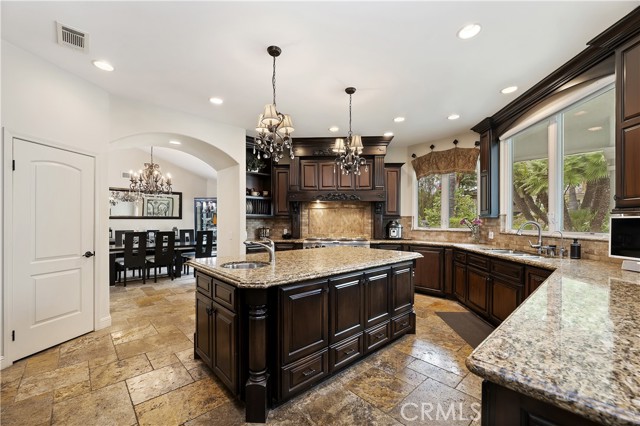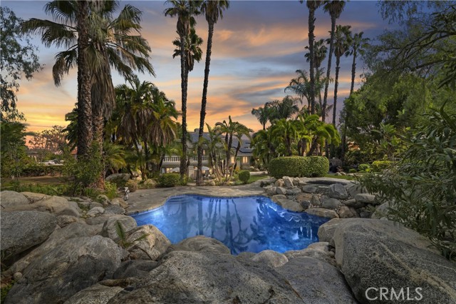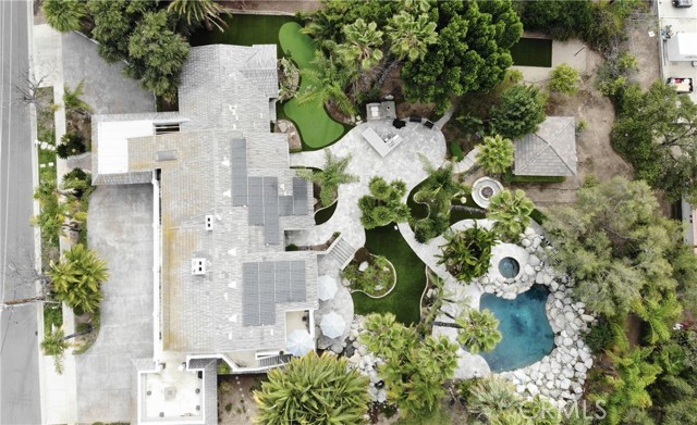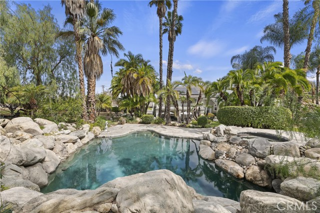 A Masterpiece of Luxury in Corona.Welcome to a stunningly crafted estate where elegance meets functionality,showcasing unique character and thoughtful architectural details at every turn .This exquisite 5,008 sq. ft. tri-level estate sits on a sprawling 24,394 sq. ft. lot.As you enter,the impeccable attention to detail immediately catches your eye and sets the tone for the grandeur within.Beautiful windows and French doors,along with exquisite stained glass accents throughout,create an ambiance of warmth,charm,and timeless elegance.Grandeur kitchen,Kitchen Aid appliances, an 8-burner stove,a double oven, a massive island with an eating bar,and stunning granite backsplashes.This estate offers four bedrooms and four and a half baths,with two ensuite bedrooms on the main floor and an office.The primary suite upstairs is a private retreat,complete with a cozy fireplace, opulent wood floors,2 large closets,French doors leading to an expansive deck.The spa-inspired luxury bathroom features majestic pillars,mirrored accents, an oversized jacuzzi tub.Designed for entertainment, this home includes a state-of-the-art theater room with a projector and high-quality reclining chairs.A dedicated game room and full entertainment bar area add to the home s entertainment appeal, with direct access to the pool area for seamless indoor-outdoor fun.Enjoy the comfort of four fireplaces,a spacious family room,a formal dining area and a formal living room for intimate gatherings.Step outside into an entertainer s paradise a wrap around deck,multiple French doors for seamless indoor-outdoor living,and a custom made area on the deck above a carport with a fire pit and seating.The real rock pool with cascading water features, a putting green,bocce ball area,artificial turf create a resort-style ambiance.The outdoor kitchen and gazebo, featuring a full-size pizza oven, wok station, built-in fireplace, and a big-screen TV. Multiple fire pits enhance the ambiance.For ultimate comfort and efficiency,the home is equipped with solar panels and an updated HVAC system,keeping energy costs low while ensuring a cool and comfortable living space year-round.Additional highlights include automated blinds,a 3-car garage,2 carports,dual water heaters,soft water system,and security cameras.Lot next door is available and optional with the sale of this home. APN# 120-080-013 it is 37,026 sqft. Use your imagination and build a second home or a huge garage and workshop. The possibilities are endless!Interested in this Listing?