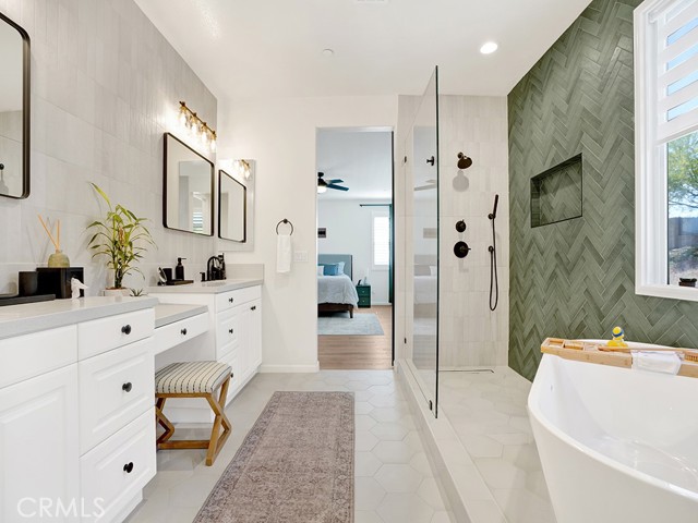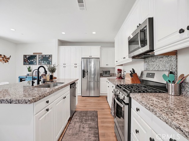 Welcome to 8967 Sunshine Valley Way, situated in a quiet area of South Corona in a community of only 50 homes. This stunning 3-bedroom + loft home is loaded with upgrades, energy-efficient features, and thoughtful design throughout. The open-concept main floor offers a spacious family room and a beautifully appointed kitchen featuring a large center island with seating for four, granite countertops, stainless steel appliances, and ample cabinetry for storage. A convenient powder room is located downstairs for guests. Upstairs, you'll find a versatile loft space, ideal for a home office, playroom, or additional living area alongside three generously sized bedrooms. The primary suite is a true retreat, complete with a walk-in closet, and a spa-inspired en-suite bathroom boasting a freestanding tub, designer tiled walk-in shower, quartz countertops, and dual vanities. The guest bathroom upstairs has been upgraded with custom tile tub surround and ceramic flooring, adding a touch of luxury rarely found in similar homes. The backyard is your private oasis, with fully landscaped front and rear yards, low-maintenance turf, and LED lighting, perfect for relaxing or entertaining. This home is also packed with value-adding features: 5kW leased solar system, Tankless water heater, QuietCool whole house fan, Whole home water softener, Under-sink 3-phase reverse osmosis system, Shutters throughout Nestled in a community that includes a park with a basketball court, playground, and optional gated RV parking for an additional fee, this home offers suburban tranquility with convenient access to the 15 freeway, dining, shopping at Dos Lagos, outdoor recreation, schools, and nearby Temecula Wine Country. Don t miss your chance to own this turn-key, upgraded beauty in one of Corona s most desirable neighborhoods!Interested in this Listing?