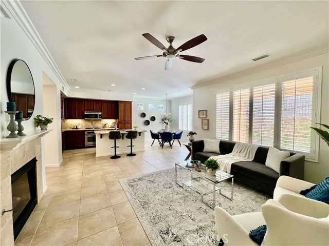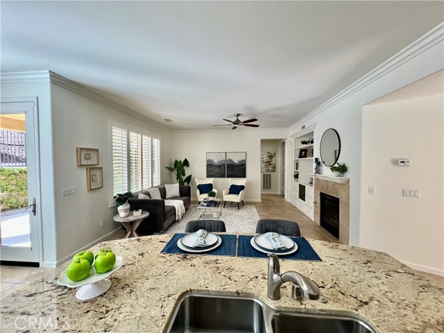 Live like you're on VACATION year round in this SINGLE STORY gated 55+ community of TRILOGY! Step into a spacious entry which separates the front bedroom and full bathroom from the primary bedroom in the rear of the home. The open concept great room merging the kitchen, dining and family rooms into one is FANTASTIC! The family room features a FIREPLACE with mantle, BUILT IN MEDIA NICHE, SHUTTERS and ceiling fan. The kitchen has warm wood cabinets and beautiful GRANITE countertops. The KITCHEN ISLAND has plenty of workspace while still offering counter seating. The GE PROFILE STAINLESS STEEL APPLIANCES are the final touch! The adjacent dining area is quite large offering room for a hutch AND a table. The large windows with shutters offer views to the backyard and the pedestrian door provides access to the covered patio. Next to the patio is a HUGE grassy area to enjoy as your own although it's maintained by the HOA. In the front of the house, the guest bedroom features beautiful ARCHED WINDOWS, mirrored wardrobe doors & ceiling fan. At the rear of the home is the primary bedroom with a soffit ceiling, ceiling fan, shutters, WALK IN CLOSETS with organizers and a spacious bathroom too! The very large shower with bench and hand held showerhead is a dream! This home has numerous UPGRADES like WOOD floors, SHUTTERS, crown molding, alarm system and more! Trilogy living is an active community offering pools, spa, gym, sports courts, activity rooms, clubs and more! The Pacific Crest Lodge is a 13,000 square-foot clubhouse that serves as the center of the community. It includes the Modjeska Lounge and Center for Higher Learning which offers classes in computers, photography, languages and many other subjects. There is always something to do at Trilogy at Glen Ivy with an onsite activities coordinator. Each day offers club meetings, classes, events, dancing and wine tasting and MORE! Local area attractions include upscale dining & shopping at The Shops at Dos Lagos, Toms Farms, Glen Ivy Hot Springs and wine tasing in Temecula isn't too far! This home has just been painted and is ready for you to call it HOME!Interested in this Listing?