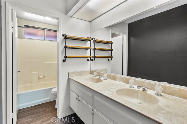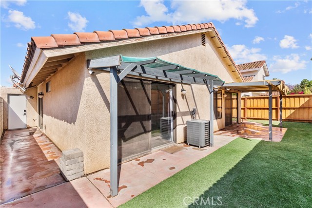 Single-story home in a gated community, available for immediate move-in. This 2-bedroom, 2-bath home features vaulted ceilings, flooring throughout (no carpet), and a spacious layout. The kitchen has been recently remodeled with hand-poured white Carrara marble-look countertops, freshly painted white cabinets, new hardware, and stainless steel appliances. Included are a refrigerator, stove, microwave, dishwasher, and washer and dryer. The private backyard is low-maintenance with artificial turf, concrete patio space, and two covered pergolas. The yard is fully enclosed with a wood fence for added privacy. The garage has been converted into a full home gym with equipment that will remain for tenant use (equipment will not be replaced if damaged). Laundry area is located in the garage. Driveway parking for two cars with no street parking permit required. Additional features include central A/C, a smart keyless entry system on both the front and garage doors, and an optional security system that can be activated by the tenant for $38/month. Pets allowed, with size and quantity restrictions. Tenant is responsible for all utilities except HOA dues. Renters insurance is required. Landlord will manage the property directly. Minimum 12-month lease. No short-term rentals. Located near the 91 and 15 freeways and just minutes from major retailers including Costco, Walmart, Vons, and Home Depot. The community features a refreshing pool and two grassy areas perfect for pet relief. Enjoy being just minutes away from a variety of popular dining options less than a mile from home, including Texas Roadhouse, Red Robin, Chipotle, El Torito, and many more local favorites.
