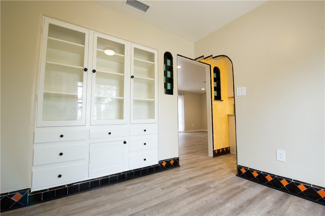 A very unique and special opportunity - if you live in Corona, then you're probably familiar with this charming historical Spanish Hacienda built in 1930. It consists of 5 units that have all been carefully restored over a 2 year time frame. This unit has 2 bedrooms & 1 bath and comes with a detached garage AND a reserved parking space. It features all the modern amenities you're used to, but with the charm and quality of the yesteryears. All recent improvements include: central heating & air (energy efficient), newer kitchen & bath cabinets w/ crystal knobs & granite countertops, Whirlpool appliances, refrigerator, Kohler toilet, Moen & Hansgrohe plumbing fixtures, LED recessed lighting throughout (lower electric bill), tankless water heater, luxury vinyl hardwood-look flooring, designer paint, high quality cordless blinds, pre-wired for U-verse Internet & phone, lighted door bells, bright exterior lighting, wrought iron accents, gated courtyard common area, beautiful landscaping & hardscaping & automatic garage door opener. Some historical features present are: coved ceilings, hand-formed arch-ways, built-in cabinetry, alcoves in walls, crystal door knobs, art deco tile in bath/showers, hide-away ironing table, door knockers with small peep door, additional on-site storage available (additional cost) and spacious coinless laundry area in basement. Yes, this building has a cool basement in it! Water included.