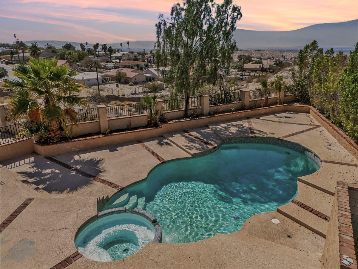 Price improvement!! This weekend will be the last chance before he decides to rent it out. This premier estate is the envy of Desert Hot Springs. Call me to find out why! Nestled on over half an acre of prime corner-lot real estate, this Spanish-style hacienda offers an extraordinary blend of elegance, serenity, and grandeur. From the moment you arrive at the private gated entrance, you'll be captivated by the majestic mountain and valley views that stretch endlessly before you. The sprawling driveway, large enough for a fleet of cars and an RV, is lined with stately palm trees, creating a resort-like welcome that sets the tone for the grandeur inside. Step through the doors and fall in love with the wide-open floor plan, where expansive windows bathe the home in natural light and offer breathtaking views from every room. The massive living room, accented by two fireplaces, is perfect for both cozy nights in and lively entertaining. A separate family room provides additional space for relaxation, while the versatile bonus room offers endless possibilities--it can be a home office, den, or additional bedroom, tailored to your lifestyle. The home features a lavish primary suite designed for ultimate comfort. Here, you'll find a shower room for two with an oversized custom tile shower, dual vanities, and separate his-and-hers walk-in closets--a true spa-like retreat. On the opposite side of the home, two private guest suites offer direct access to the backyard, creating an ideal separation of space. Outside, the backyard is nothing short of paradise. A sparkling pool and spa, enhanced by enchanting water features, create a tranquil escape where you can unwind or entertain in style. Beyond the pool, a fully fenced desert preserve cascades down the hill, offering a natural, untouched beauty that complements the luxurious setting. This property is more than a home--it's a masterpiece of luxury and nature, offering privacy, elegance, and breathtaking scenery. Whether you'rInterested in this Listing?