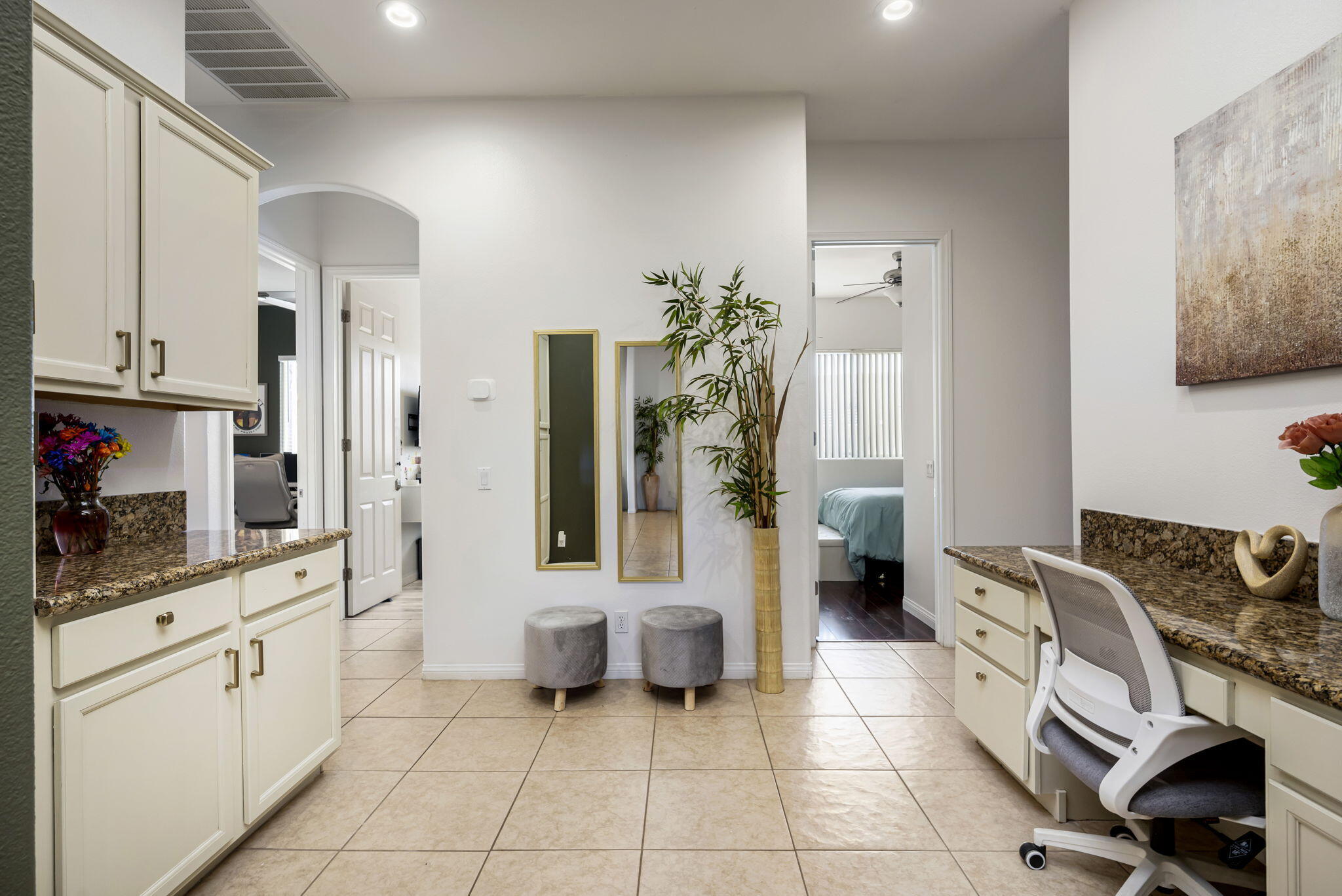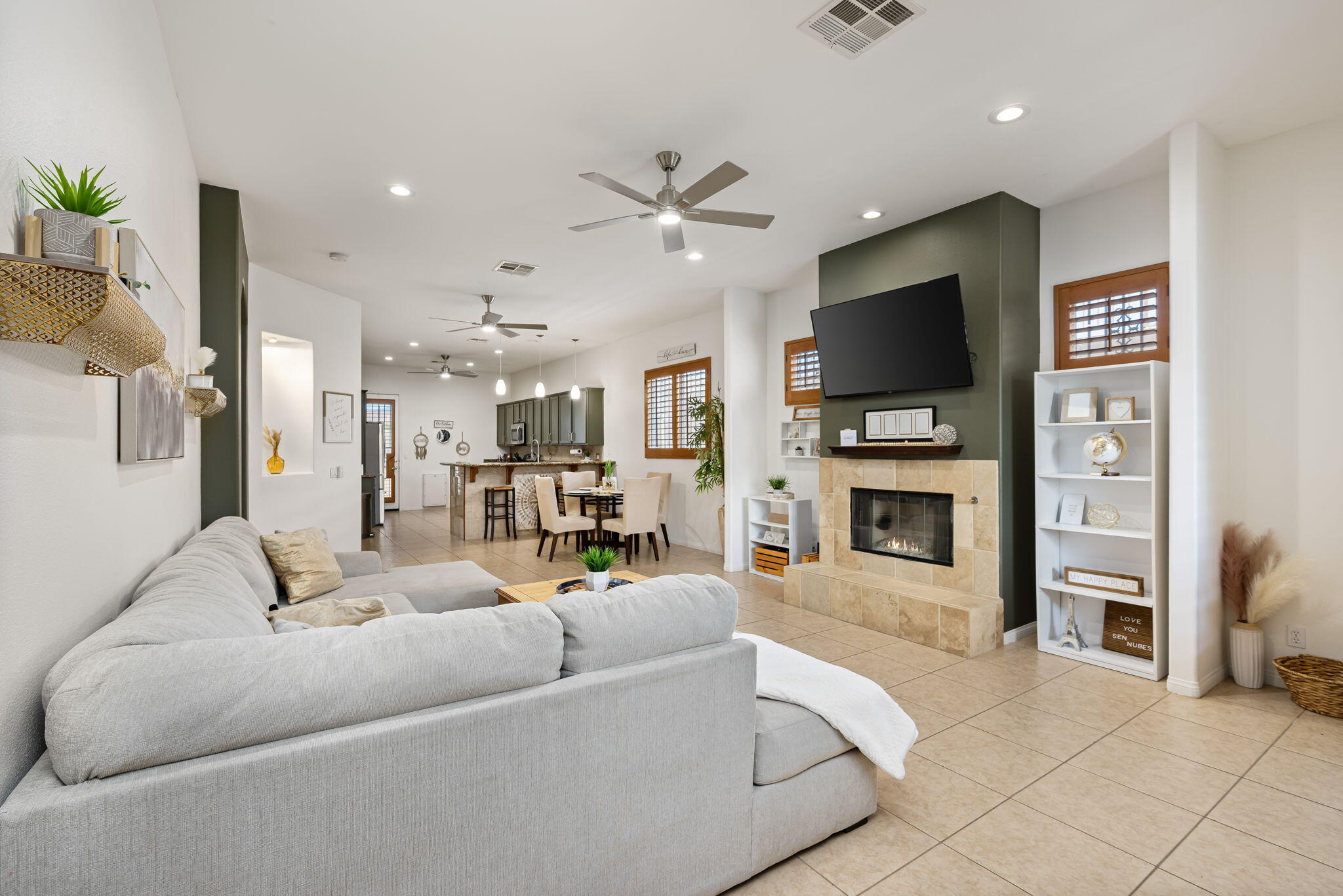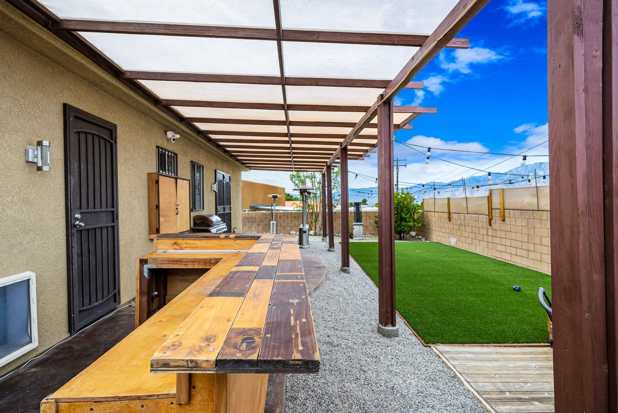 Welcome to this beautifully maintained 4-bedroom, 2-bathroom home offering 1,866 sq ft of comfortable living space. Perfect for both relaxing and entertaining. The spacious backyard boasts stunning views of the San Jacinto Mountains, newly installed turf, a stylish outdoor bar, and a deck ideal for lounging.Inside, enjoy modern upgrades including vinyl flooring in the bedrooms, adjustable LED recessed lighting, updated ceiling fans throughout, newer window coverings, and sleek pendant lights over the kitchen bar. The kitchen features plenty of cabinet storage space, a gas cooktop, and a large breakfast bar that is open to the dining and living spaces perfect for all of your hosting needs. The hallway leading to the bedrooms provides plenty of additional cabinet space as well as a built in desk area ideal for those who need a work from home area without occupying one of the bedrooms. Recent mechanical improvements include a new hot water heater (2025), A/C unit (2019), Alexa-enabled smart thermostat, and a Level 2 EV charging outlet in the garage.The exterior has been freshly painted (2022), and the extended driveway (2021) provides ample space for RV parking. Don't miss your chance to own this exceptional home!Interested in this Listing?