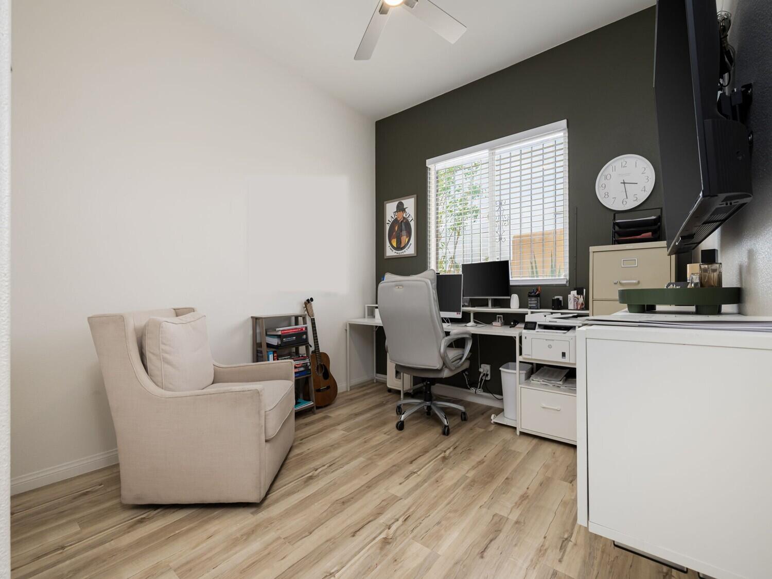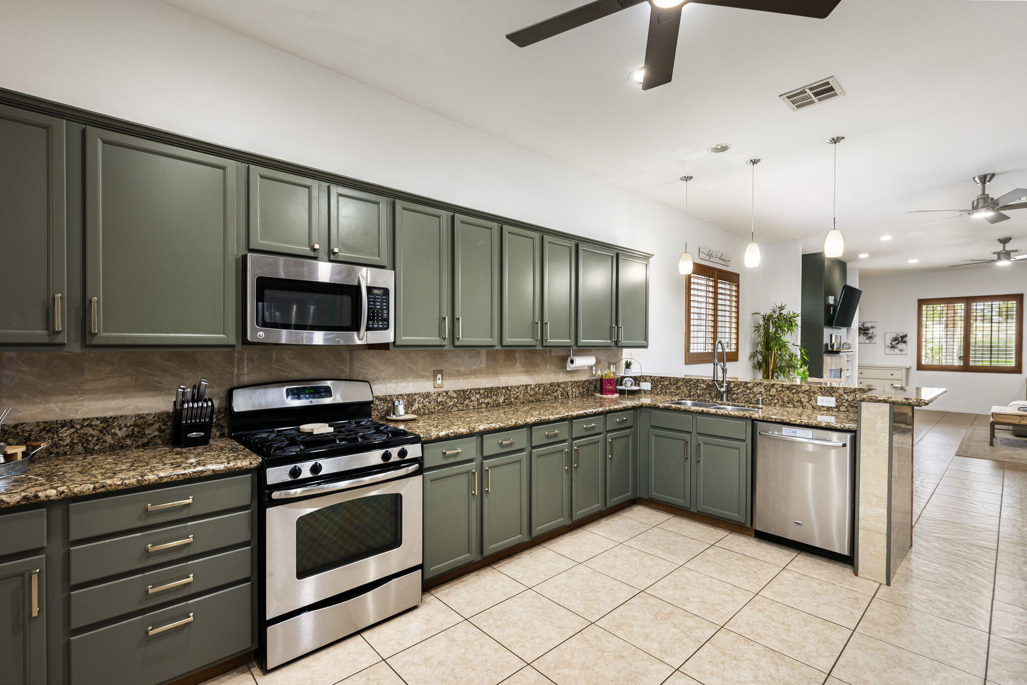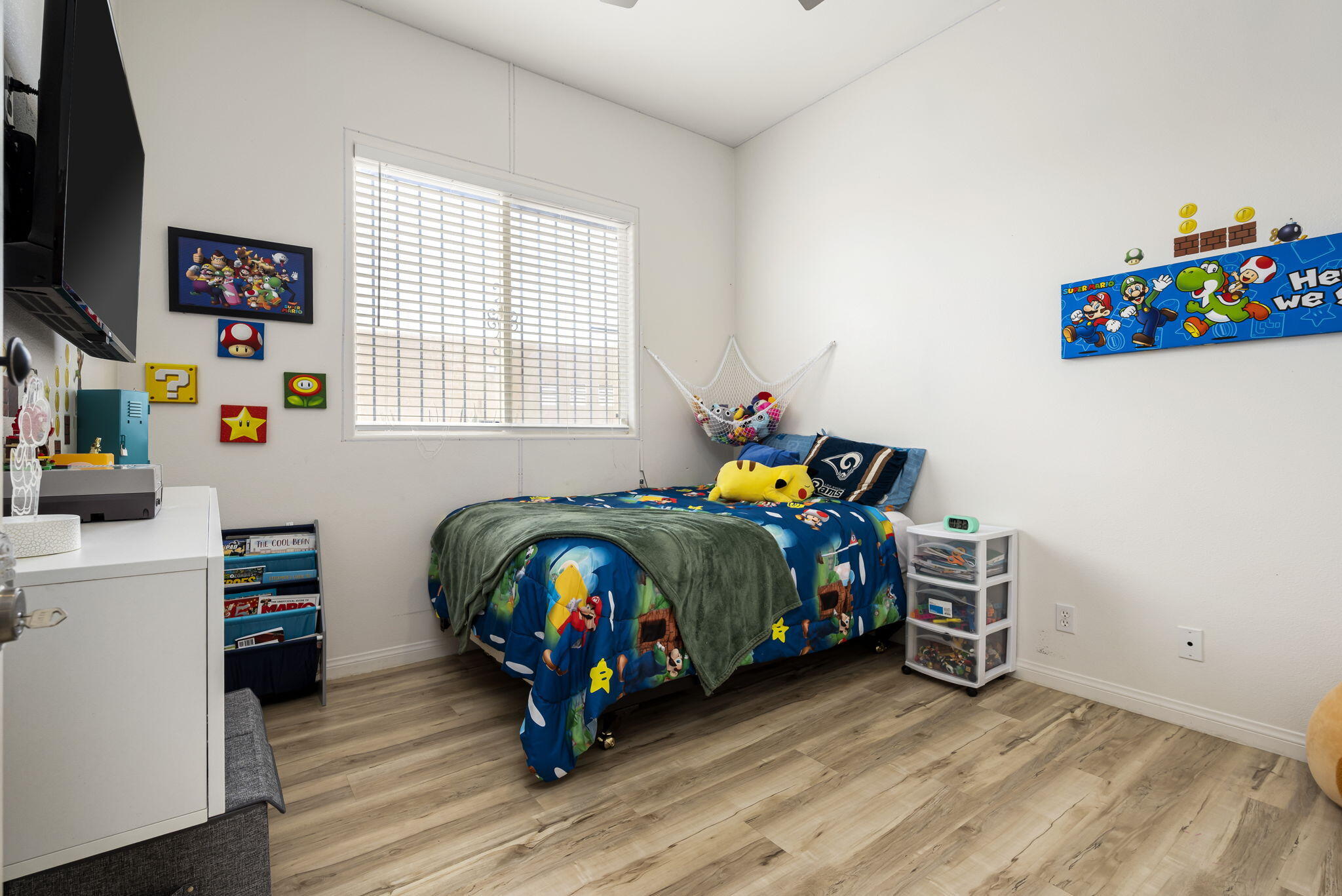 Welcome to this beautifully maintained 4-bedroom, 2-bathroom home offering 1,866 sq ft of comfortable living space. Perfect for both relaxing and entertaining. The spacious backyard boasts stunning views of the San Jacinto Mountains, newly installed turf, a stylish outdoor bar, and a deck ideal for lounging.Inside, enjoy modern upgrades including vinyl flooring in the bedrooms, adjustable LED recessed lighting, updated ceiling fans throughout, newer window coverings, and sleek pendant lights over the kitchen bar. The kitchen features plenty of cabinet storage space, a gas cooktop, and a large breakfast bar that is open to the dining and living spaces perfect for all of your hosting needs. The hallway leading to the bedrooms provides plenty of additional cabinet space as well as a built in desk area ideal for those who need a work from home area without occupying one of the bedrooms. Recent mechanical improvements include a new hot water heater (2025), A/C unit (2019), Alexa-enabled smart thermostat, and a Level 2 EV charging outlet in the garage.The exterior has been freshly painted (2022), and the extended driveway (2021) provides ample space for RV parking. Don't miss your chance to own this exceptional home!Interested in this Listing?