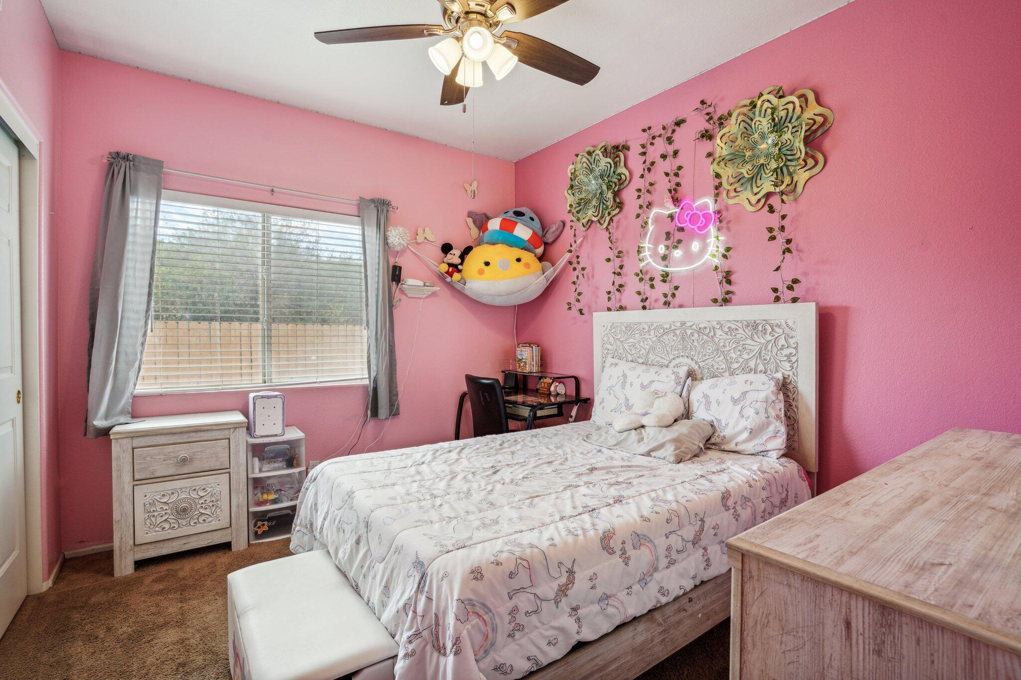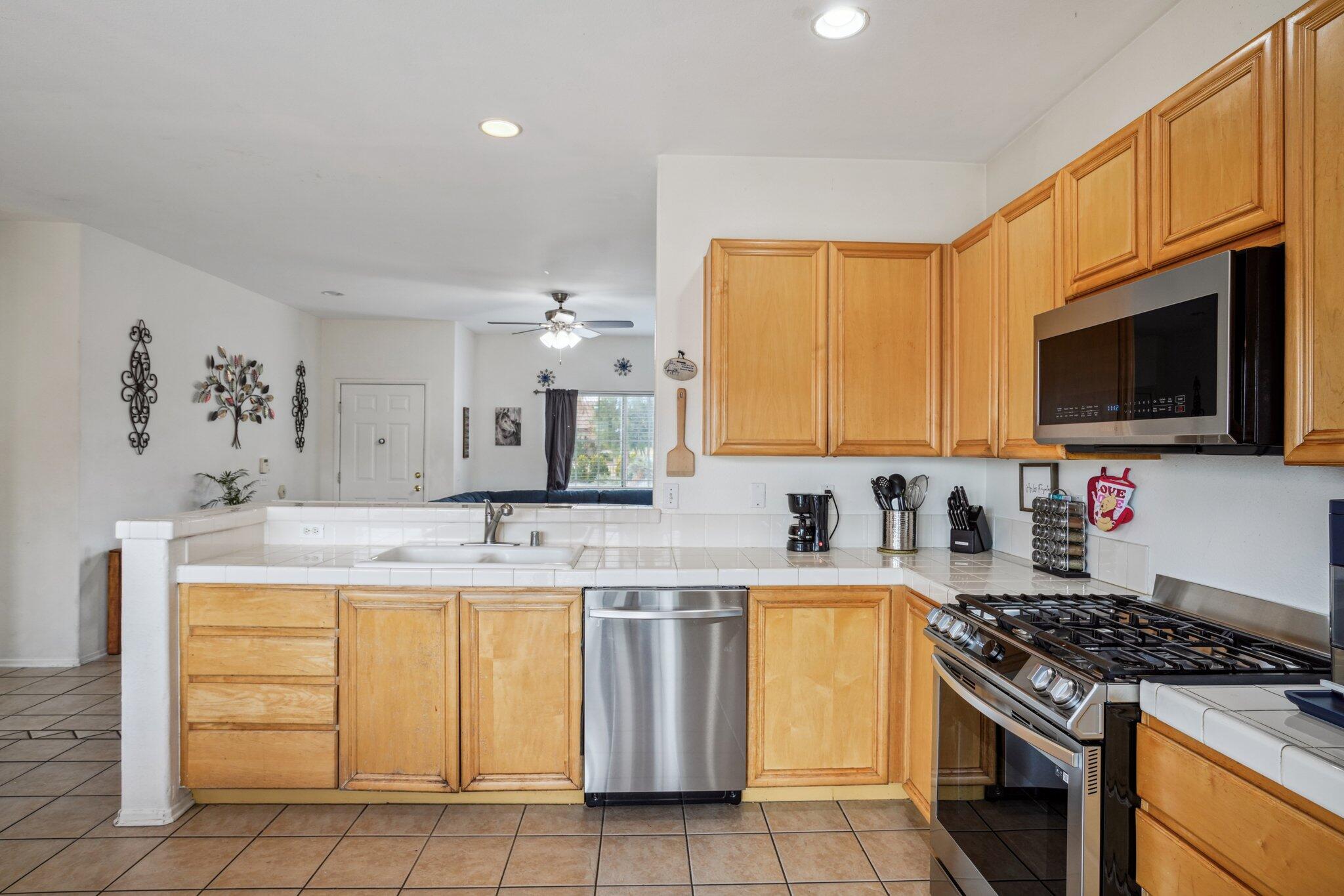 4 bed, 2 bath home with Solar Panels, a spacious floorplan, and an attached 2-car garage is ready for its new owner! Offering nice curb appeal with drought tolerant landscaping and a gated front yard. The interior has tile flooring in the main living areas, recessed lights, and lots of natural light. Enter into the living room with fireplace. The living room opens to the dining area and kitchen with slider to the backyard, and the kitchen features wood cabinetry, tile counters, and stainless steel appliances including the oven, microwave, and dishwasher. All 4 bedrooms have ceiling fans and carpet floors. The large primary bedroom features a walk-in closet and private bathroom with dual sink vanity, and there is a full size hall bathroom for the 3 secondary bedrooms to share. Enjoy the private backyard with grass area - this space is ready for the new owner's design. Conveniently located near schools, shopping, dining, and No HOA! Schedule your tour today!Interested in this Listing?