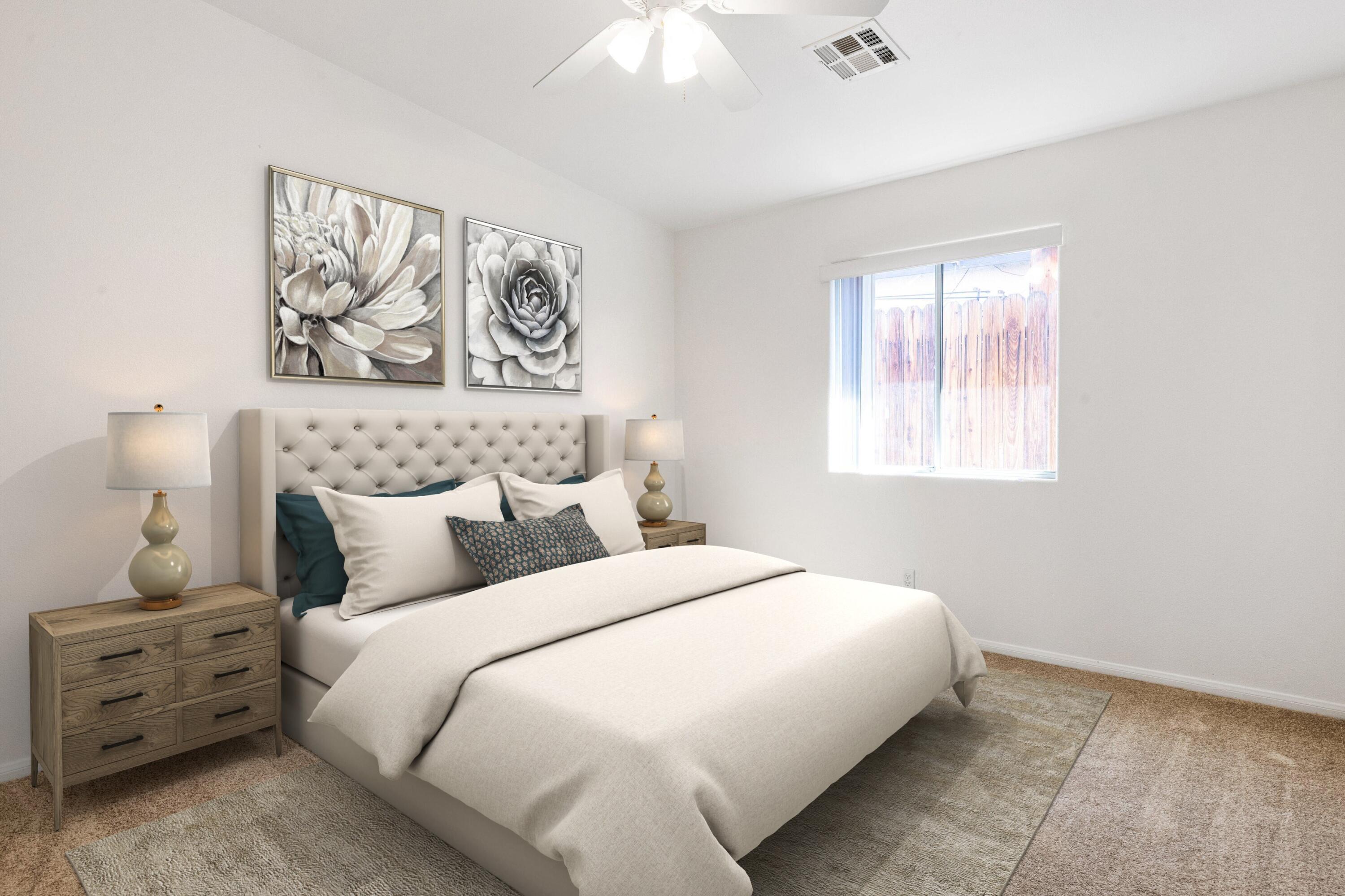 3 bed, 2 bath single level home located in the Miracle Heights tract of Desert Hot Springs, offering mountain views, a spacious floor plan with vaulted ceilings, tile and carpet floors, an attached 2-car garage, and is not located in an HOA! The large living room has a fireplace and double doors to the private backyard. The kitchen features tile counters with bar overhang, wooden cabinetry, recessed lights, and white appliances including a dishwasher, gas range, and a microwave. The dining room sits just off of the kitchen and has bay windows. The 3 bedrooms are generously sized with the large primary suite featuring private double door access to the backyard and there is a private, full-size, ensuite with dual sink vanity, and a walk-in closet. There is also a hall bathroom for the 2 secondary bedrooms to share, and a laundry closet completes the floor plan. Enjoy the large backyard that is fully-fenced and ready for the new owner's design, this home sits on a 9,148 sq ft lot and is conveniently located near shopping, dining, golf courses, trails, and not too far from the 10 Fwy! Schedule your tour today!Interested in this Listing?