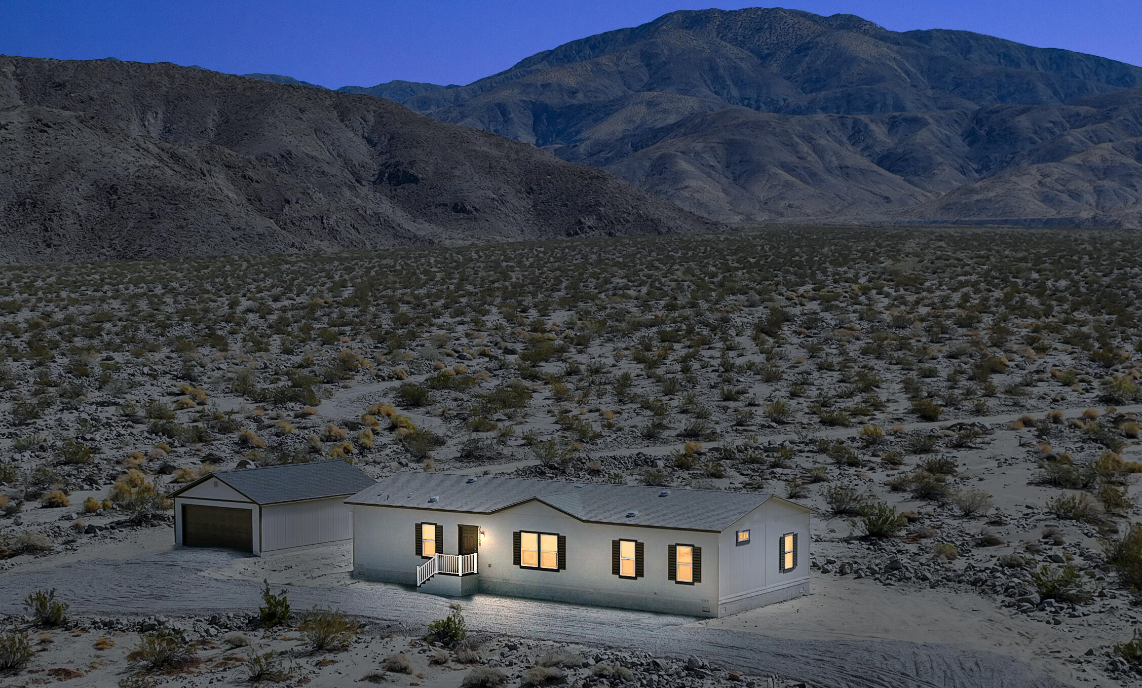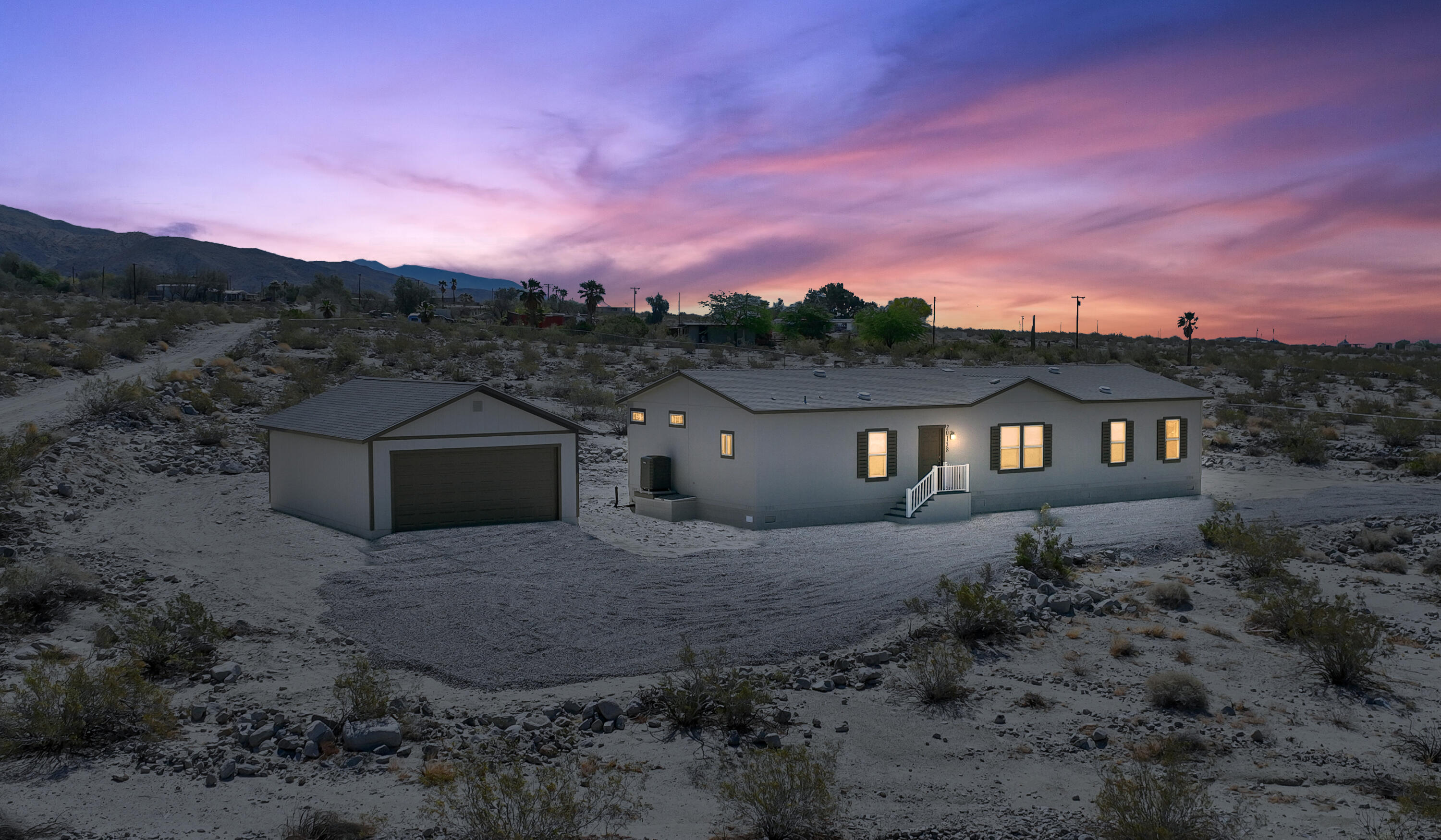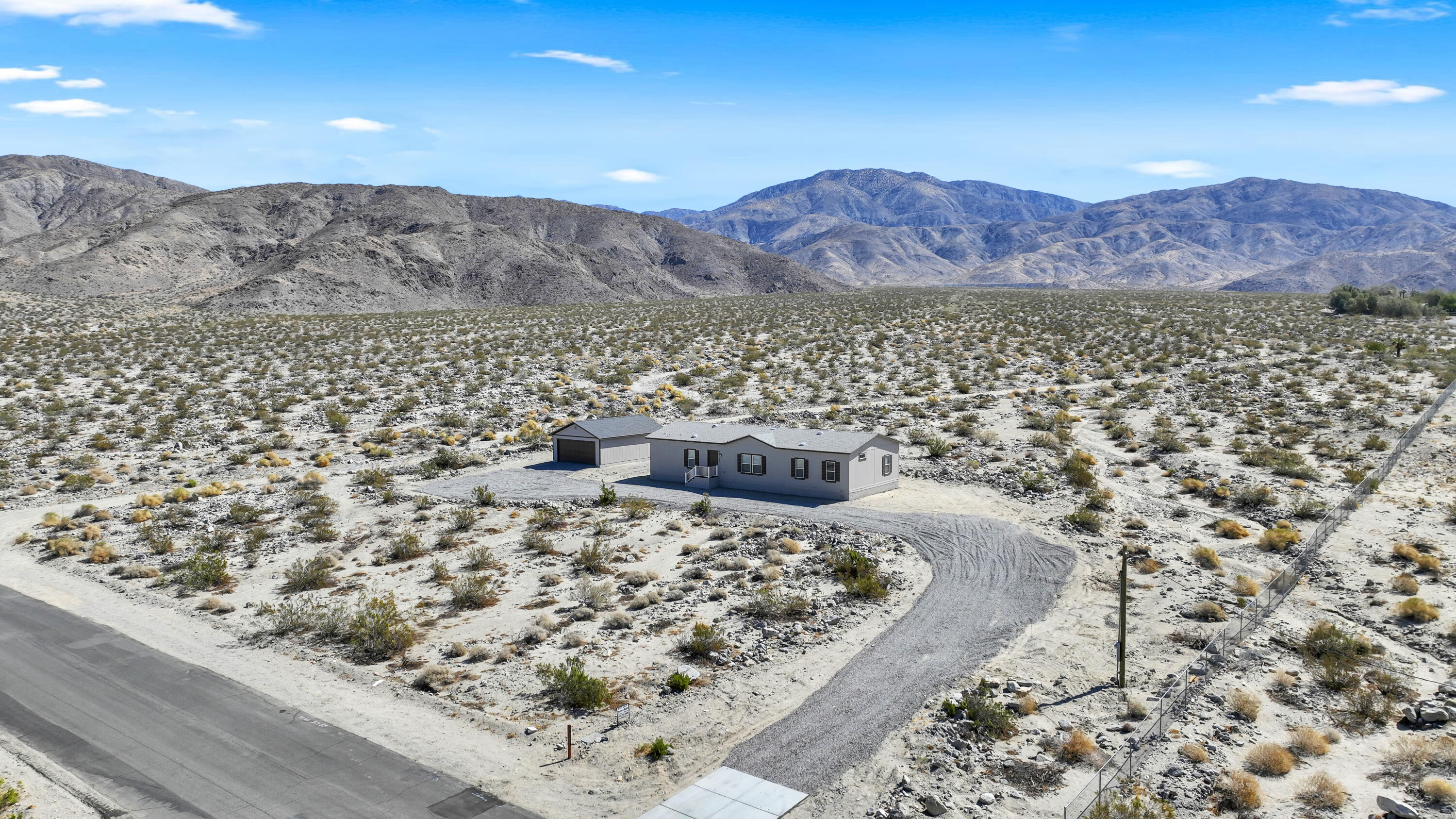 New home on just under 5 acres with an oversized (20 X 30) two car garage and workshop. This new home is on a permanent foundation and includes kitchen appliances. This area is part of the IID (Imperial Irrigation District - electric company) which will save you money on your electric bills. This unit is 4 bedrooms, 2 baths with a den and 1800 square feet of living space. The views from this home are nothing less than spectacular as you look out to see Mount San Jacinto, and San Gorgonio , along with the little San Bernardino mountains along the side and east. This home gives you the feel of wide open spaces as you enjoy peace and quiet all around you. EZ to show!Interested in this Listing?