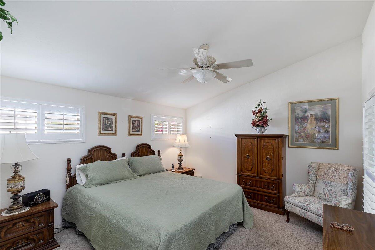 Welcome to Vista Montana, a premier 55+ community in Desert Hot Springs offering the perfect blend of comfort and convenience. This meticulously maintained 2005-built manufactured home, set on a permanent foundation (433a), features 1,552 square feet of thoughtfully designed living space. With two bedrooms and two baths, the home boasts cathedral ceilings in the living room and bedrooms, a large kitchen with a breakfast bar and walk-in pantry, an informal dining area, and stylish touches like shutters throughout and clearstory windows that fill the space with natural light. The laminate and carpeted flooring add to the home's charm and functionality. Outdoor living is a breeze with a covered patio and a spacious concrete slab, complemented by a low-maintenance front yard with artificial grass and no rear neighbors for added privacy. A two-car garage provides convenient parking and storage. The Vista Montana community enhances your lifestyle with resort-style amenities, The low HOA fees provide access to a range of amenities, such as pools, spas, sauna, BBQ facilities, and a clubhouse. Don't miss your chance to live in this vibrant, sought-after neighborhood--schedule your showing today!Interested in this Listing?