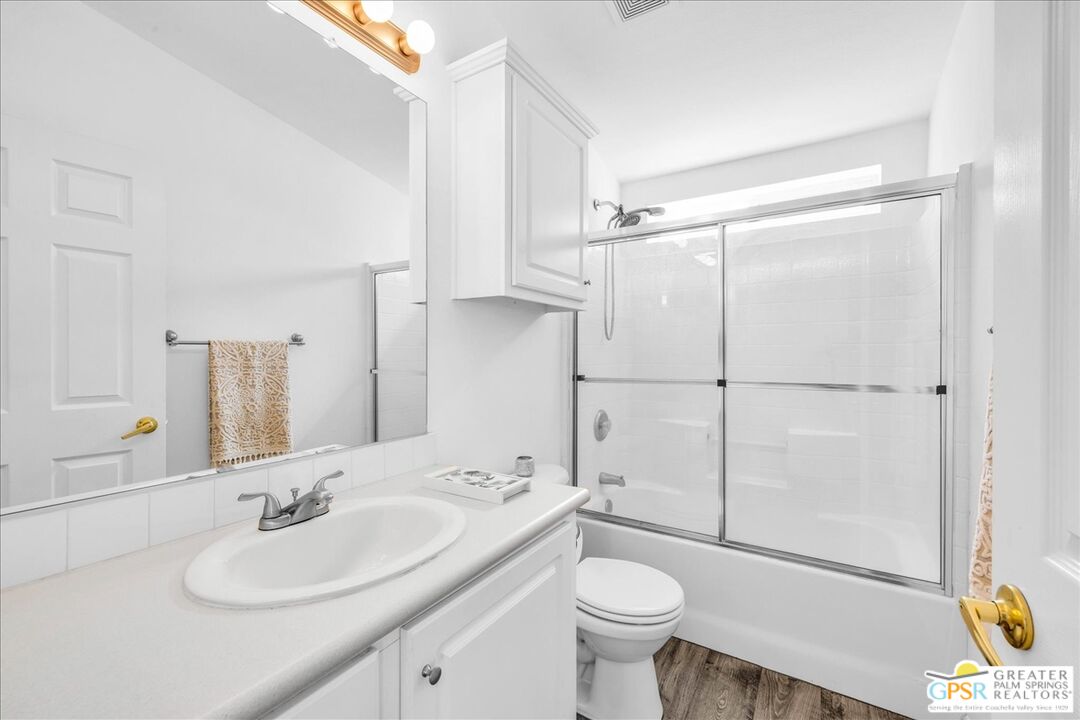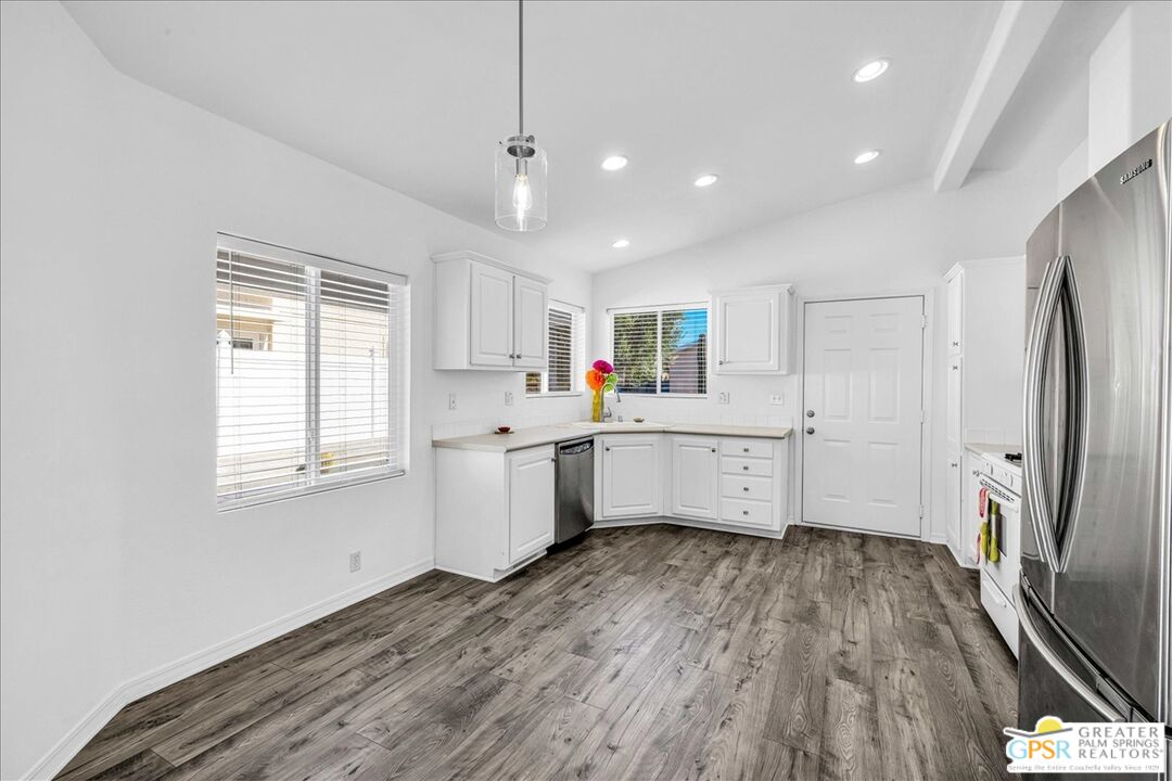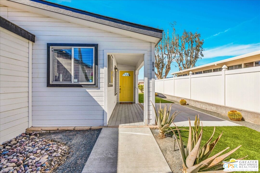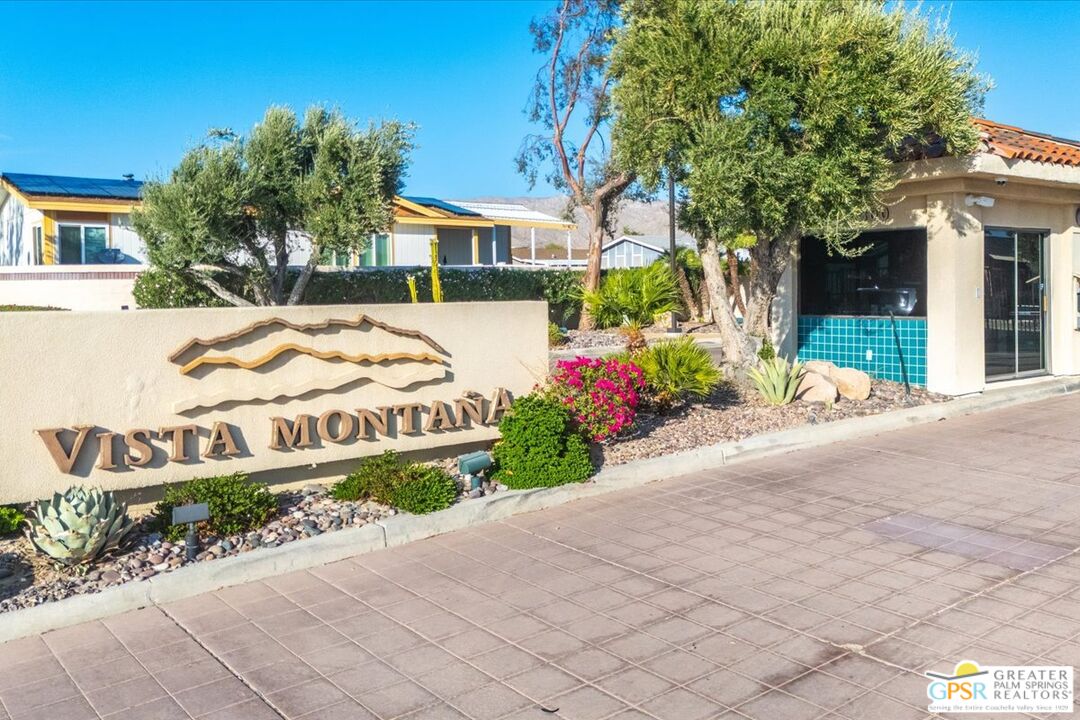 FEE LAND! You own the land! Don't miss this excellent opportunity to call this upgraded home yours! Welcome to the beautiful 55 plus community of Vista Montana. A resort style community which offers a gated environment which consists of 260 homes. This property has 1178 square feet with two bedrooms and two bathrooms and a 433A certification which qualifies for a potential buyer who is purchasing with a loan. Both bedrooms have new carpeting. There is a primary ensuite bedroom/bathroom which has upgraded laminate flooring, spacious closet and stall shower. There is a second bedroom and another bathroom nearby which also has upgraded laminate flooring with a tub over shower. The interior has recently been painted, the exterior was painted 7 years ago. The kitchen has all new laminate flooring and direct access to the 2-car garage. The exterior of the property has extensive hardscaping, newer artificial turf along with desert landscaping and newer irrigation system. In addition, there are several patio areas. The amenities in the development offer an onsite manager, large clubhouse, two pools one of which is a resort style pool heated and two large spas which are heated as well. There is a gym, sauna, dog park, shuffleboard, walkways, card room billiard room and much more.Interested in this Listing?