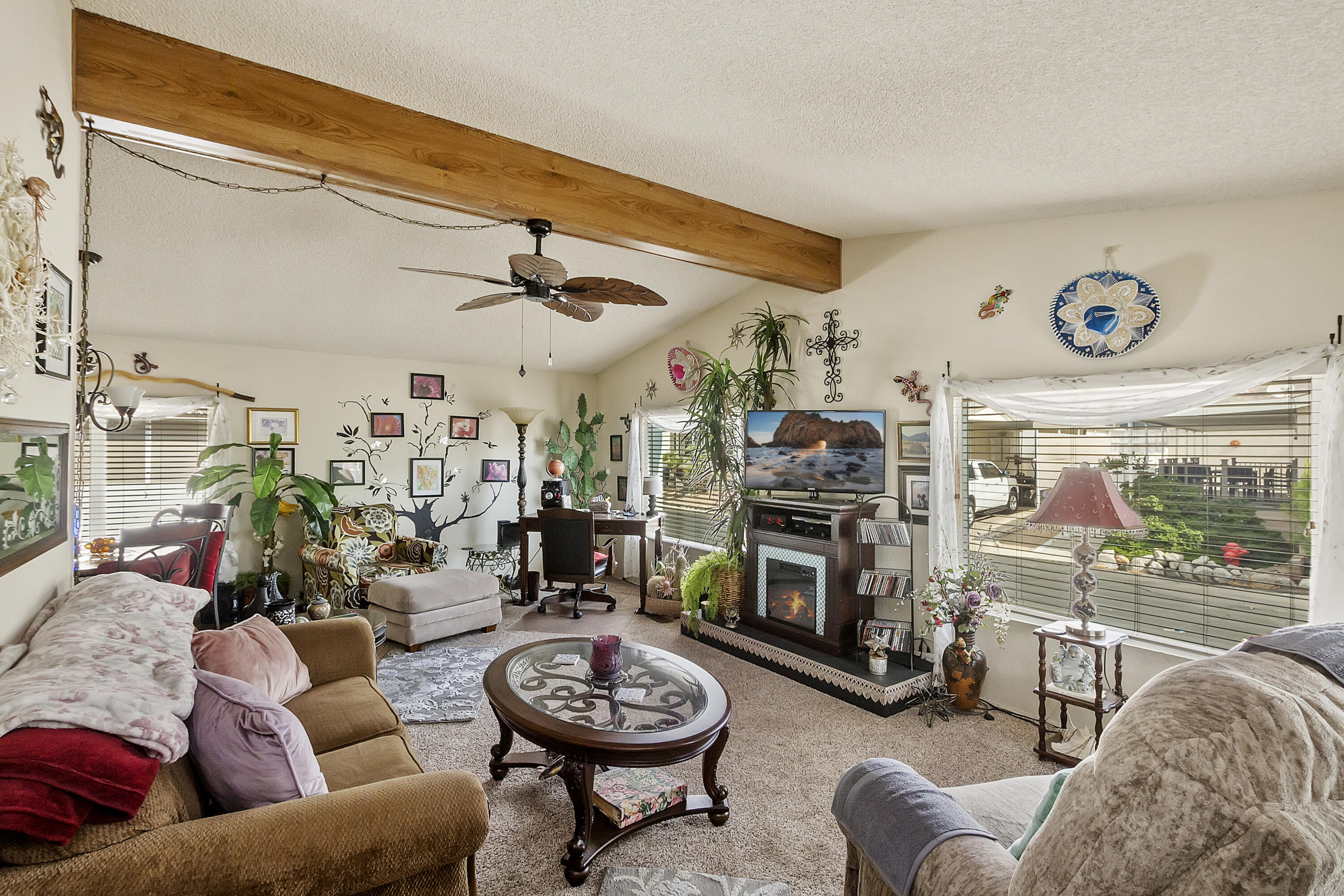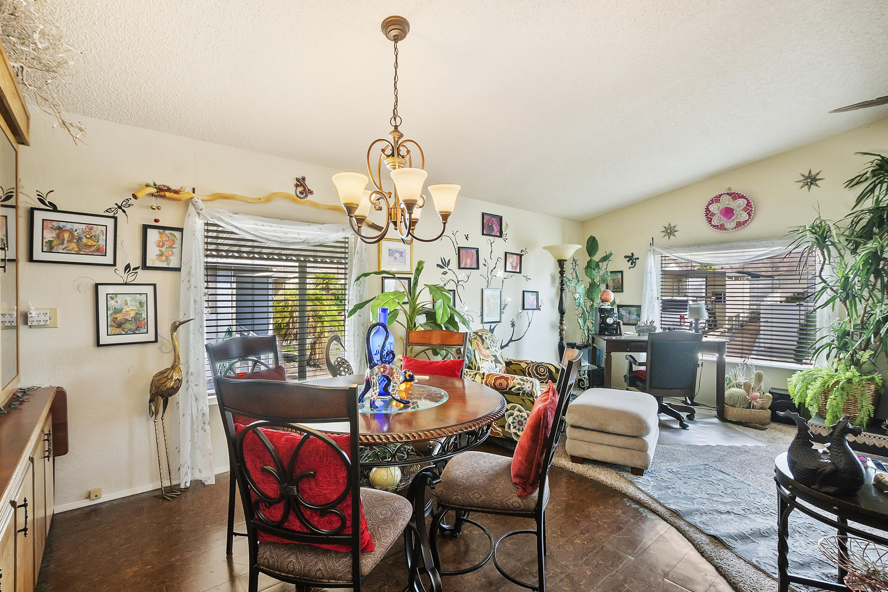 Welcome to family friendly Sky Valley Resort! This 2 bedroom 2 bath home is offered turnkey furnished and absolutely move in ready and located just steps from the main pool and clubhouse. This home is immaculate, new windows, quality trex deck covered patio, laminate flooring, upgraded carpeting, electric fireplace, large pantry, spacious primary bedroom and bathroom, separate laundry room, covered carport, breakfast bar and beautifully furnished. Enjoy the rare and healing hot mineral water in the pools and spas, pickleball, tennis, 2 dog parks, Chapel, Farmers market, and the most friendly neighbors. This is a perfect permanent home or warm Winter vacation home, driving distance from quaint downtown Palm Springs, fine shopping and dining on El Paseo, PGA golf tournaments, tennis tournament, art festivals, Coachella music festivals and so much more!Interested in this Listing?