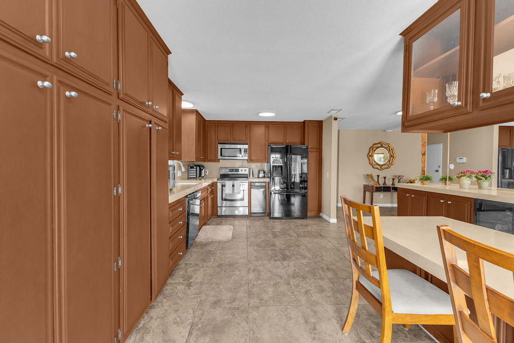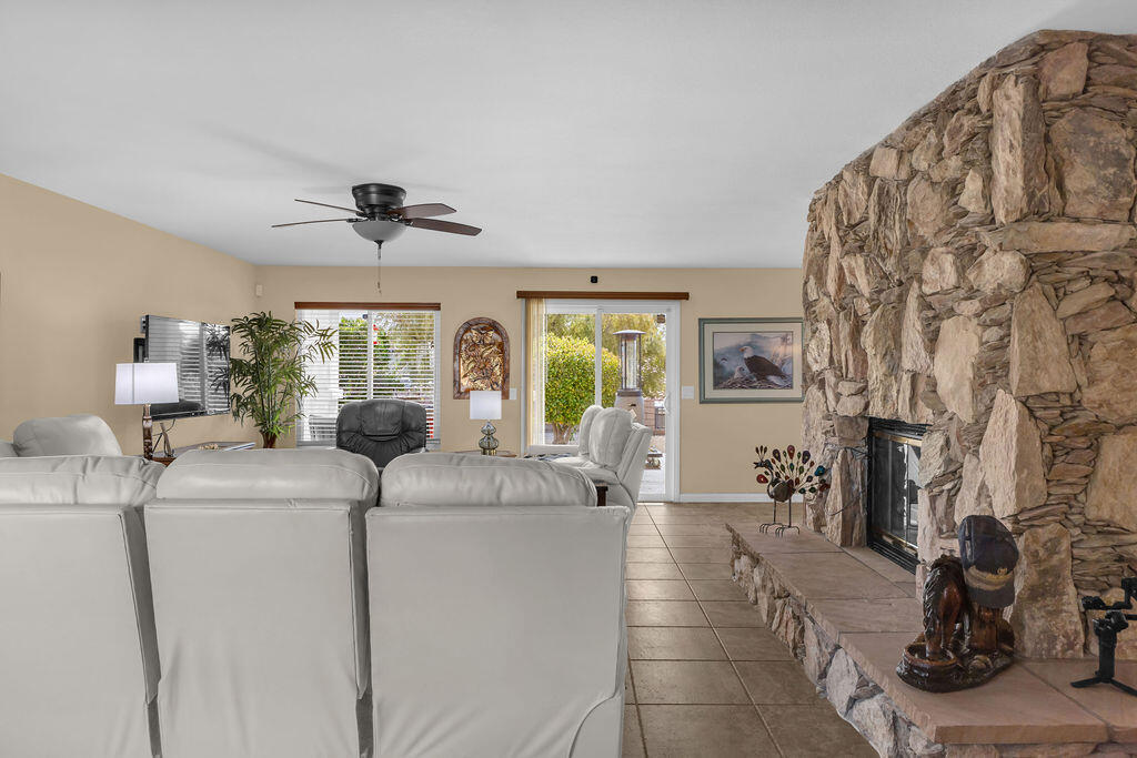 Discover this well-maintained 2-bed, 2-bath home in the desirable Mission Lakes Country Club community. Boasting 1,568 sq. ft. of spacious living, this home features a large kitchen, a stunning rock fireplace, and a manicured backyard with breathtaking views--perfect for relaxing or entertaining. Enjoy the added luxury of a bar area with a wine fridge and a covered patio, ideal for hosting friends and family.The property also includes a 2-car garage with an additional golf cart garage and double-pane windows that provide energy efficiency and comfort year-round. Golf for 2 on Title adds incredible value, allowing you to enjoy the perks of country club living. This property has been seasonally used for the past 13 years, and the owner's pride is evident in its excellent condition. Don't miss this opportunity to experience resort-style living in Mission Lakes!Interested in this Listing?