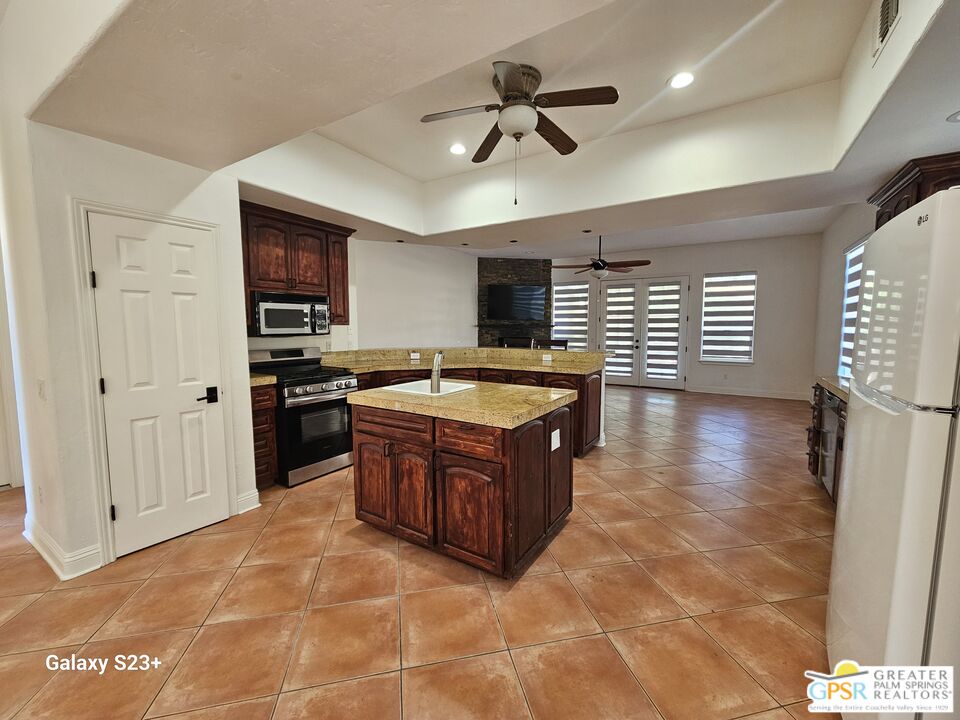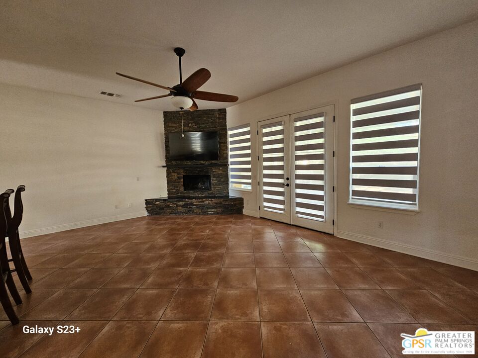 Opportunity Knocks for a great Santa Fe style home in Mission Lakes Country Club. Located on a horseshoe street, not a lot of traffic. Open floor plan with high ceilings. Primary bedroom has doors leading out to the private rear yard and patio. Indoor laundry room. 3rd car garage is a storage unit or golf cart parking. A leased solar system is in place. Mission Lakes Country Club features many amenities for owners including unlimited golfing on a championship Ted Robinson designed course, beautiful pool and 2 spas, fine dining at the restaurant.. There are also Tennis courts, pickleball, and a gym. Exercise classes and other social activities. You'll love it !!Interested in this Listing?