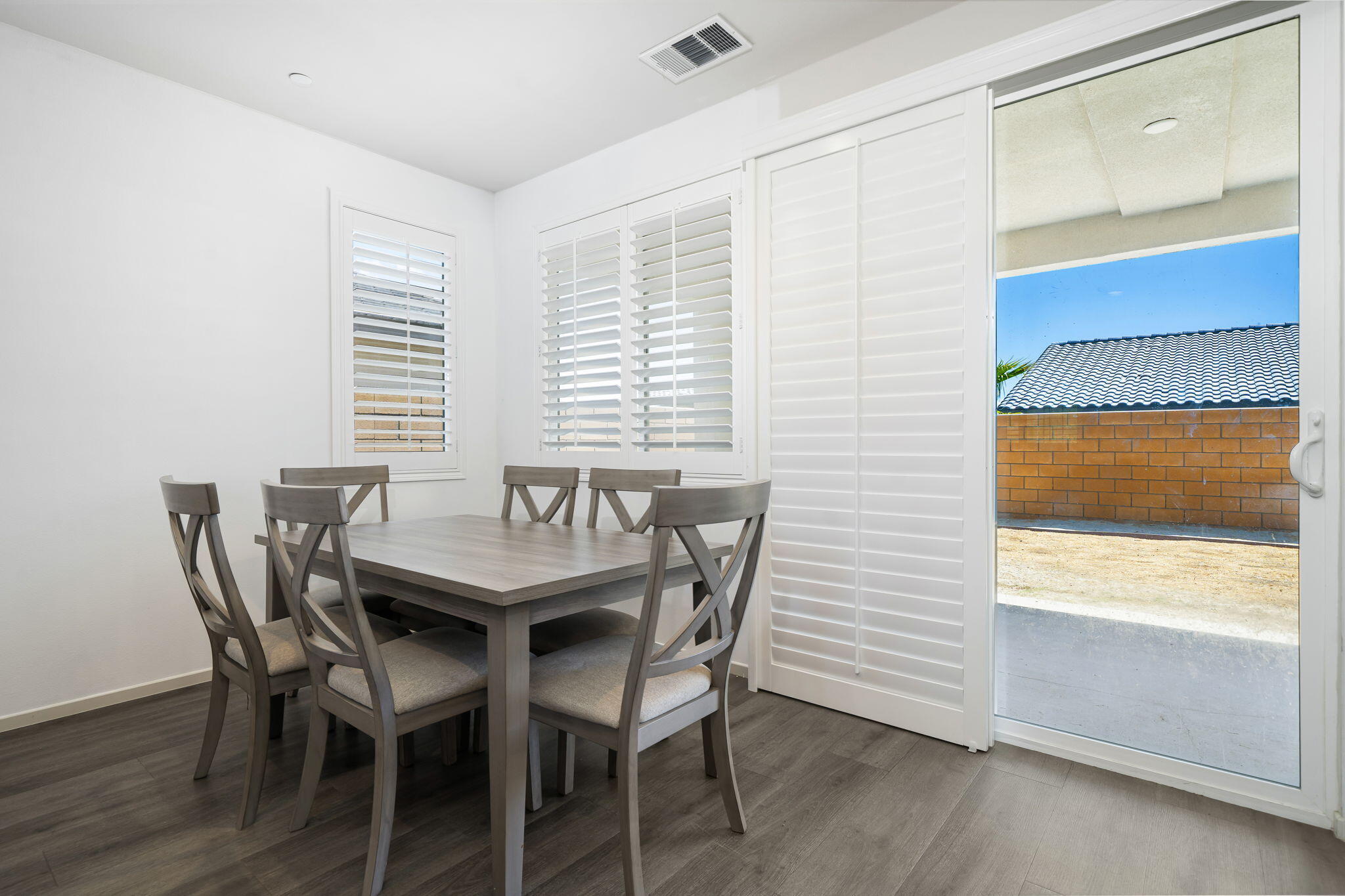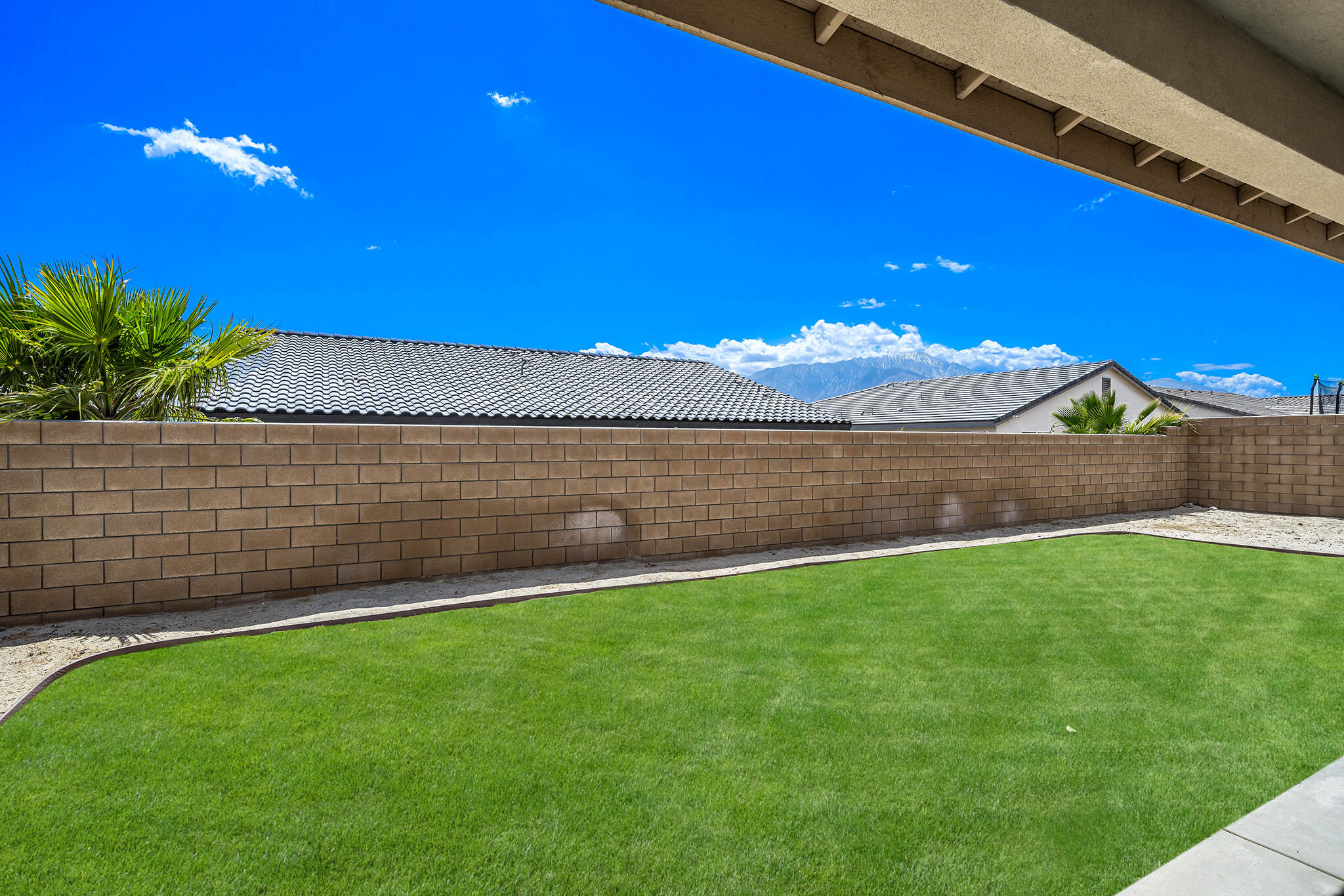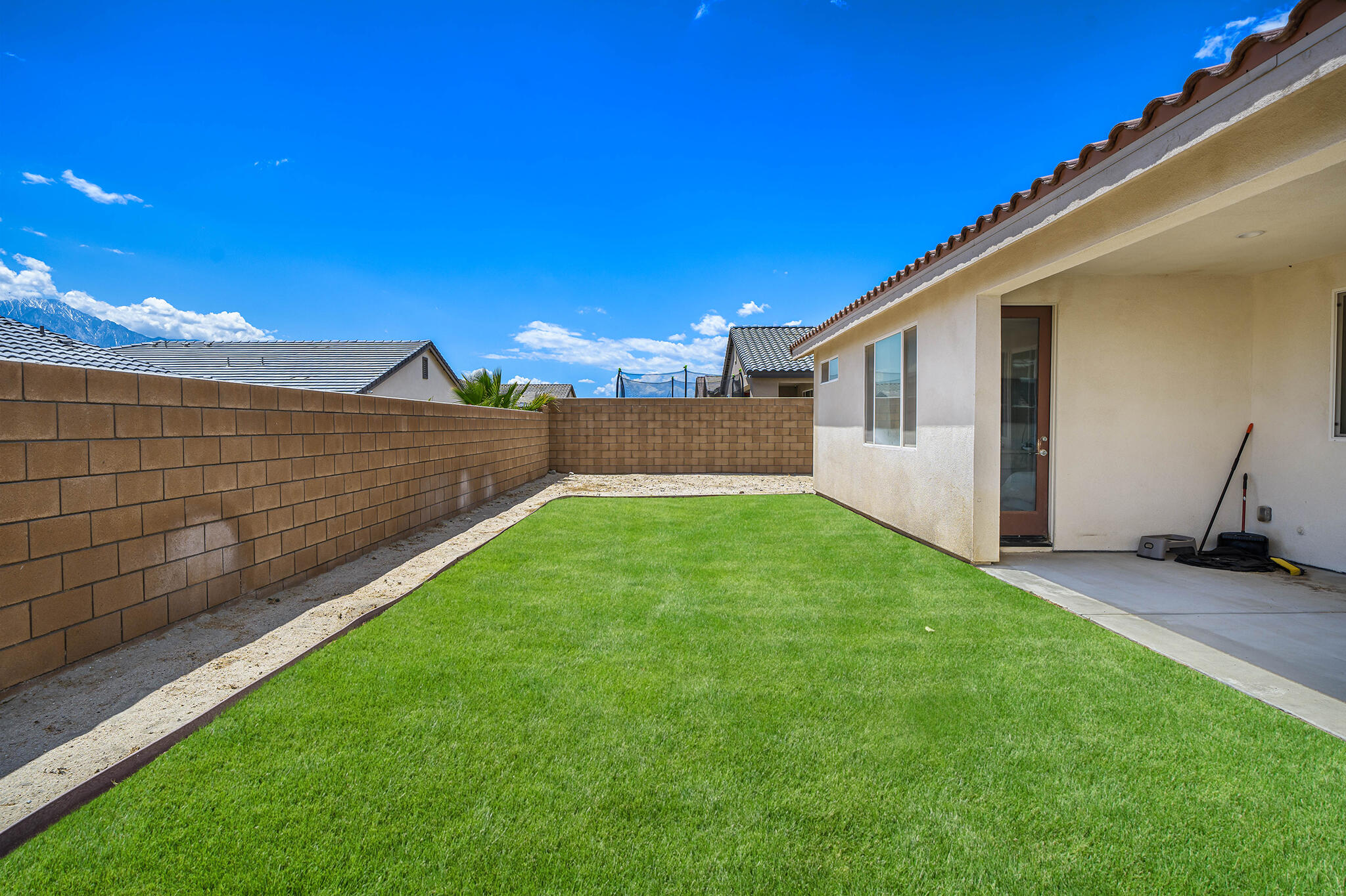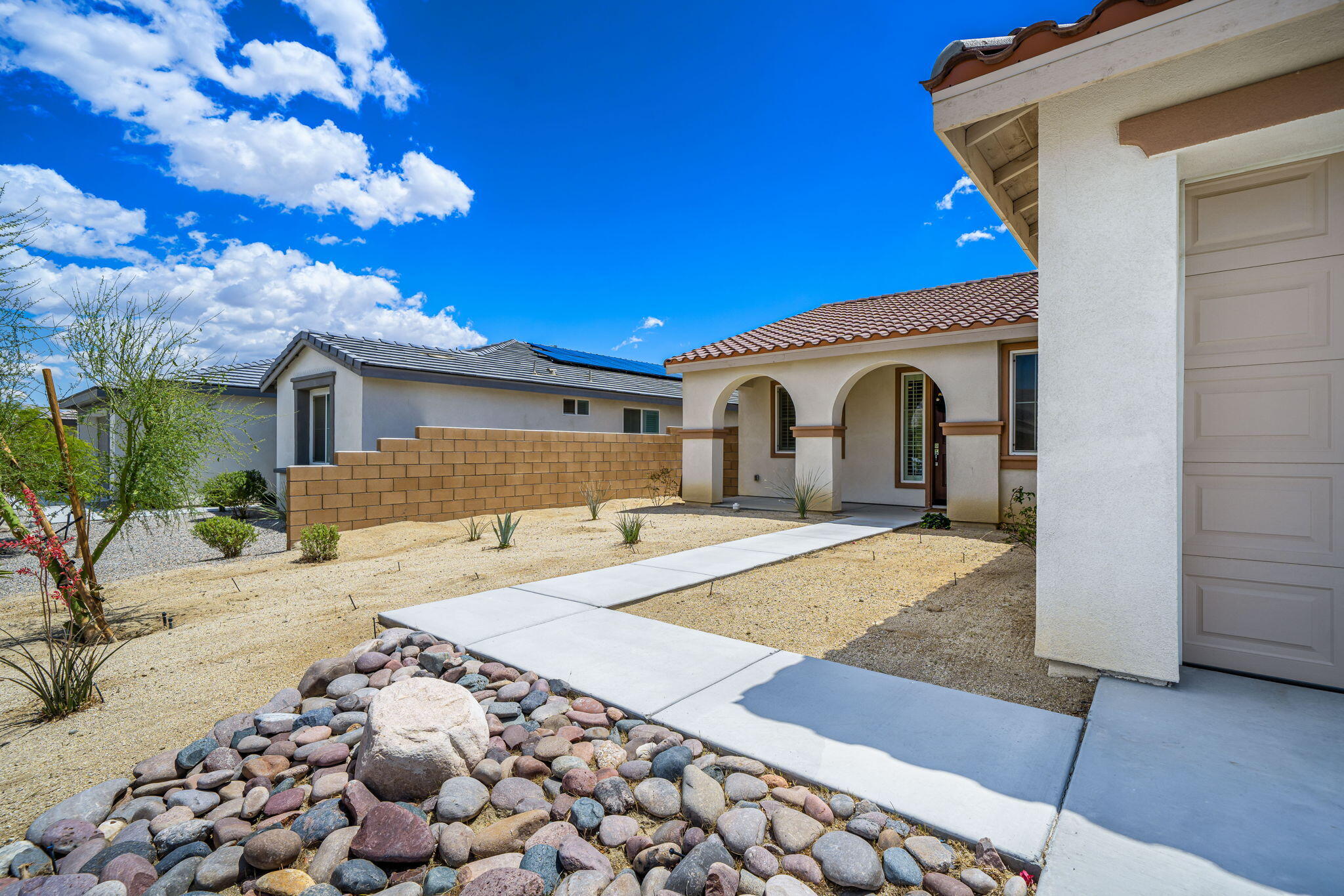 Like-new 4-bedroom, 2-bathroom home, constructed in 2021, located in the desirable gated community of Agua Dulce, is ready to welcome its new owners! Boasting impressive curb appeal, this residence features owned solar panels by Renova, captivating mountain views, and a spacious 3-car garage. Inside, you'll find a generous open floor plan enhanced by high ceilings, recessed LED lighting throughout, durable vinyl plank flooring, and pre-wired CATV 5 & 6 for high-speed internet.The stylish dining area provides direct patio access via sliding glass doors. The stunning kitchen is equipped with quartz countertops, tile backsplash, a large island with abundant storage, breakfast bar seating, GE stainless steel gas appliances, and a convenient pantry. Retreat to the spacious primary suite, which includes a private door to the backyard and an elegant ensuite bathroom featuring a large tiled walk-in shower, dual-sink vanity, and a generous walk-in closet.Additional amenities include dual vanities in all bathrooms, a well-appointed laundry room with ample cabinetry, and pre-wiring for an alarm system. The backyard is perfect for relaxation and entertaining, offering a built-in covered patio and a spacious, gated side yard ideal for a dog run. The home features low-maintenance desert scape landscaping in the front yard. Community residents enjoy access to a large pool and spa, all with remarkably low HOA fees. Conveniently located near schools, shopping, dining, and more, this home awaits your visit. Schedule your tour today!Interested in this Listing?
