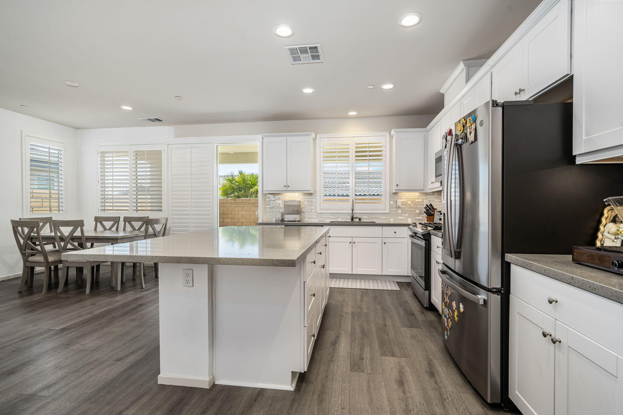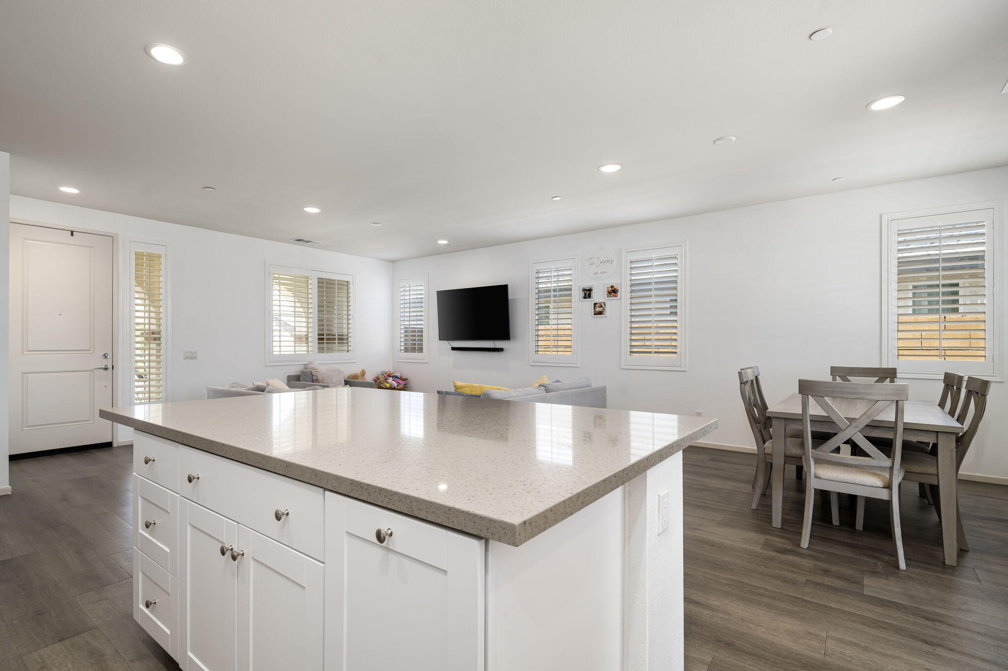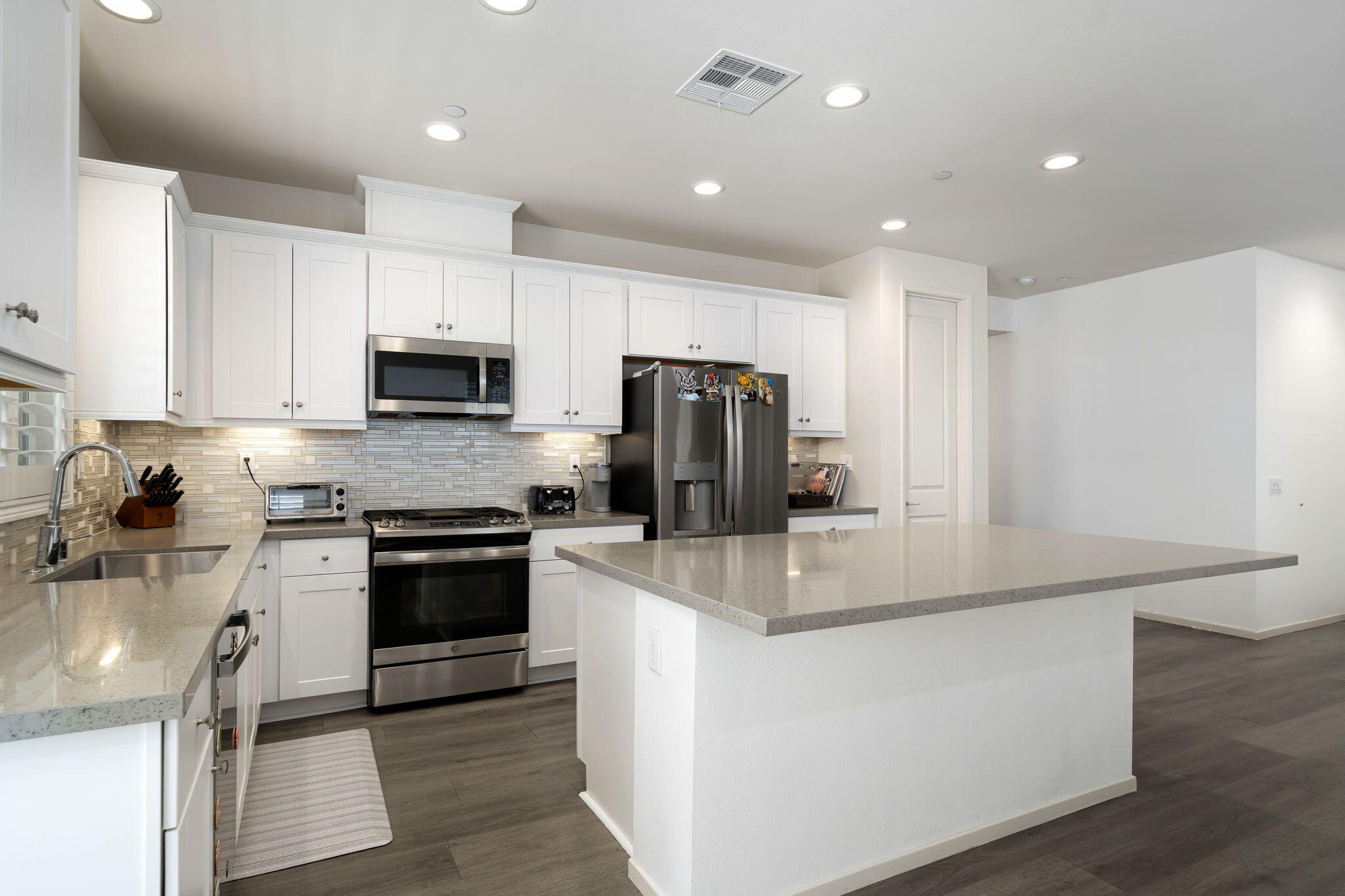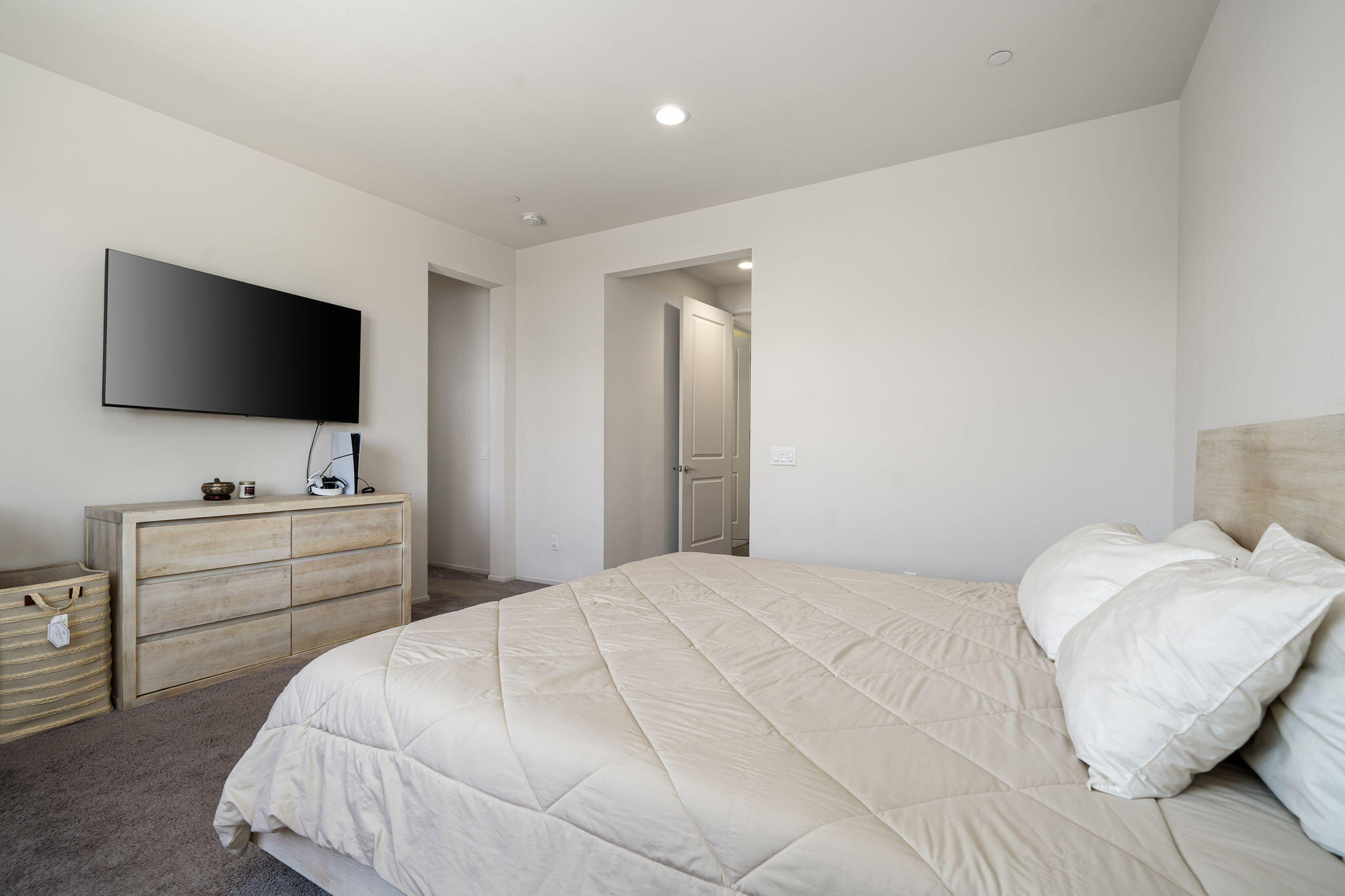 Like-new 4-bedroom, 2-bathroom home, constructed in 2021, located in the desirable gated community of Agua Dulce, is ready to welcome its new owners! Boasting impressive curb appeal, this residence features owned solar panels by Renova, captivating mountain views, and a spacious 3-car garage. Inside, you'll find a generous open floor plan enhanced by high ceilings, recessed LED lighting throughout, durable vinyl plank flooring, and pre-wired CATV 5 & 6 for high-speed internet.The stylish dining area provides direct patio access via sliding glass doors. The stunning kitchen is equipped with quartz countertops, tile backsplash, a large island with abundant storage, breakfast bar seating, GE stainless steel gas appliances, and a convenient pantry. Retreat to the spacious primary suite, which includes a private door to the backyard and an elegant ensuite bathroom featuring a large tiled walk-in shower, dual-sink vanity, and a generous walk-in closet.Additional amenities include dual vanities in all bathrooms, a well-appointed laundry room with ample cabinetry, and pre-wiring for an alarm system. The backyard is perfect for relaxation and entertaining, offering a built-in covered patio and a spacious, gated side yard ideal for a dog run. The home features low-maintenance desert scape landscaping in the front yard. Community residents enjoy access to a large pool and spa, all with remarkably low HOA fees. Conveniently located near schools, shopping, dining, and more, this home awaits your visit. Schedule your tour today!Interested in this Listing?