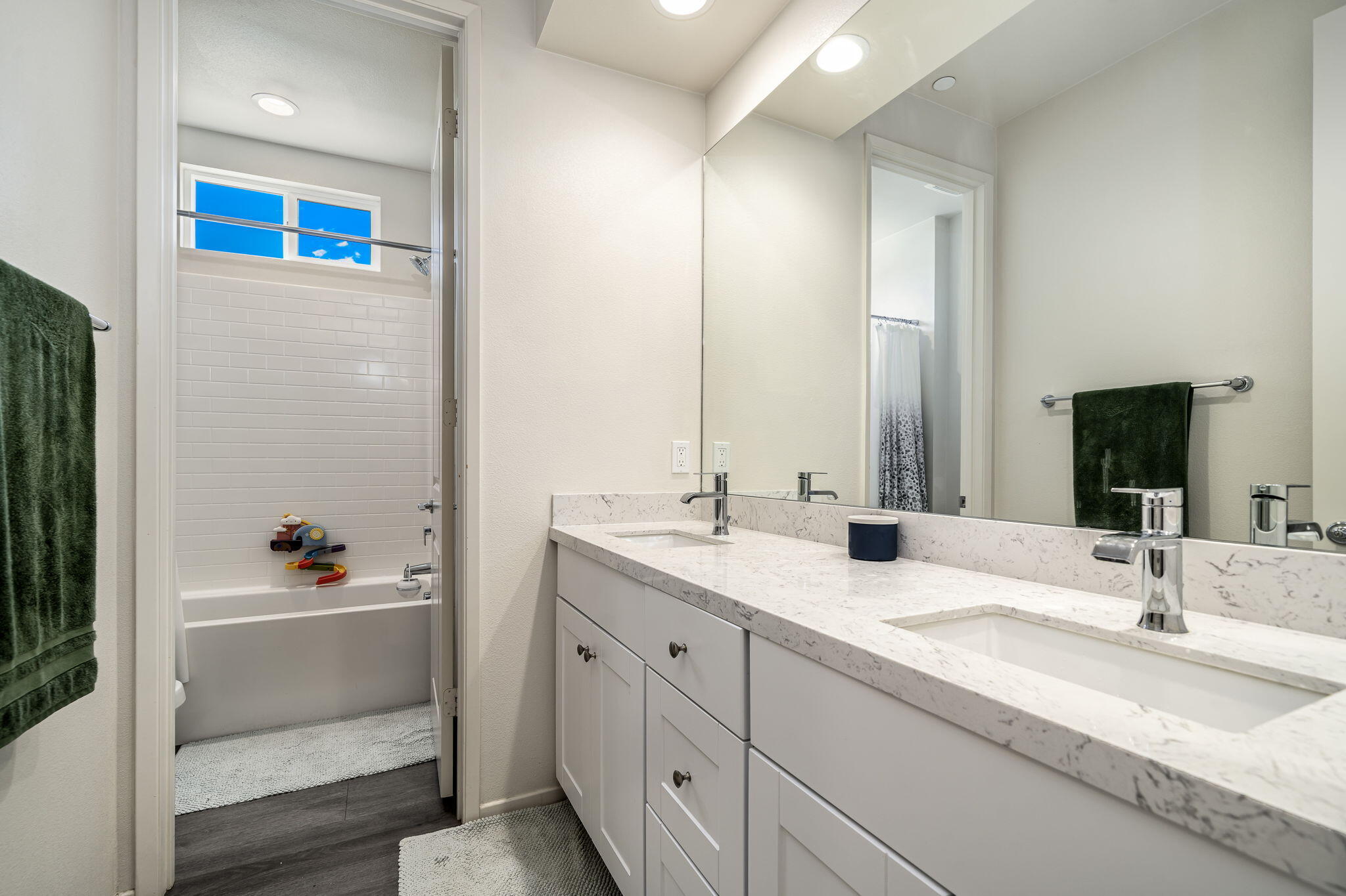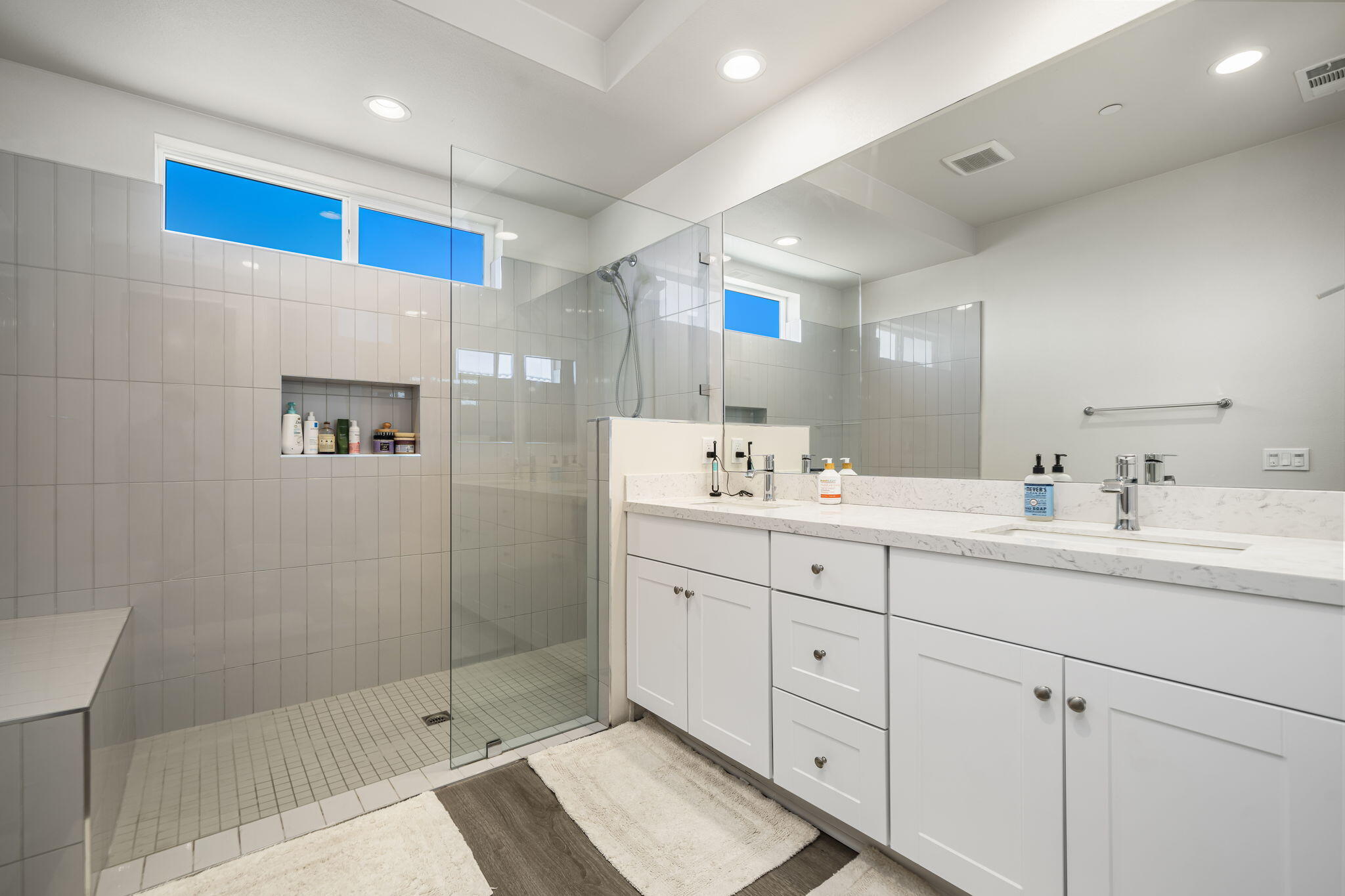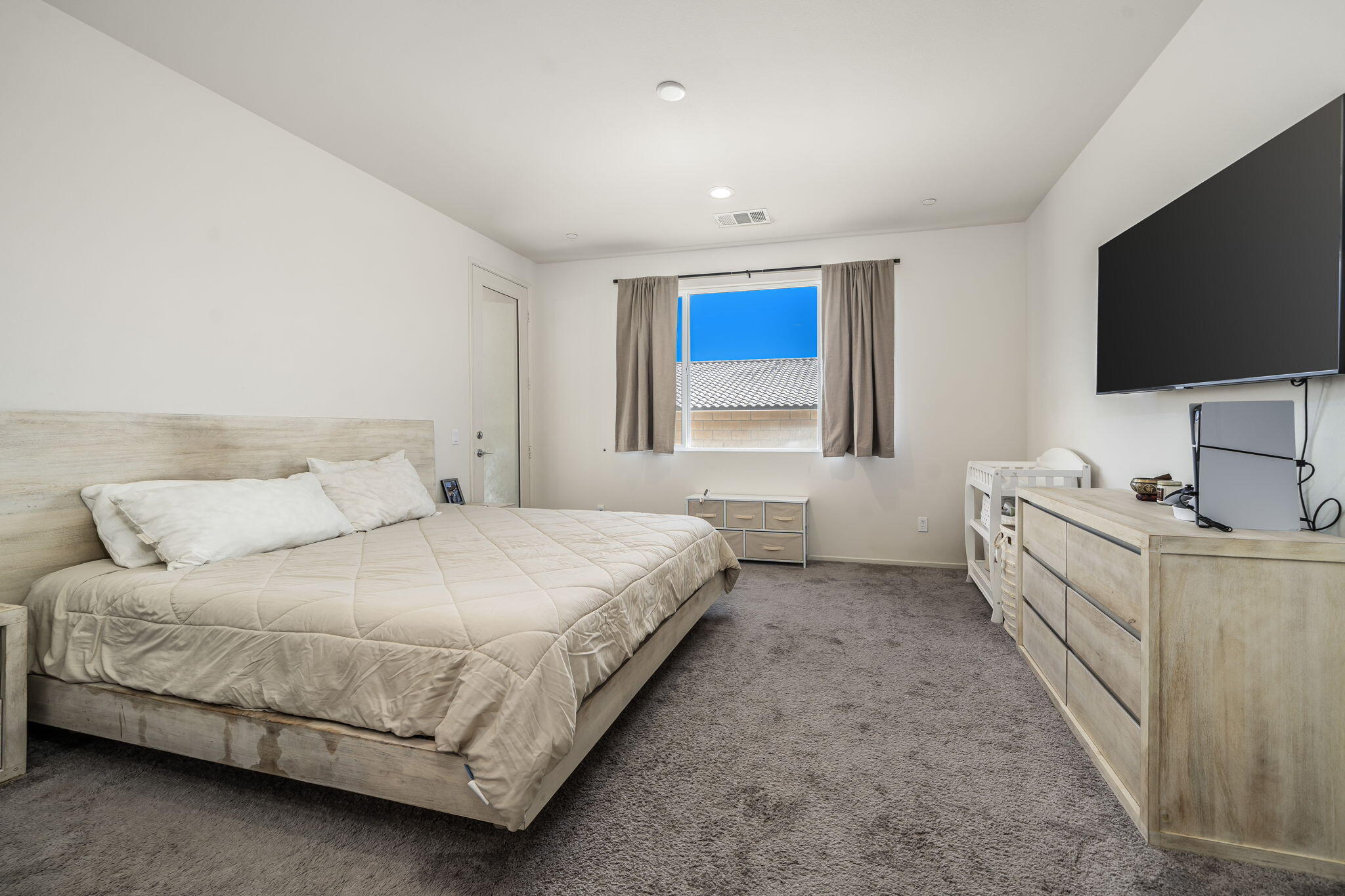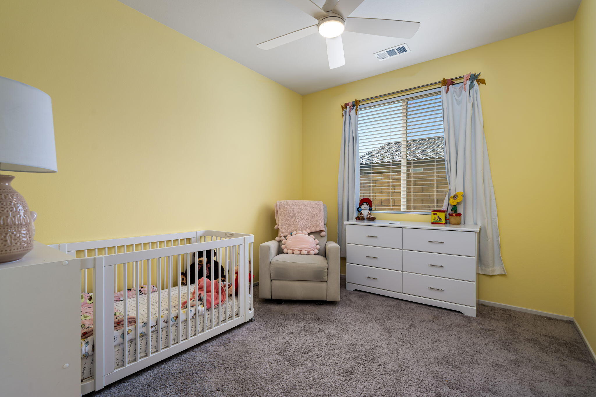 Like-new 4-bedroom, 2-bathroom home, constructed in 2021, located in the desirable gated community of Agua Dulce, is ready to welcome its new owners! Boasting impressive curb appeal, this residence features owned solar panels by Renova, captivating mountain views, and a spacious 3-car garage. Inside, you'll find a generous open floor plan enhanced by high ceilings, recessed LED lighting throughout, durable vinyl plank flooring, and pre-wired CATV 5 & 6 for high-speed internet.The stylish dining area provides direct patio access via sliding glass doors. The stunning kitchen is equipped with quartz countertops, tile backsplash, a large island with abundant storage, breakfast bar seating, GE stainless steel gas appliances, and a convenient pantry. Retreat to the spacious primary suite, which includes a private door to the backyard and an elegant ensuite bathroom featuring a large tiled walk-in shower, dual-sink vanity, and a generous walk-in closet.Additional amenities include dual vanities in all bathrooms, a well-appointed laundry room with ample cabinetry, and pre-wiring for an alarm system. The backyard is perfect for relaxation and entertaining, offering a built-in covered patio and a spacious, gated side yard ideal for a dog run. The home features low-maintenance desert scape landscaping in the front yard. Community residents enjoy access to a large pool and spa, all with remarkably low HOA fees. Conveniently located near schools, shopping, dining, and more, this home awaits your visit. Schedule your tour today!Interested in this Listing?