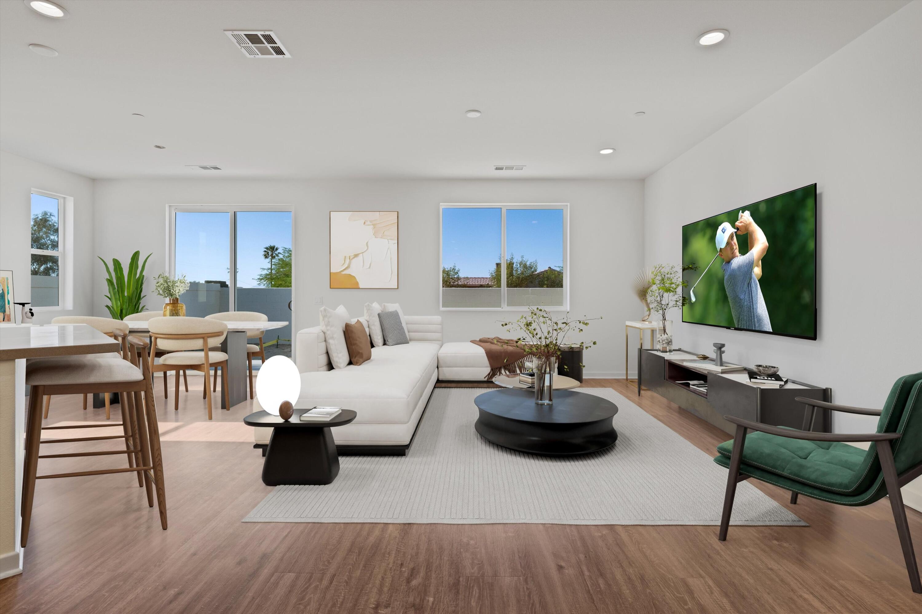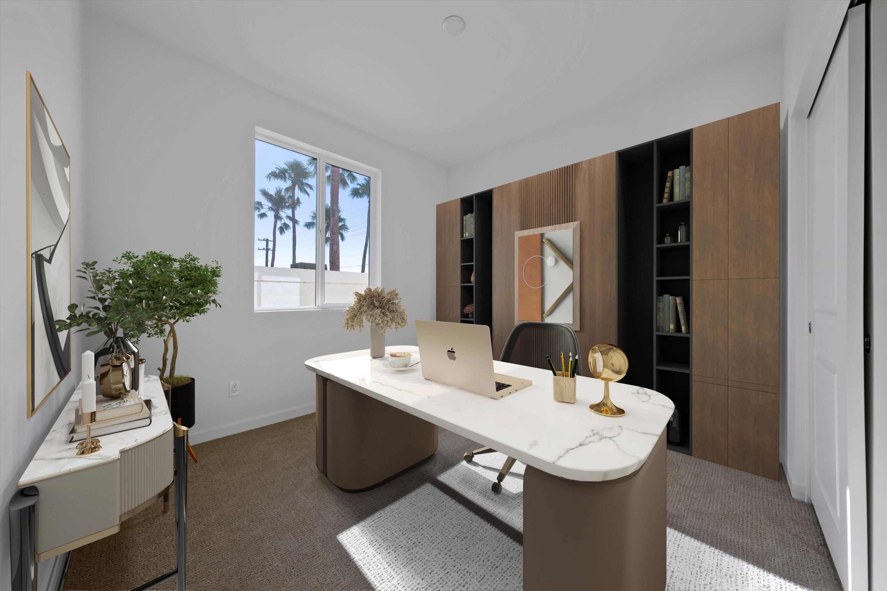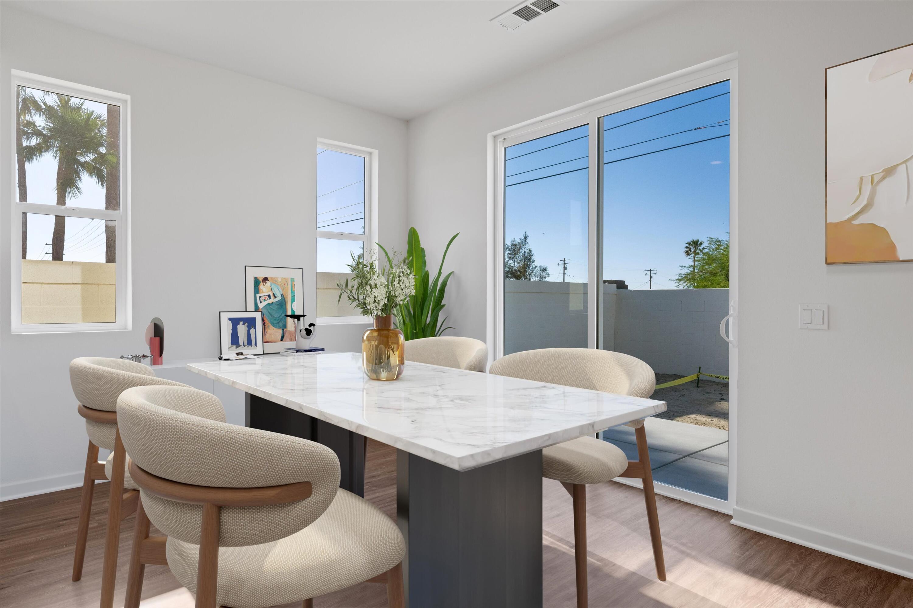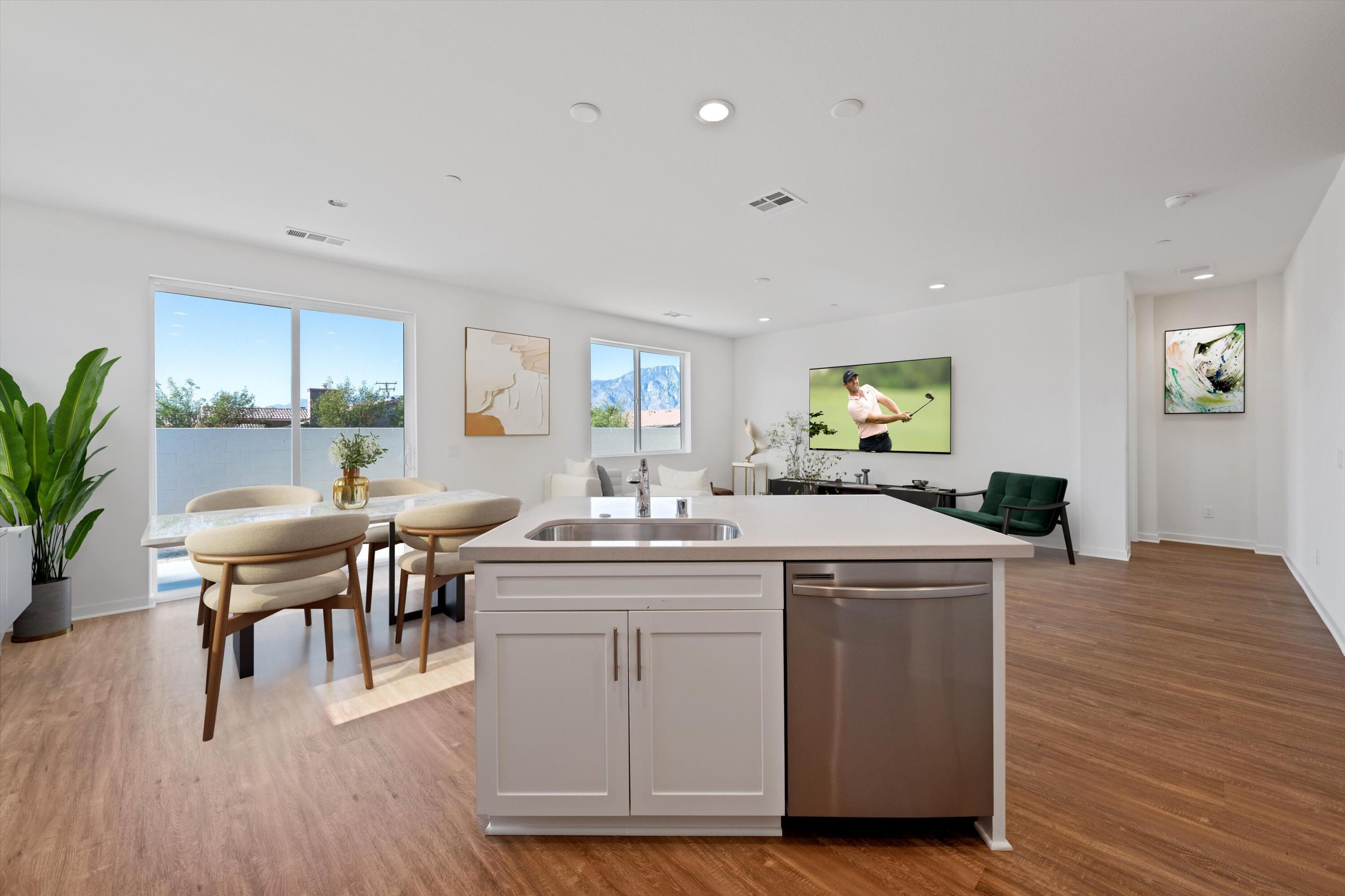 Wow!! Hurry this home is ready to move in and has just been reduced $25K!! You do not want to miss this opportunity to buy such a great Brand New Home for under $400k!! 3 bedroom 2 bath and fully Landscaped in a Gated Community Located just minutes from the I-10 Freeway, Palm Springs International Airport, and vibrant Downtown Palm Springs, this stunning new home offers the perfect blend of convenience and luxury. Key Features: Buyer-Owned Solar System: Included in the purchase price, this eco-friendly feature not only reduces your carbon footprint but also saves on energy costs. Spacious Living Areas: Thoughtfully designed to maximize comfort and functionality, perfect for entertaining or relaxing. Modern Kitchen: Equipped with upgraded cabinets and beautiful White Quartz countertops, ideal for culinary enthusiasts. Flooring: Durable vinyl plank flooring throughout the main areas, complemented by upgraded carpet in the bedrooms for added warmth and comfort. Smart Home Features: Pre-wired for a home alarm system, ceiling fans in the living room and all bedrooms, flatscreen TV outlets in the living room and primary bedroom, and an electric vehicle charging station for eco-conscious owners. Enjoy the best of Palm Springs living with its vibrant culture, stunning natural beauty, and endless opportunities for outdoor activities. This home offers a unique combination of style, convenience, and a great neighborhood, making it an exceptional choice for those seeking a luxurious desert lifestyle. Low hoa fees of $143/mo.Interested in this Listing?