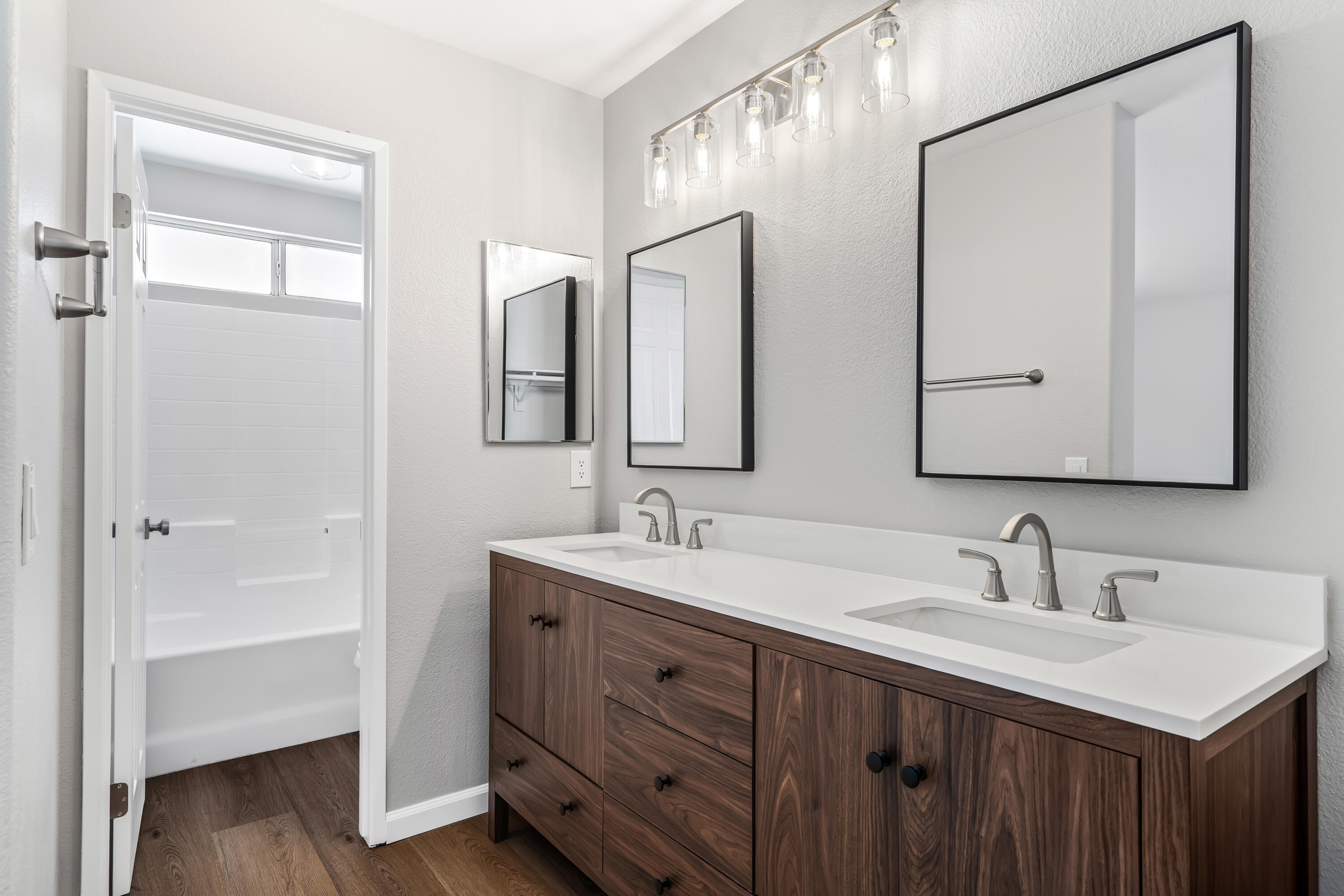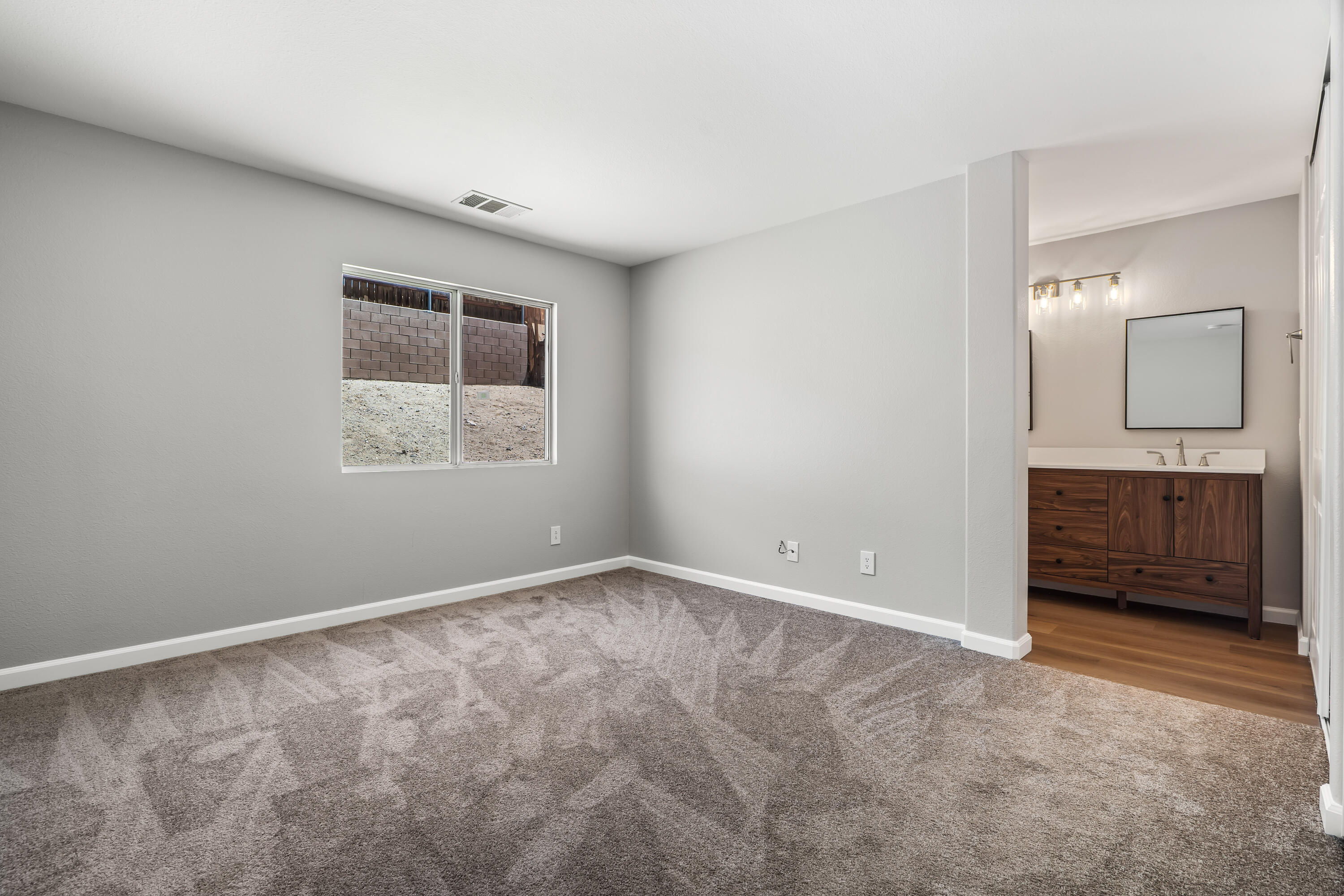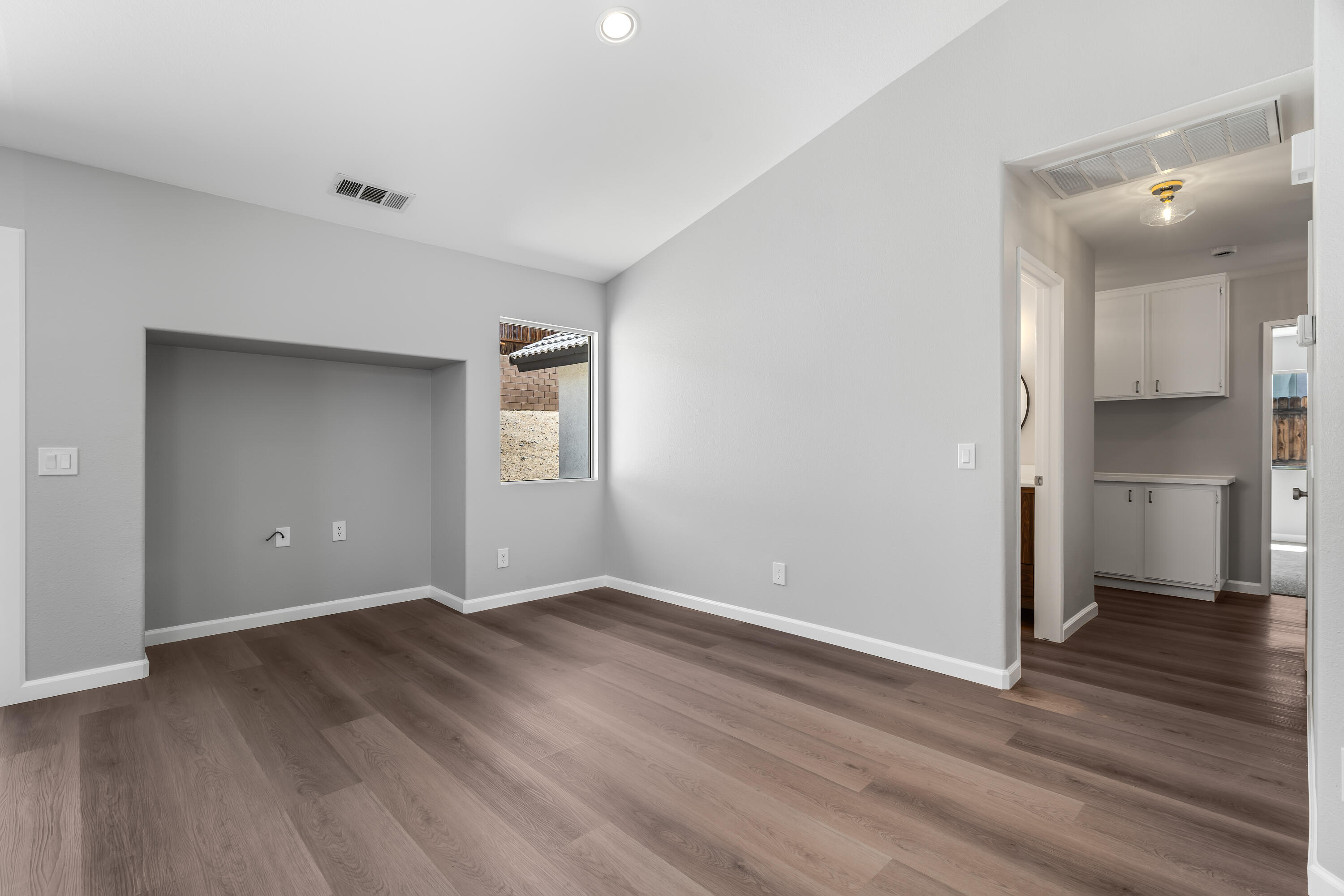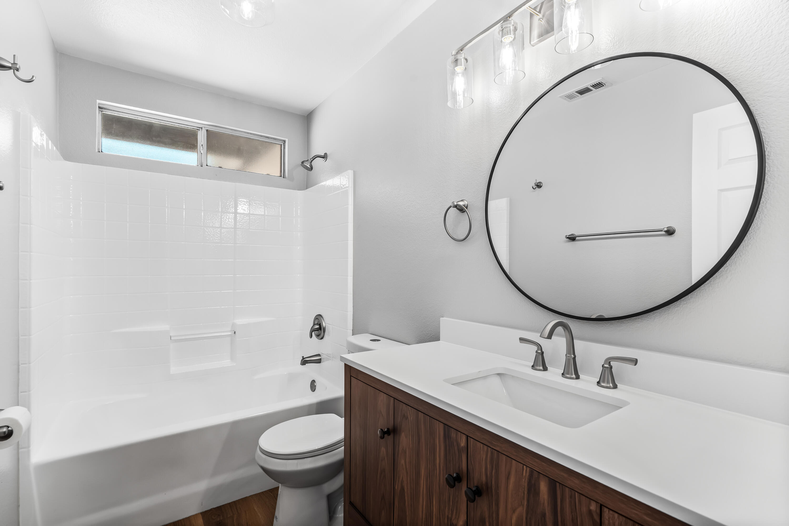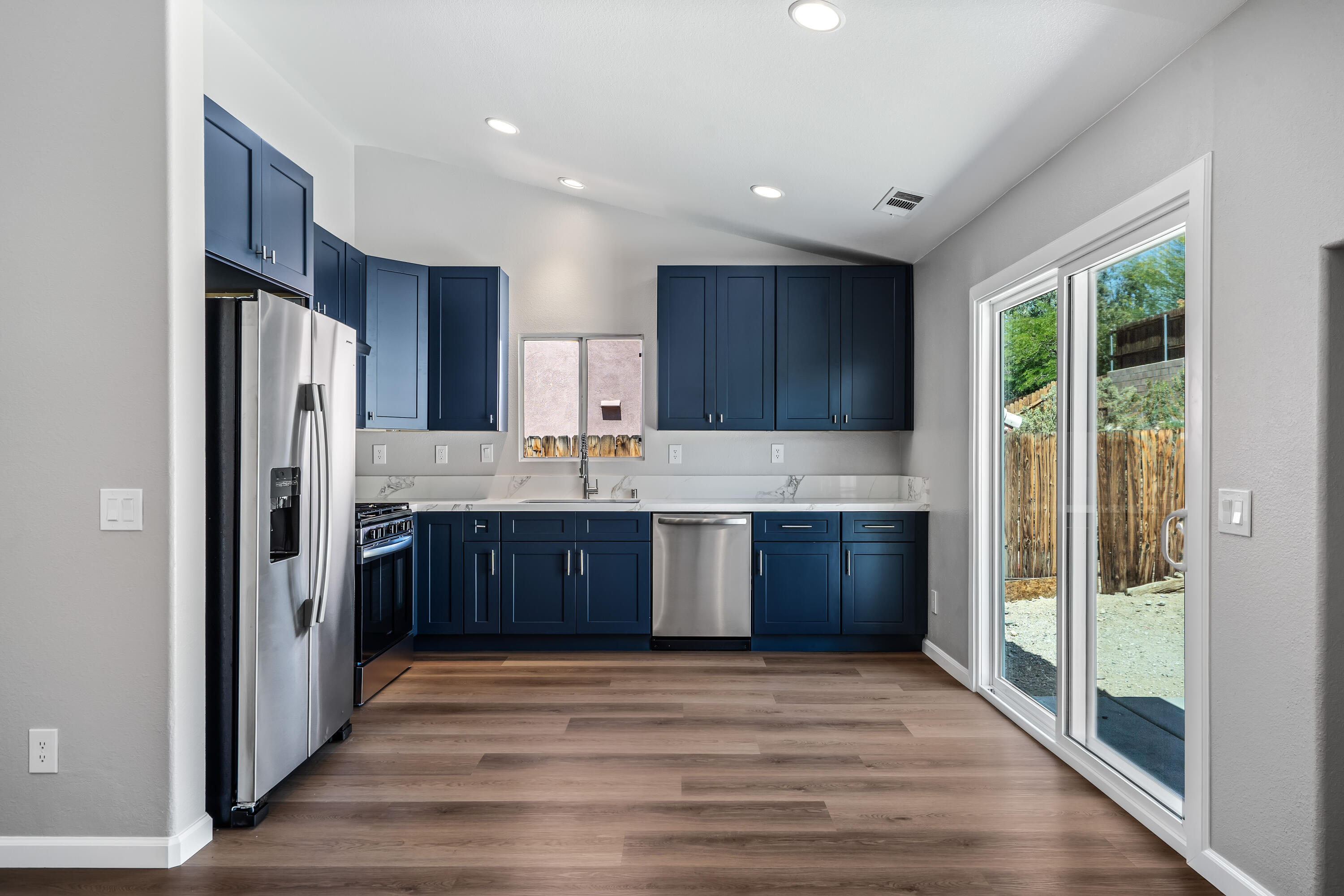 Located in the Miracle Mile neighborhood on a quiet street with San Jacinto mountain views. Remodeled with contemporary design, vaulted ceilings in the family room and kitchen, open and light space. NEW Kitchen Cabinets, Stainless Steel Appliances, Bathroom Vanities, Toilets, Light Fixtures, Faucets, Laminate Flooring, Carpet in the bedrooms, Decora switches, Two-tone paint, Six-panel interior Doors with Brushed Nickel Kwikset hardware. The kitchen features a Slide-in gas stove, French door refrigerator with water and an ice maker, all new Blue Shaker Kitchen Cabinets, Quartz counters, Stove hood, large sink and modern fixtures. The primary bedroom features 3 large closets. The primary bath features a modern dual sink vanity, Delta faucets, brushed nickel fixtures, a separate shower and tub combo and toilet room. The guest bath features a tub and tile shower combo, modern vanity with a Delta faucet and nickel fixtures. This home has plenty of space for a large patio area just off the kitchen. There is a large 2 car garage with a new door and a newer water heater.Interested in this Listing?