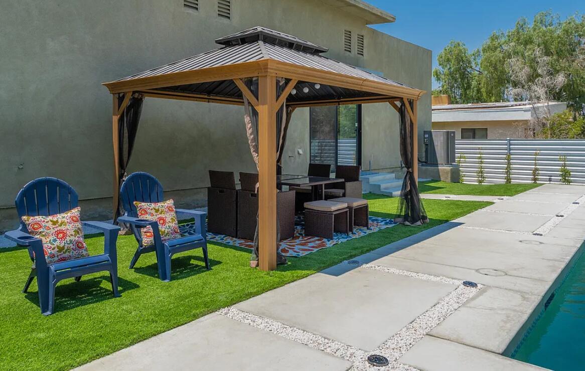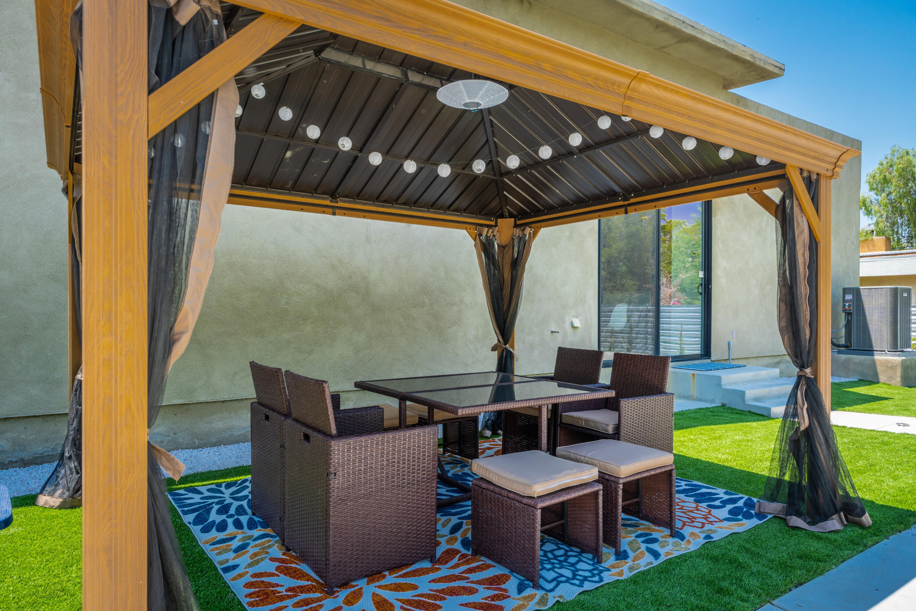 Welcome to this stunning updated mid-century pool home in the highly sought after B-Bar H Ranch in rapidly developing Desert Hot Springs. Original 2005 Mark Bodon home built by Modern Living Spaces. High ceilings, plenty of space, and natural light throughout. 3 bedrooms each with their own en suite bathroom and shower. This successful vacation home rental features an impressive outdoor area with a resort-like pool and hot tub. On those beautiful desert mornings, have breakfast and coffee by the pool in the professionally-installed Gazebo and take in the serene views of the mountains. In addition, step into the private Courtyard for dark skygazing or the desert-themed Game Room for laughter and relaxation. This home is the perfect blend of modern luxury and timeless charm. Furnishings may be purchased through separate bill of sale.Interested in this Listing?