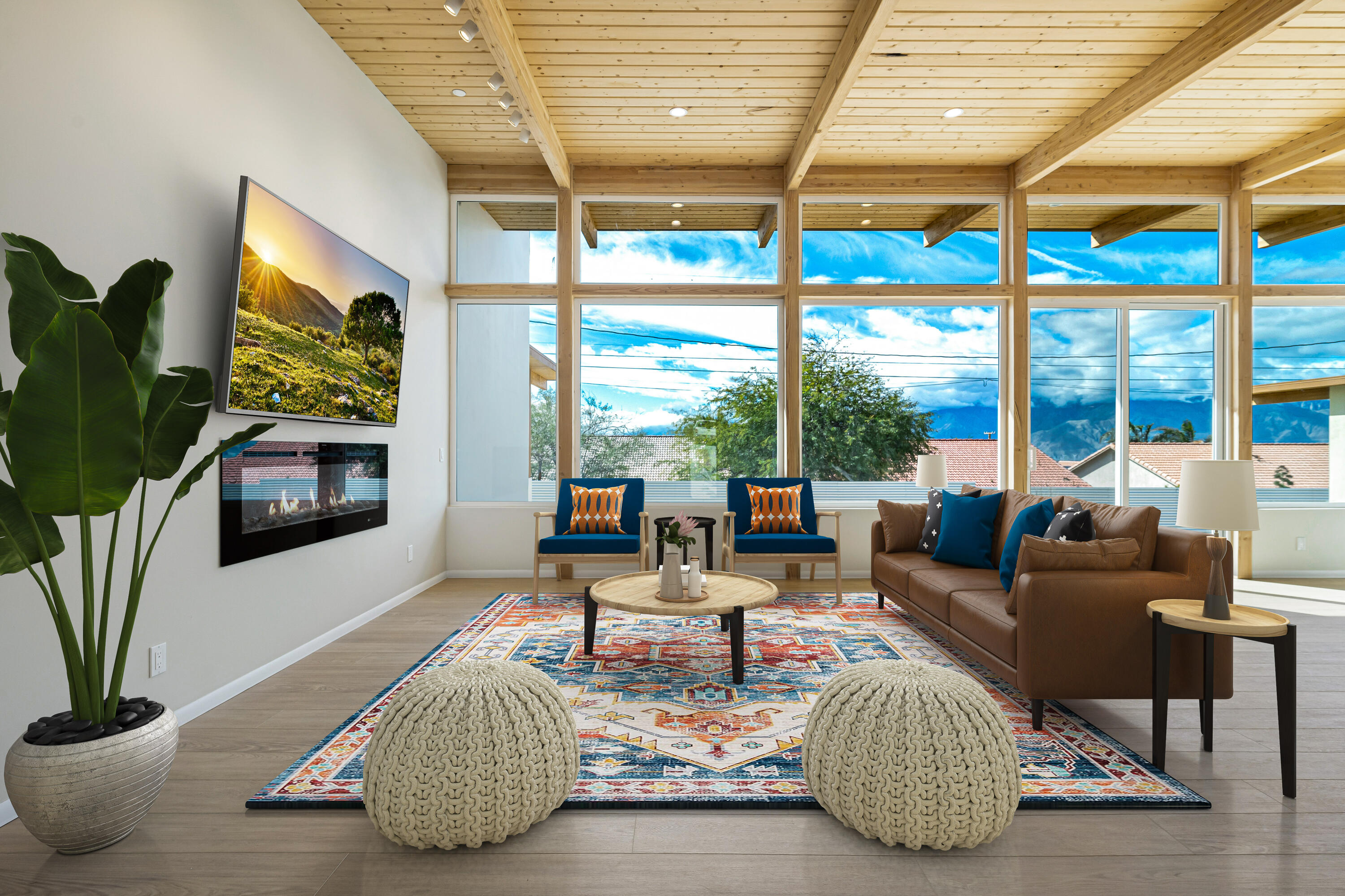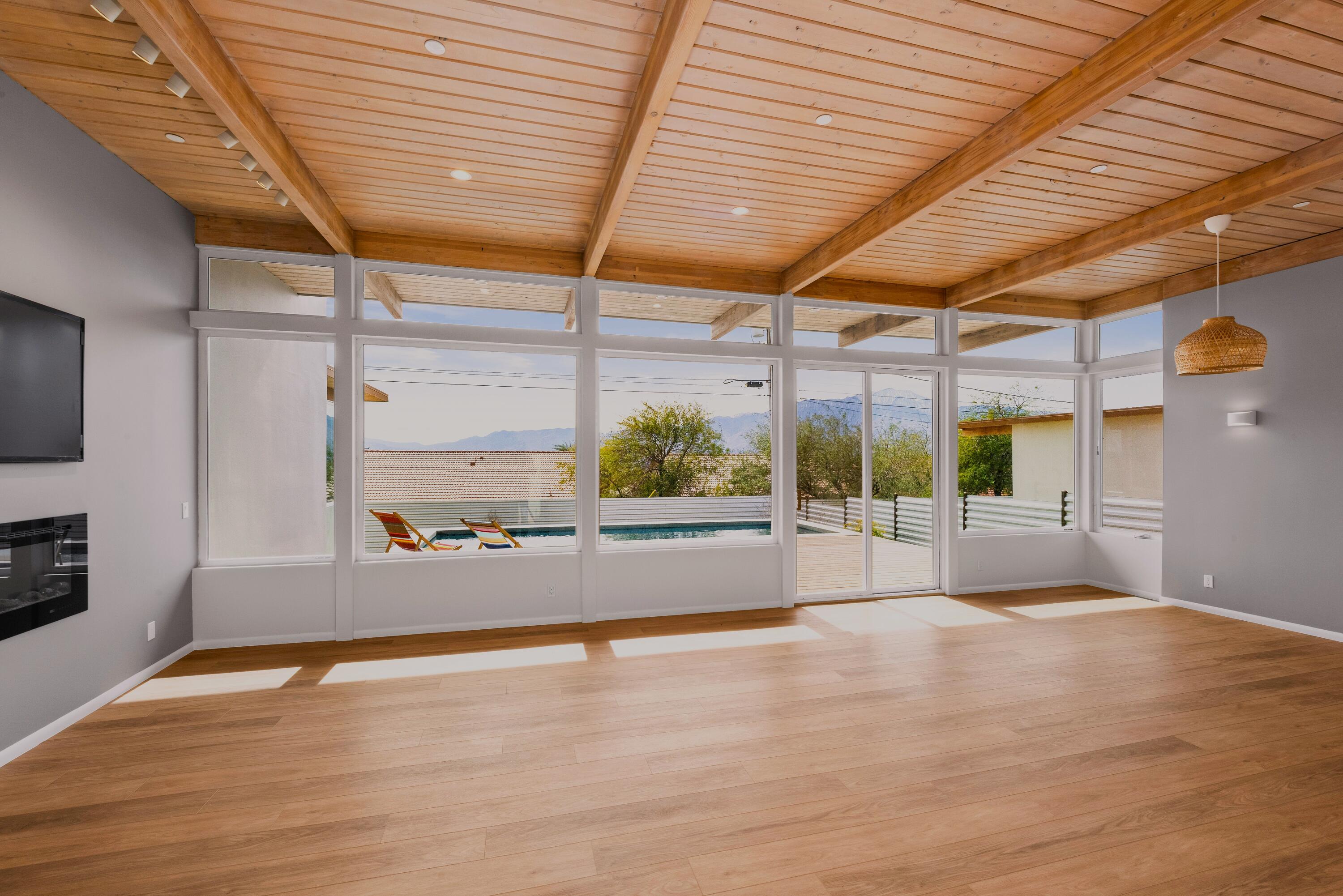 As Featured on HGTV's House Hunters!Introducing a rare and remarkable new new new home in the hills of Desert Hot Springs -- a true Mid-Century Modern gem offering iconic Palm Springs style at an exceptional value. No HOA and no Mello-Roos! Located in the heart of the sought-after Spa Zone and close to popular hiking trails. Step into a light-filled glass-walled living and dining room that opens seamlessly on to a sun-soaked deck and sparkling pool, framed by stunning views of Mt. San Jacinto. A private, walled and landscaped front courtyard creates additional perfect outdoor area, perfect for relaxing or entertaining.Soaring post-and-beam wood ceilings enhance the modern yet comfortable aesthetic. The gourmet kitchen has abundant well-designed storage and is equipped with stainless steel appliances, quartz countertops, and views to the pool-- an entertainer's dream.This fully fenced property features 3 spacious bedrooms with extensive closet built-ins; 2 airy bathrooms; and a dedicated laundry room, Inspired by the iconic Palm Springs 'Alexander' homes, this residence offers 50% more space at a fraction of the cost.This new home is loaded with premium upgrades: Fully paid solar, saving thousands a year All-electric systems including on-demand water heater and zoned electric heat pump HVAC EV(Tesla charging)-ready wiringInterested in this Listing?