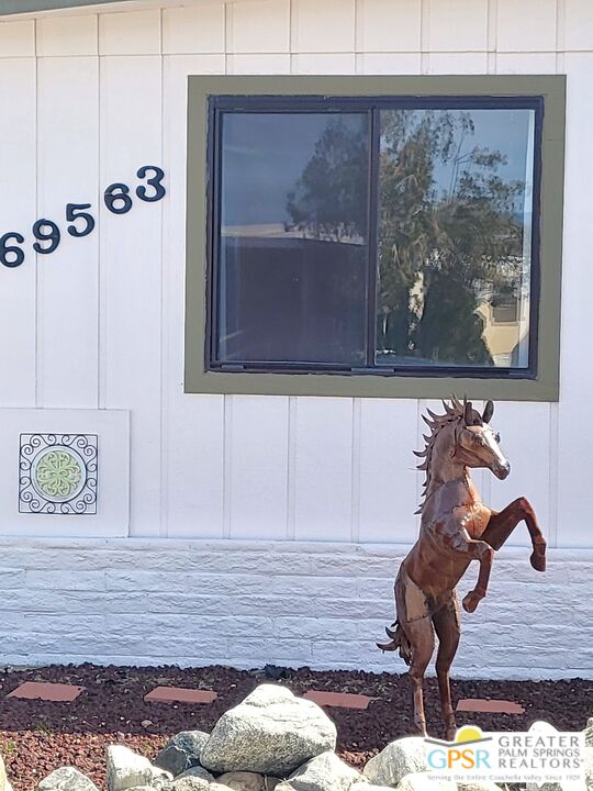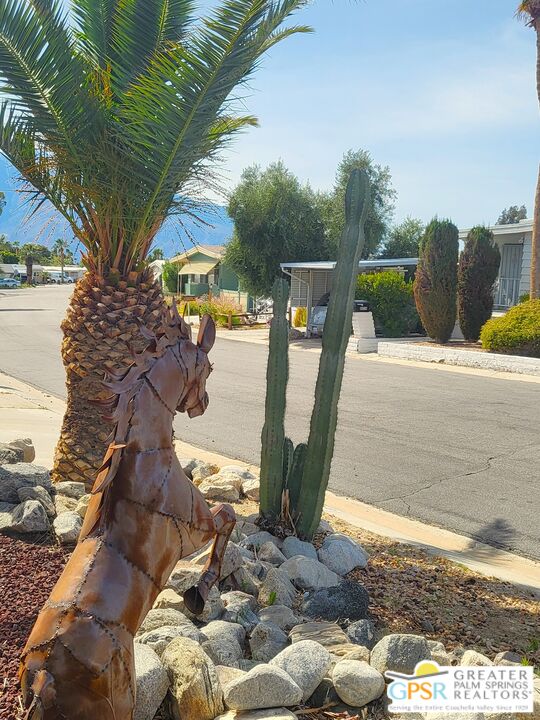 Settled within the very lively golf community of Desert Crest Country Club in a beautiful rural setting, this one of a kind Two Bedroom / Two Bath, COMPLETELY REMODELED manufactured home that was built in 1973 offers a unique blend of comfort and convenience tailored for those seeking an active and vibrant 55+ lifestyle. The rare COVERED RV PARKING especially contributes to your Active style of living! Located in the heart of Desert Crest Country Club yet just around the corner from the huge Clubhouse, mineral spring water pool & spas, and golf facilities that are free to the Owners, this home enjoys the perks of a lively lifestyle, surrounded by the scenic beauty of the desert landscape in the Western Coachella Valley. The Desert Crest Country Club community boasts a 9-hole golf course, inviting residents to enjoy leisurely rounds amid the picturesque setting of pond and mature trees that boast views of Mounts San Jacinto and San Gorgonio and the iconic windmills of the Banning Pass. This oasis extends beyond the golf course, offering a multitude of amenities enhancing your daily life. Residents here enjoy a multi-faceted Clubhouse featuring a healthy mineral water Pool and Spas, providing a serene escape and a hub for plenty of social connections. Indoor Shuffleboard and other activities are a welcome diversion here at the Clubhouse, with many interior facilities to keep you moving. The onsite cafe caters to culinary cravings, the dog groomers attend to furry companions, and the real estate office ensures all needs are met with ease. These conveniences foster not just a residence but a sense of belonging within a home and community bound by shared experiences and vibrant camaraderie. At the center of it all you step inside this well-maintained home, and you'll discover its thoughtfully designed interior that includes new laminate flooring. Two Bedrooms and two full Baths offer both comfort and functionality, catering to the needs of daily living within a spacious interior. The Master Bedroom stands as a serene haven, complete with a light and bright walk-in Closet. The interior is a haven of natural light, thanks to strategically placed large double pane windows, creating a welcoming and airy atmosphere. Of special note are the NEW appliances, NEW plumbing and electrical, and the addition of drywall walls. You even have a large Shed tucked away to the rear of the property and ample parking on one side with covered RV PARKING on the other side. The covered patio makes an inviting space designed for relaxation and entertainment. The newly poured rear concrete patio is a great place to enjoy the sun all day too. It's the ideal spot to revel in the beauty of the desert evenings, fostering moments of tranquility and social gatherings. The low-maintenance landscaping, fenced for privacy, ensures that upkeep remains effortless, allowing residents to focus on the joys of community living. This home represents a harmonious blend of comfort, style, and functionality, creating a delightfully private haven within the heart of Desert Crest Country Club. Whether indulging in a round of golf, luxuriating in the mineral water pool, or simply savoring the serenity of the surroundings from your very private rear deck, this property offers a unique and fulfilling 55+ living experience, where every moment resonates with the essence of a life well-lived.Interested in this Listing?