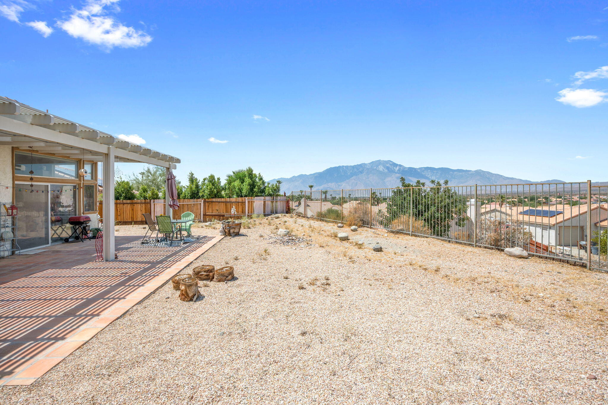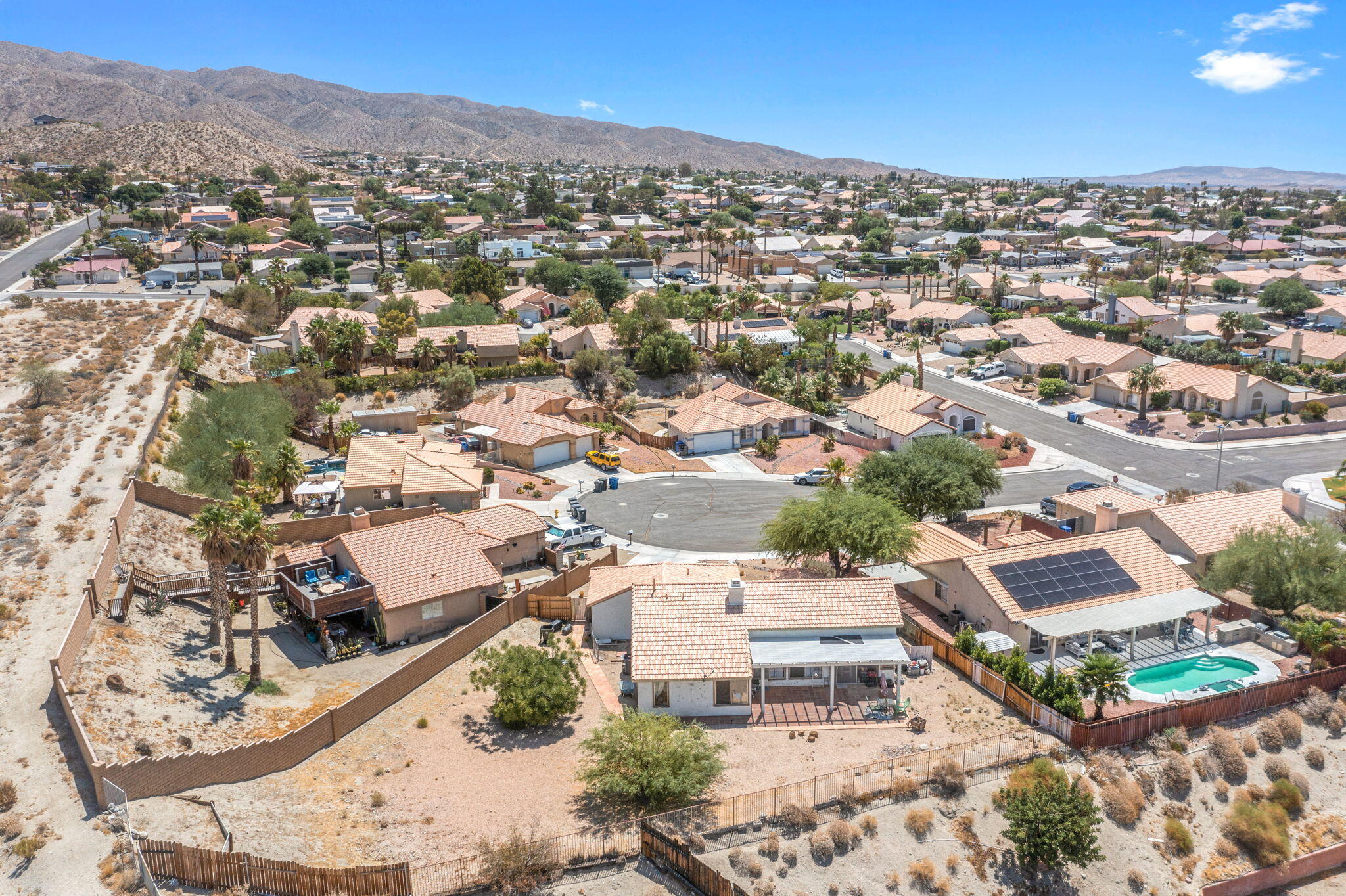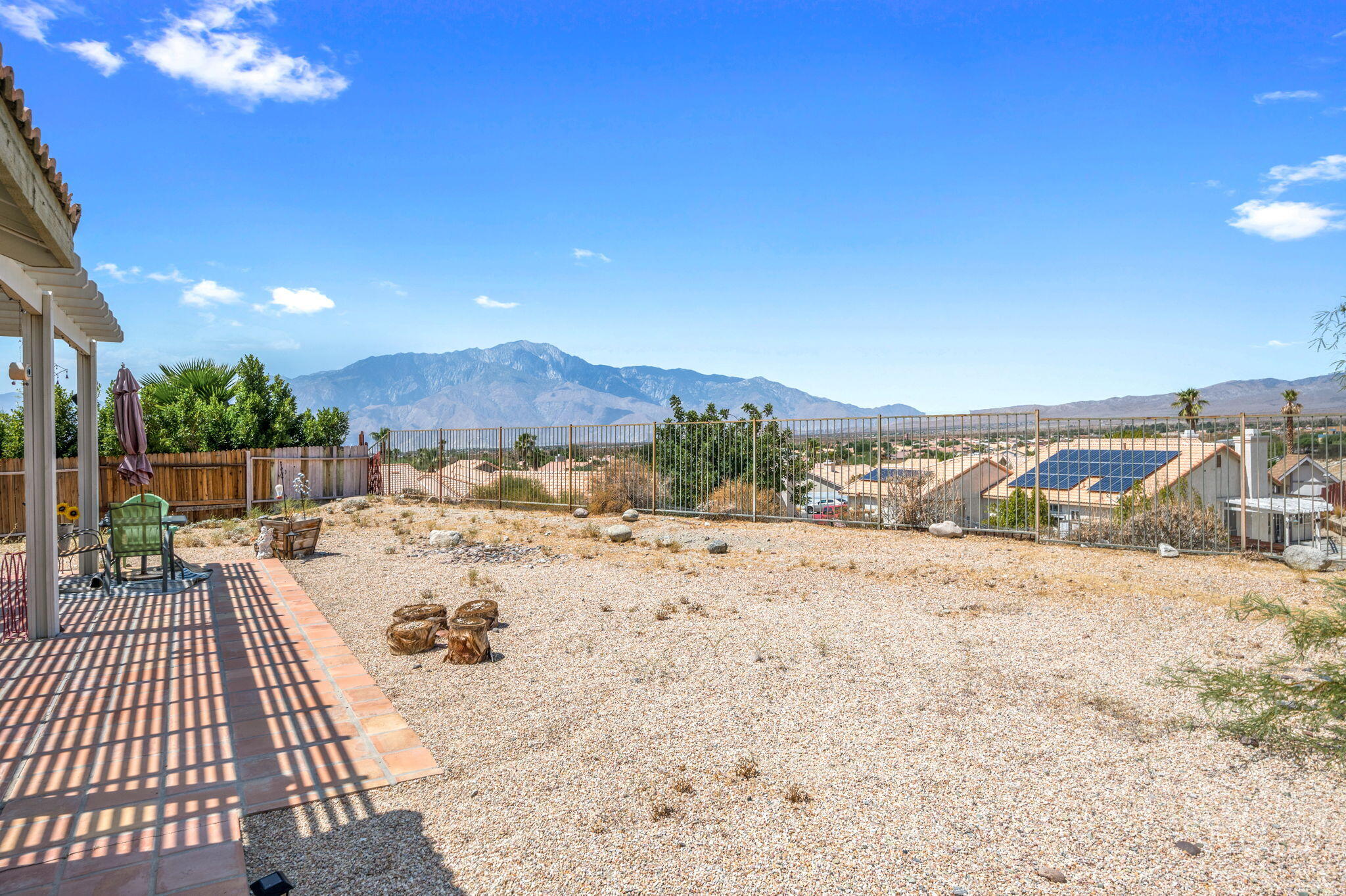 Panoramic Views!Welcome to the hilltop of Desert Hot Springs where this 4-bedroom, 2-bathroom home is offering breathtaking, unobstructed desert and mountain views. Situated on a quiet cul-de-sac, this 1,739 sq. ft. home sits on a spacious 12,000+ sq. ft. lot, providing ample room to enjoy the outdoors or create your own private retreat.Step inside to discover an open great room concept, featuring soaring vaulted ceilings, abundant natural light, and tile flooring throughout. The cozy fireplace anchors the living area, creating a warm and inviting space perfect for relaxing or entertaining. A formal dining area adds a touch of elegance for gatherings and special occasions.Don't miss the opportunity to own a slice of serenity with exceptional views and generous space--schedule your private showing today!Interested in this Listing?