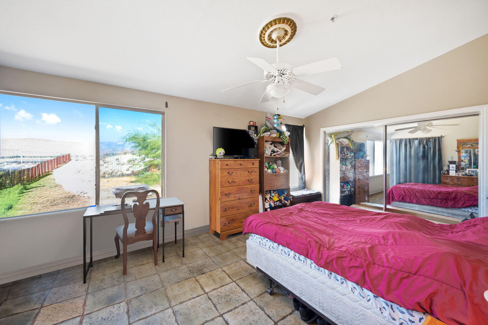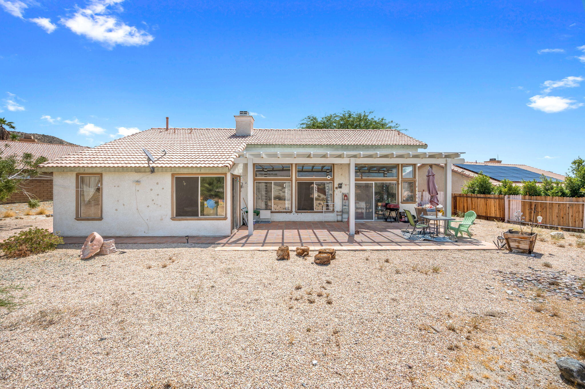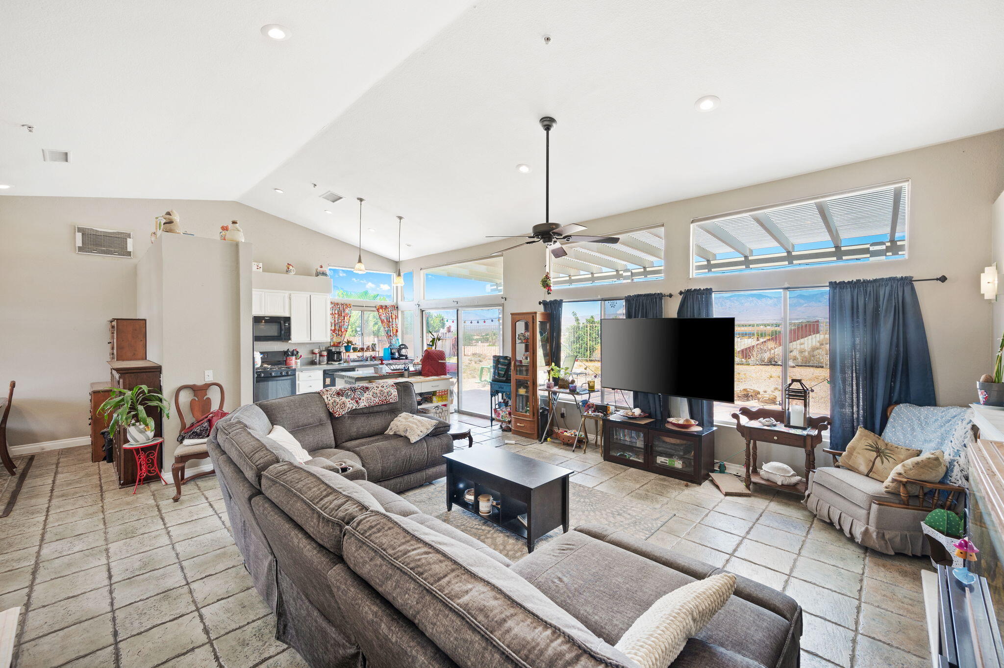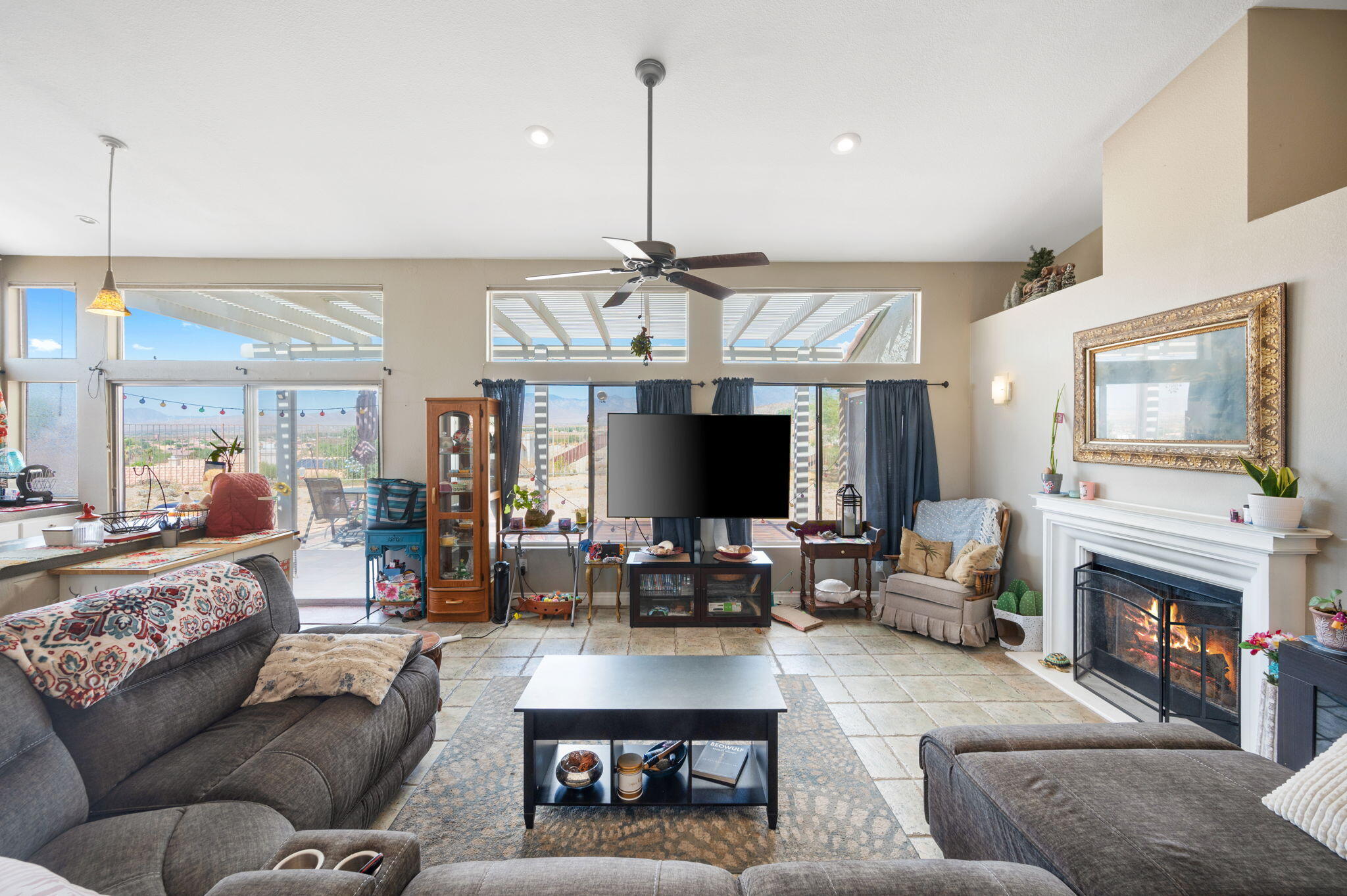 Panoramic Views!Welcome to the hilltop of Desert Hot Springs where this 4-bedroom, 2-bathroom home is offering breathtaking, unobstructed desert and mountain views. Situated on a quiet cul-de-sac, this 1,739 sq. ft. home sits on a spacious 12,000+ sq. ft. lot, providing ample room to enjoy the outdoors or create your own private retreat.Step inside to discover an open great room concept, featuring soaring vaulted ceilings, abundant natural light, and tile flooring throughout. The cozy fireplace anchors the living area, creating a warm and inviting space perfect for relaxing or entertaining. A formal dining area adds a touch of elegance for gatherings and special occasions.Don't miss the opportunity to own a slice of serenity with exceptional views and generous space--schedule your private showing today!Interested in this Listing?
