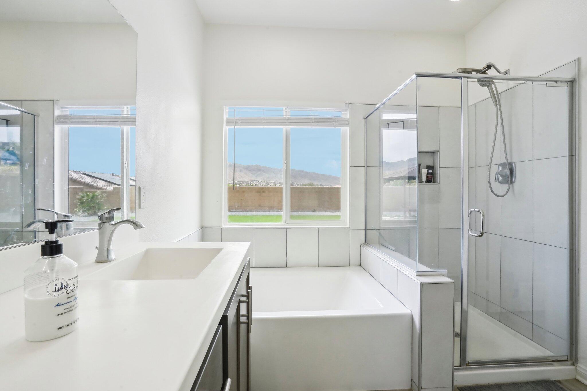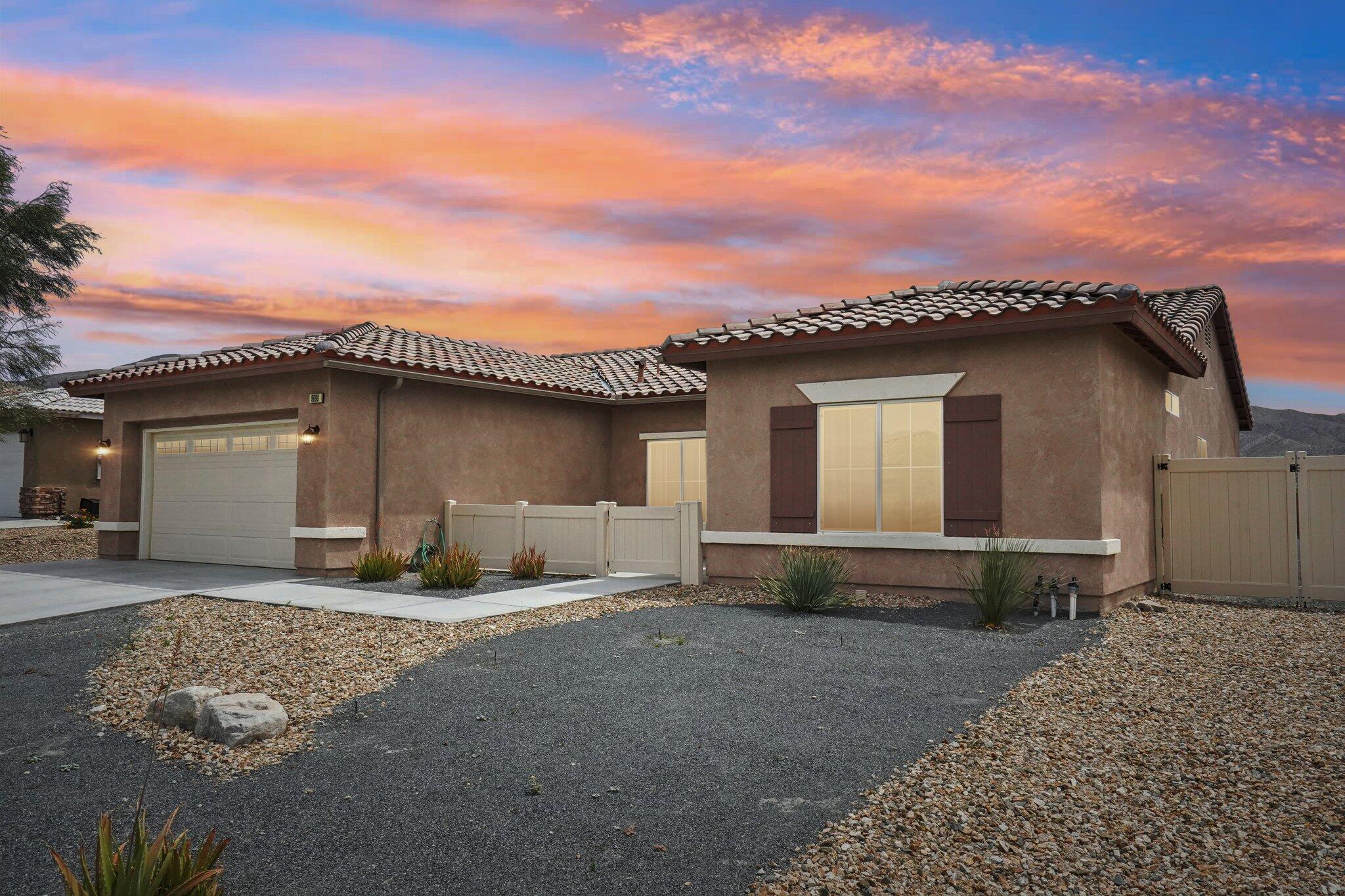 Modern Luxury with 360 Mountain Views!Welcome to your desert sanctuary--a beautifully designed 4-bedroom, 3-bath home offering over 2,100 sq. ft. of open-concept living space, set on fee simple land with NO HOA dues. Built in 2021 and freshly painted throughout, this move-in ready home is the perfect blend of style, function, and location.Step into a light-filled great room where high ceilings and expansive windows frame breathtaking 360-degree mountain views--a true entertainer's dream. The seamless flow between the living, dining, and kitchen areas creates the ideal space for gathering and relaxing.The gourmet kitchen features granite countertops, stainless steel appliances, a generous island, and ample cabinetry--offering both beauty and everyday functionality. Just off the kitchen, you'll find a convenient laundry room, along with a second set of washer/dryer hookups in the garage--perfect for large households or busy families with extra laundry needs. Direct access to the two-car attached garage adds further convenience.Retreat to the spacious primary suite with direct access to the backyard and stunning views. The spa-like ensuite bath offers a soaking tub, dual vanities, separate walk-in shower, and a large walk-in closet.Three additional bedrooms and two stylish guest bathrooms ensure comfort and space for family and visitors alike.Step outside to a huge backyard, offering plenty of room for a custom pool, outdoor kitchen, or your own private oasis under the desert sky. The possibilities are endless!Located near top-rated schools, shopping, and dining, this home offers both privacy and convenience in one of the most scenic settings in the area.🏡 Why wait to build? This nearly new home is ready now--make it yours today! Call to schedule your private showing and experience the elevated desert lifestyle this property has to offer.Interested in this Listing?